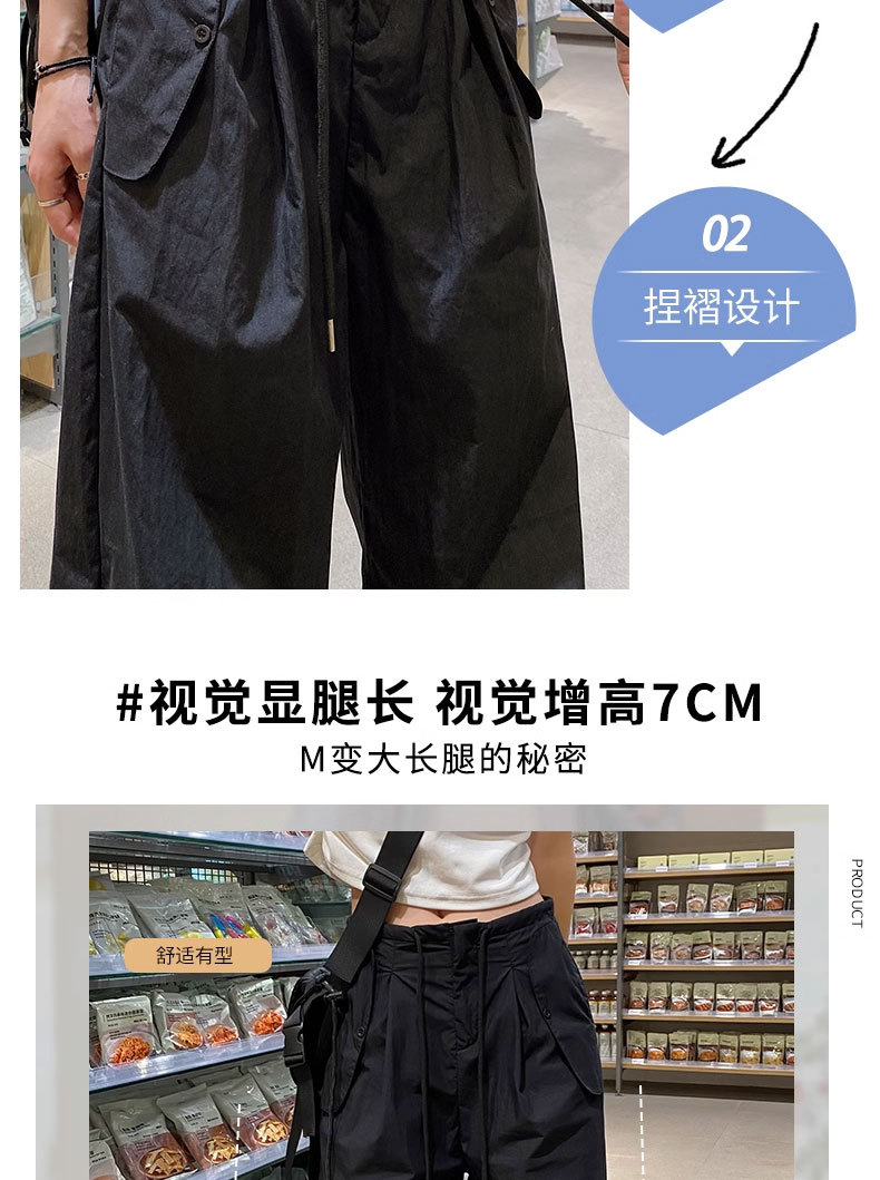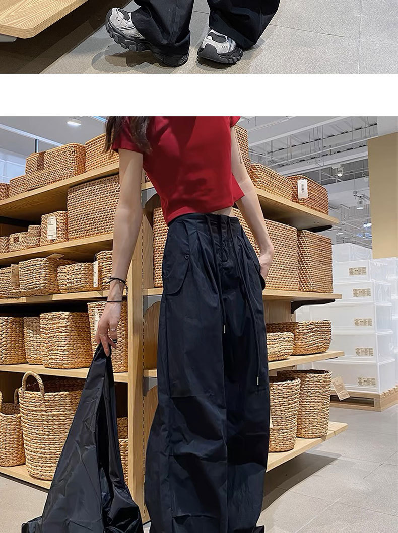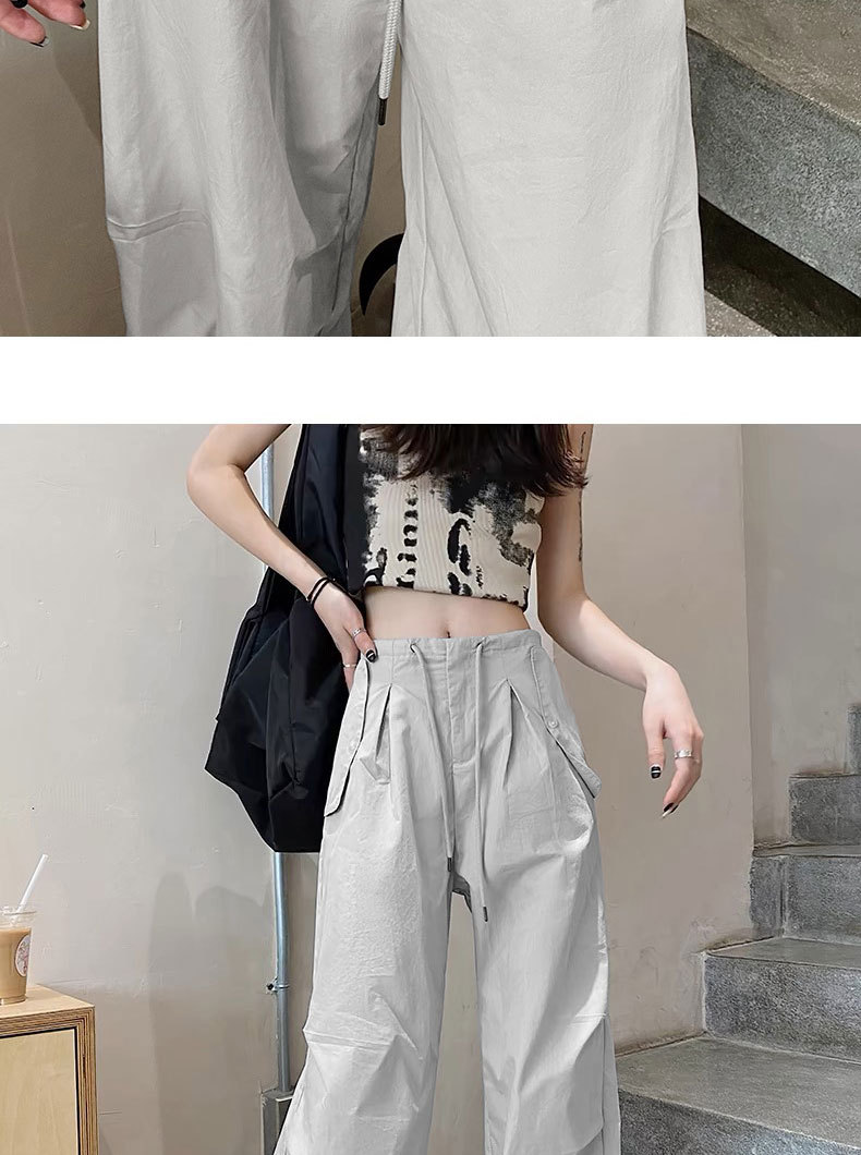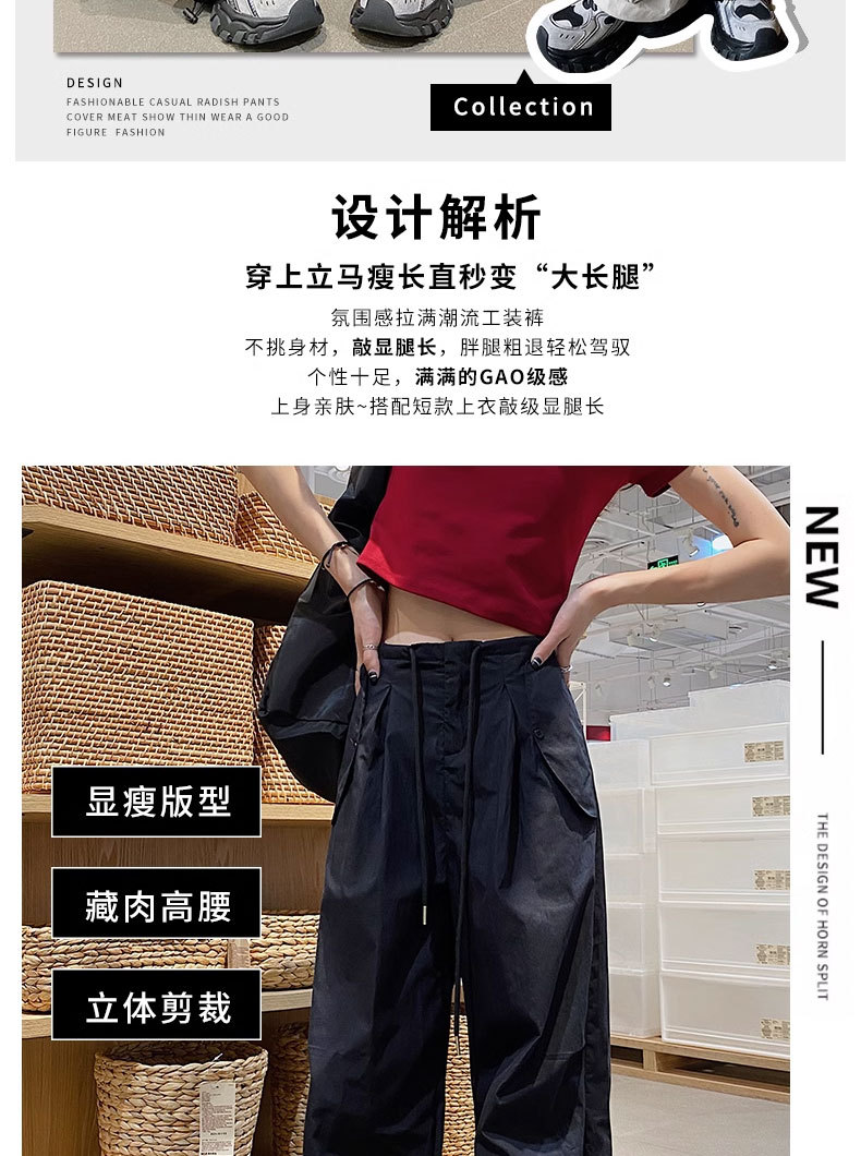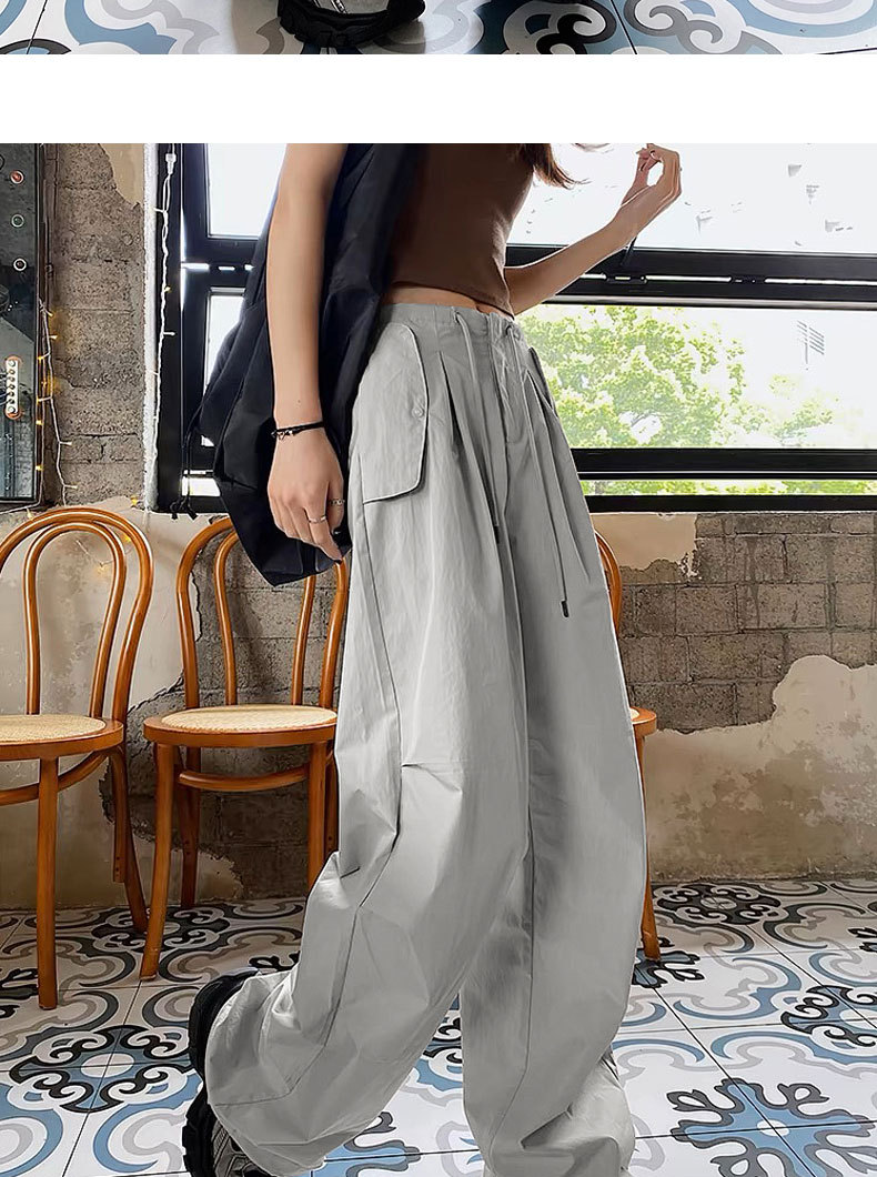 흑인 미국주의 바지 여성의 봄과 가을 2025 새로운 폭발 넓은 다리 바지 높은 허리 슬리밍 사그 스포츠 낙하산 바지스토어 가기