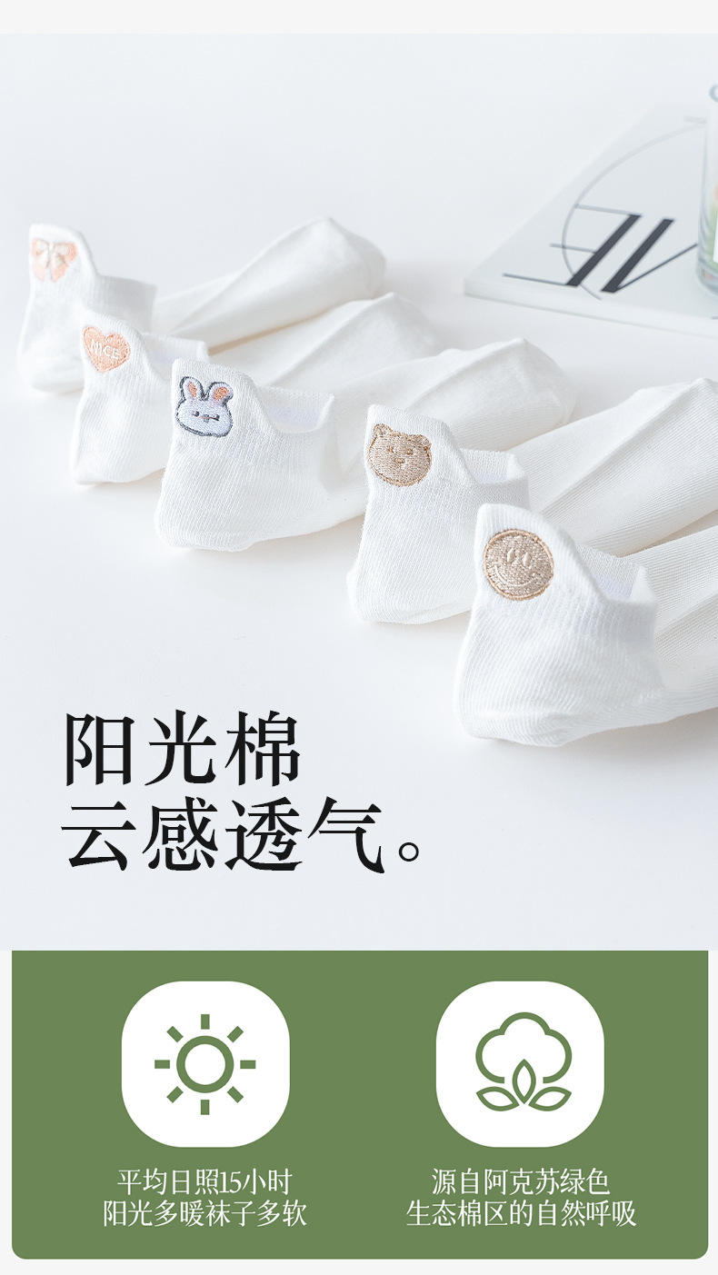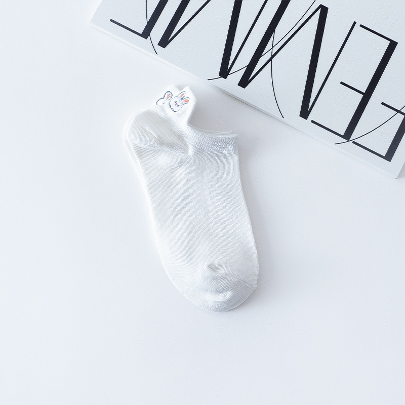 틸트 화이트 양말 여성 귀여운 자수 패턴 여름면 양말 안티 필링 여성 양말 주지 양말 도매