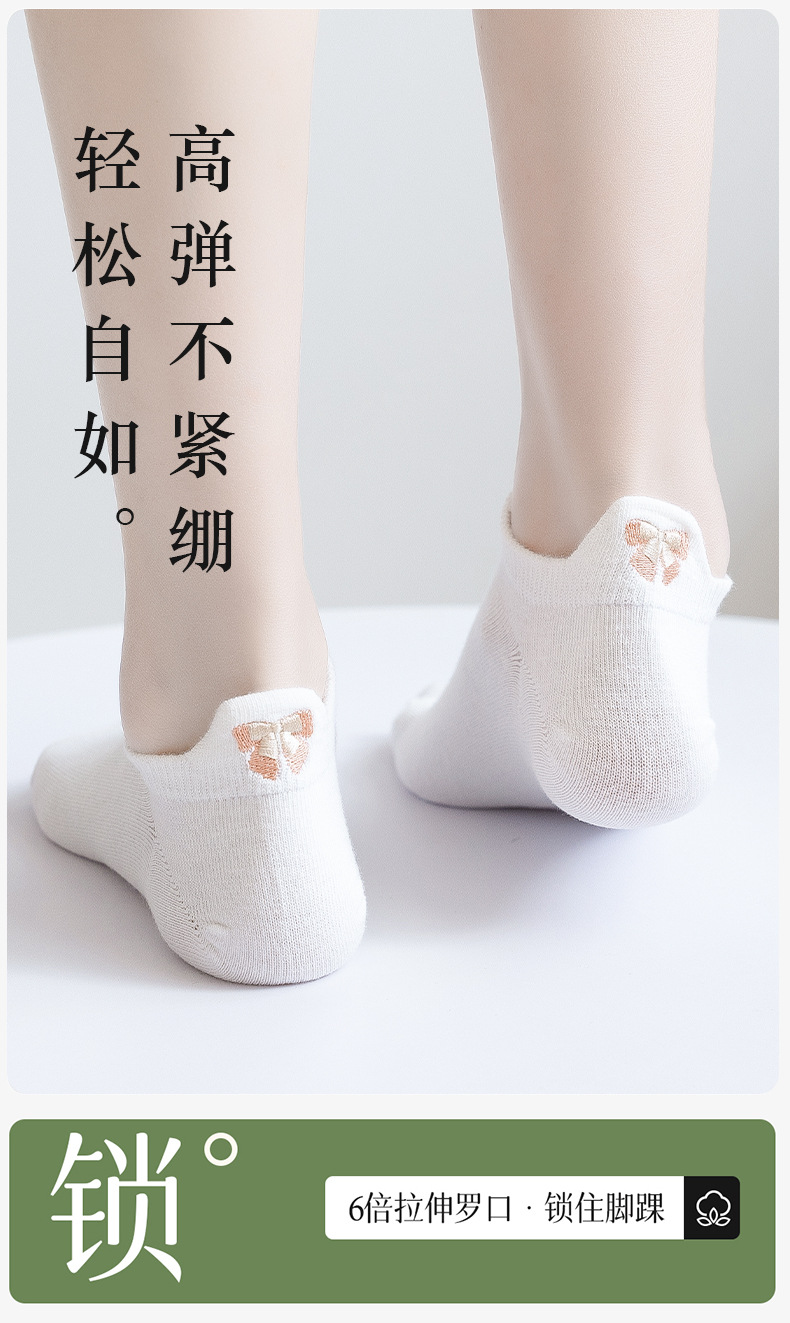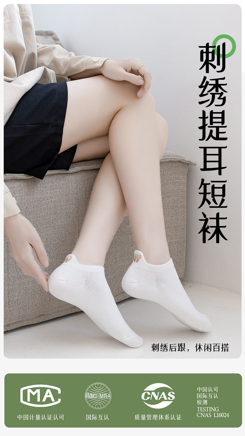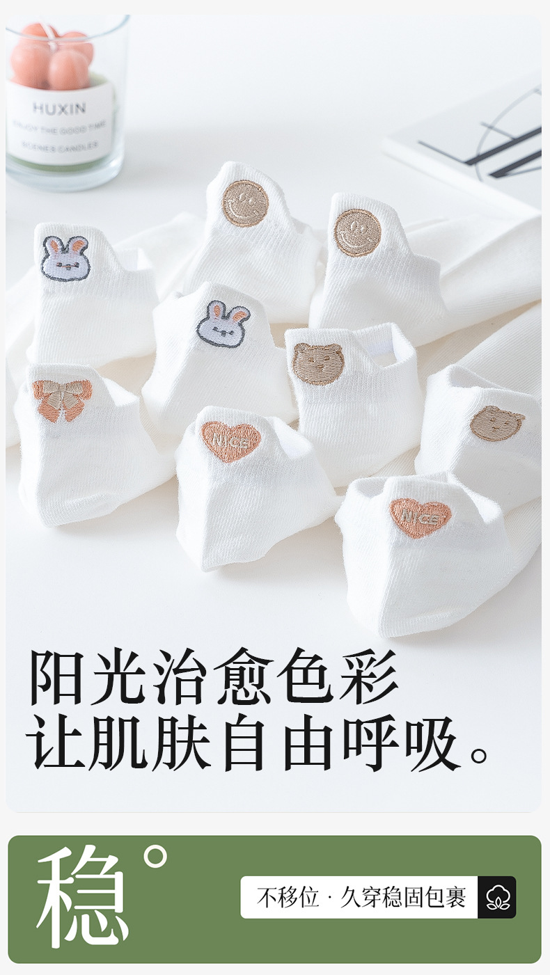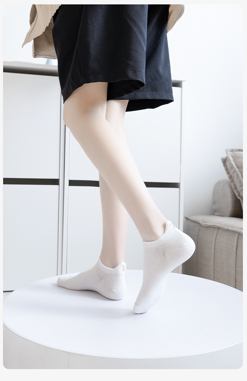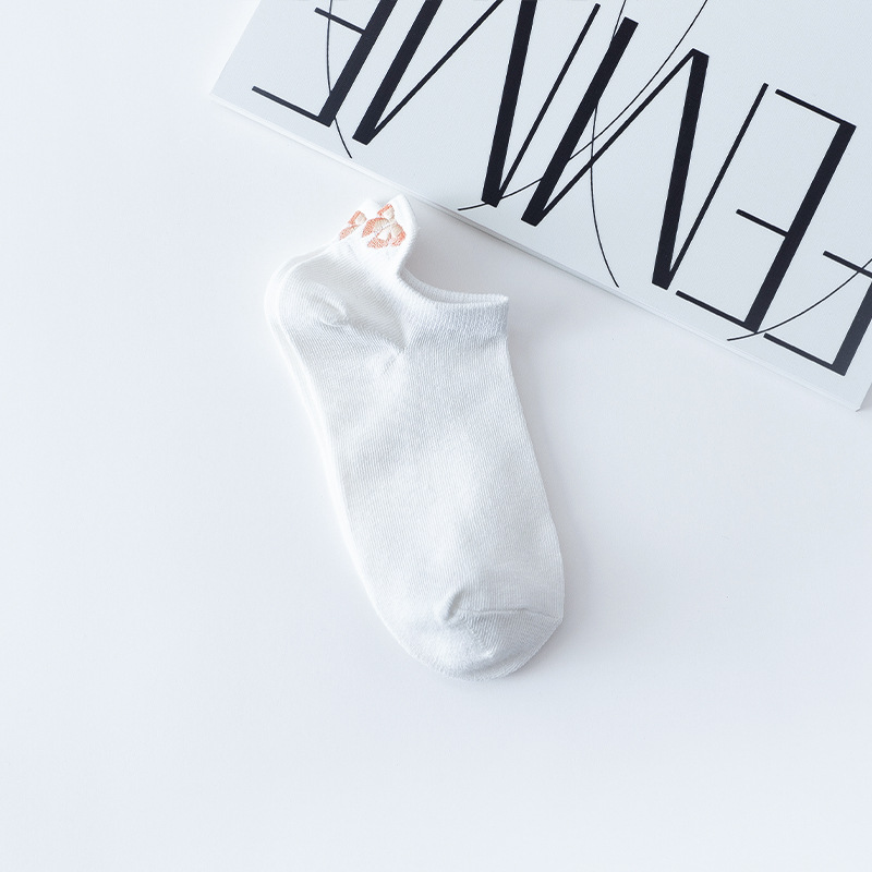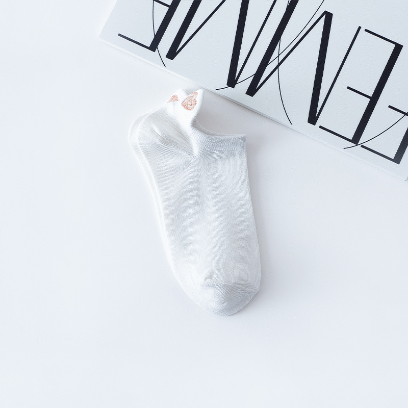 틸트 화이트 양말 여성 귀여운 자수 패턴 여름면 양말 안티 필링 여성 양말 주지 양말 도매스토어 가기