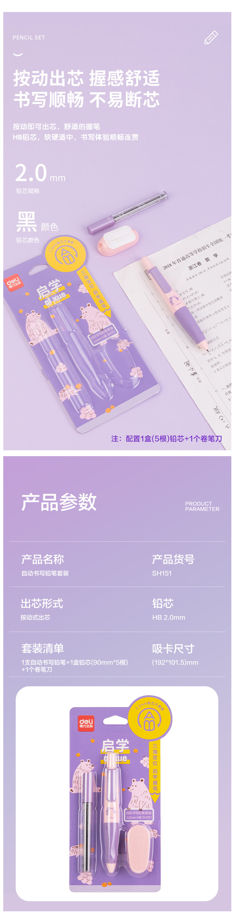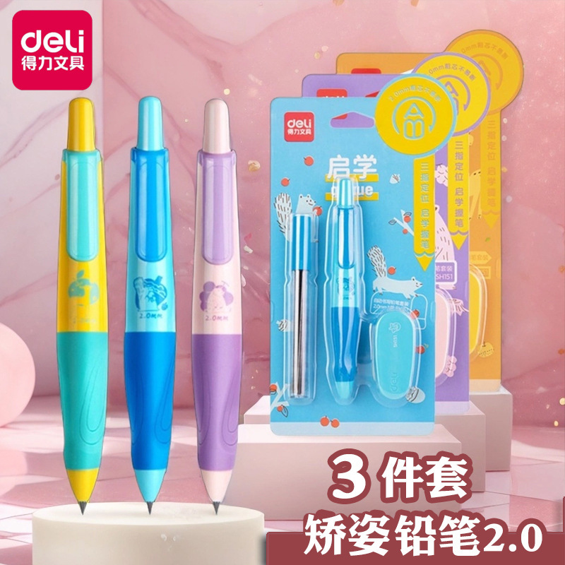 Deli SH151 학습 자동 글쓰기 연필 세트 초등학교 학생 HB 쓰기 펜 어린이 올바른 지탱 자세 연필