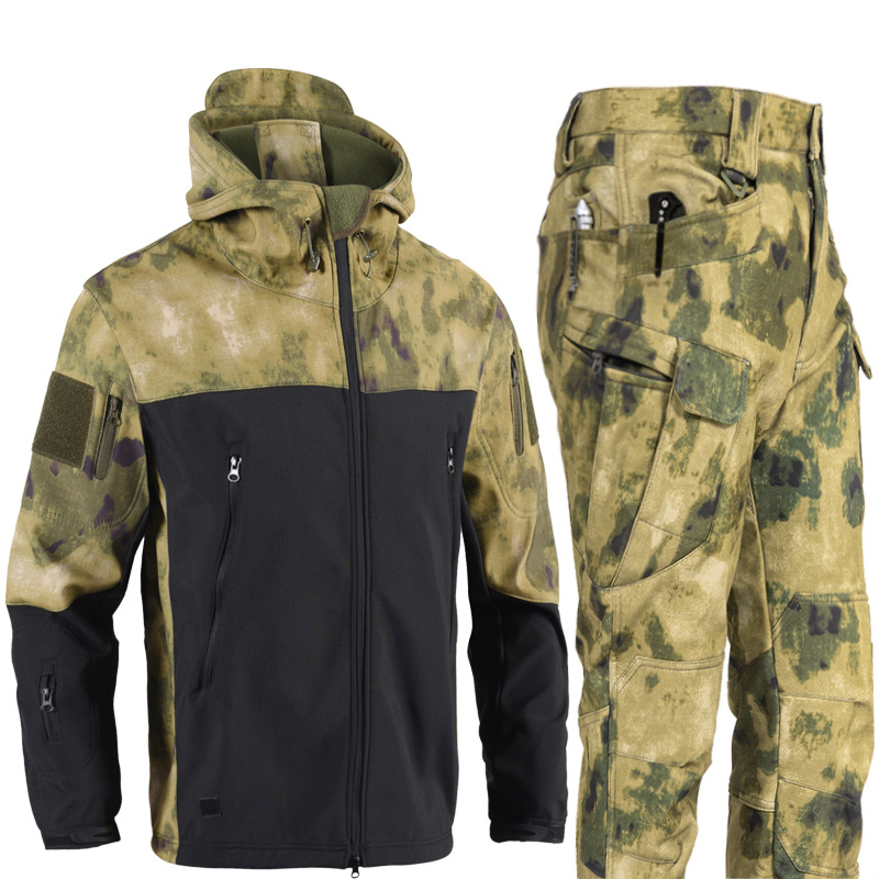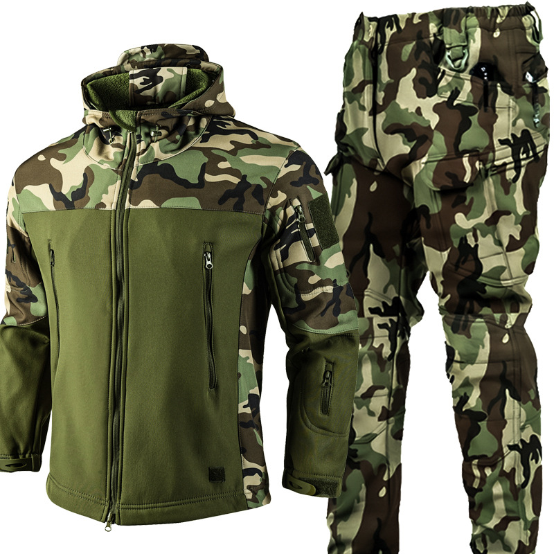 새로운 바느질 2 세대 상어 피부 충전 바지 세트 기모 방수 소프트 쉘 재킷 세트