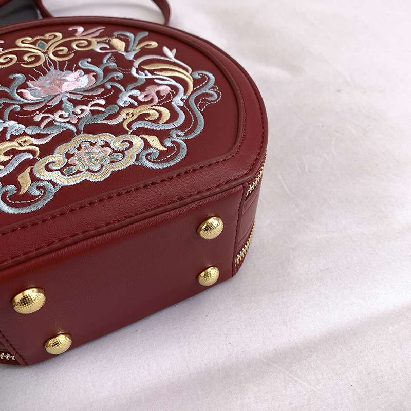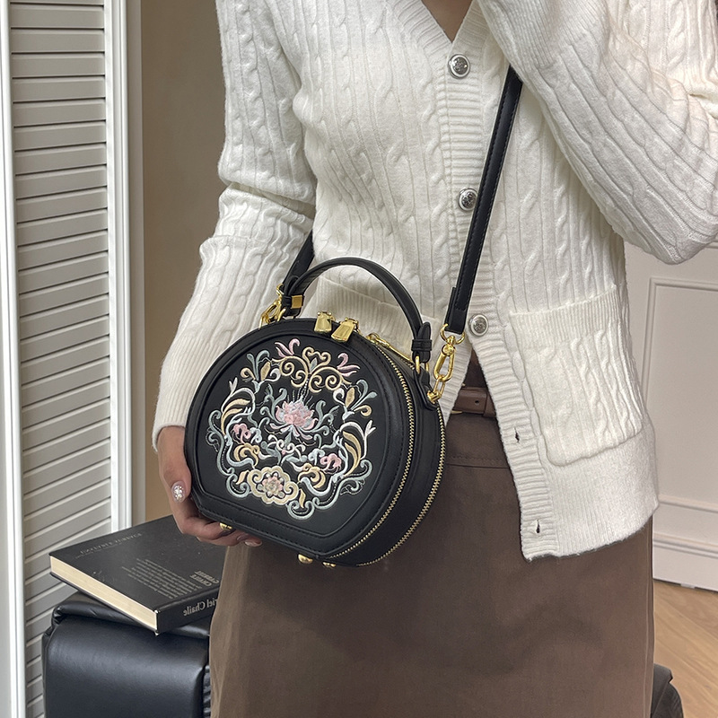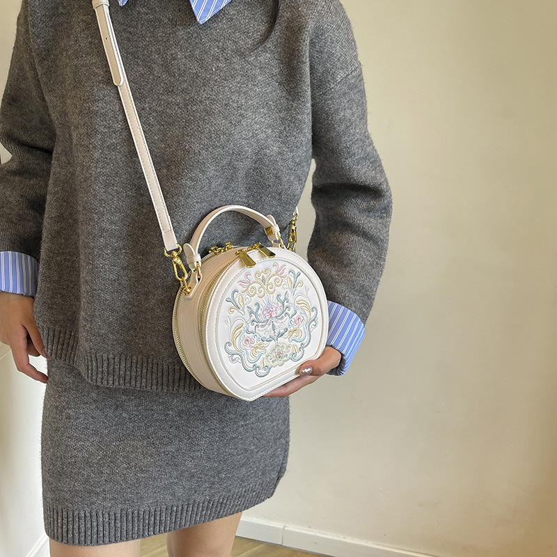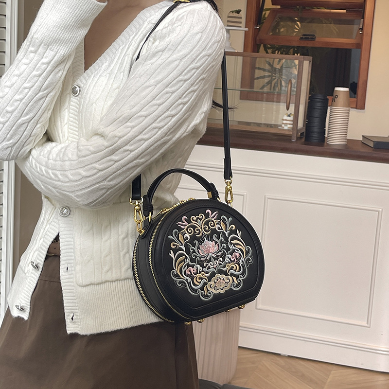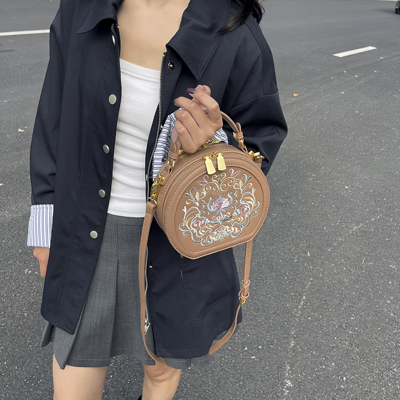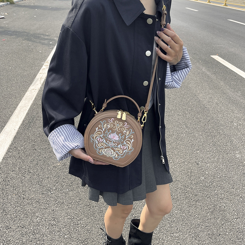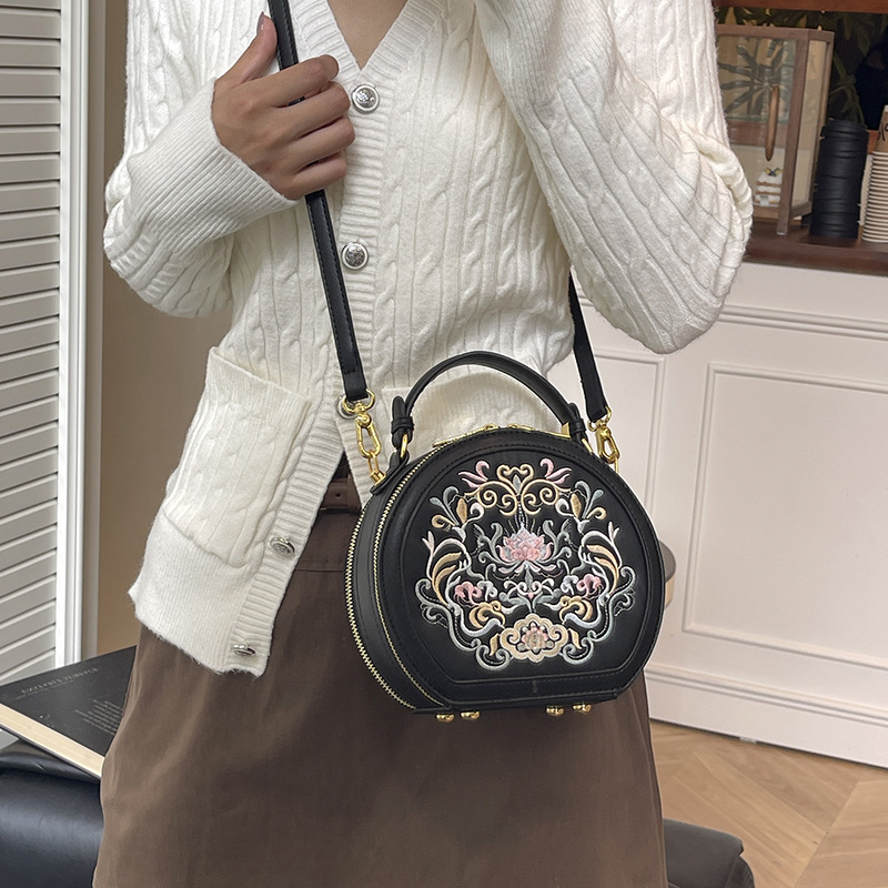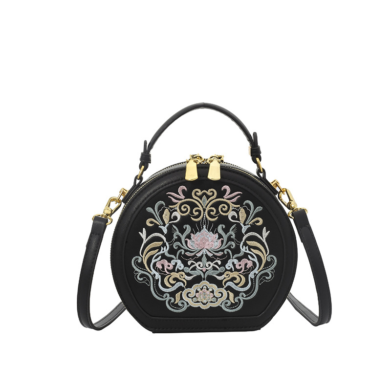 어깨 가방 여성 자수 민족 스타일 캐주얼 휴대용 작은 라운드 가방 유행 국가 스타일 수제 컬러 크로스 바디 백