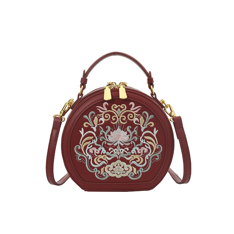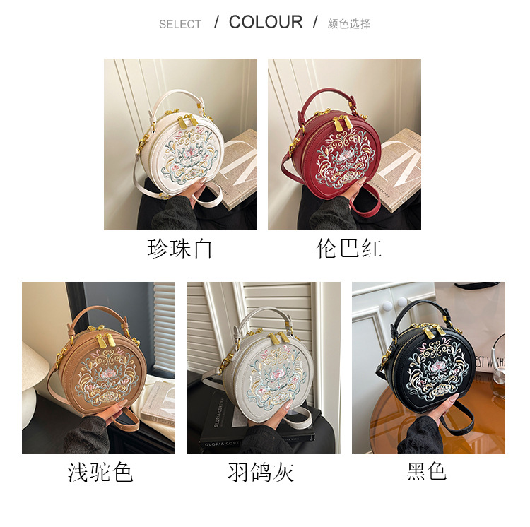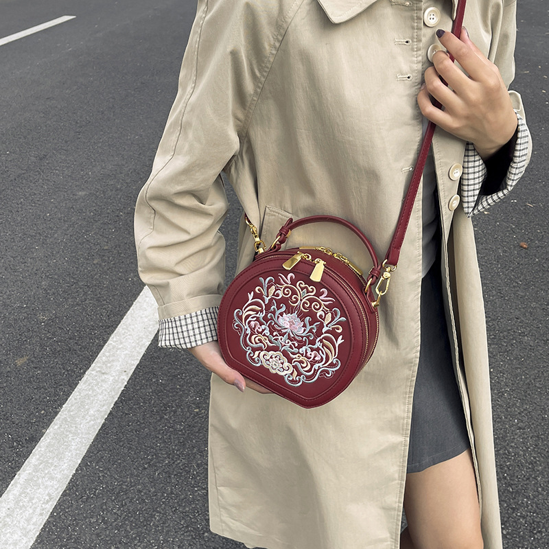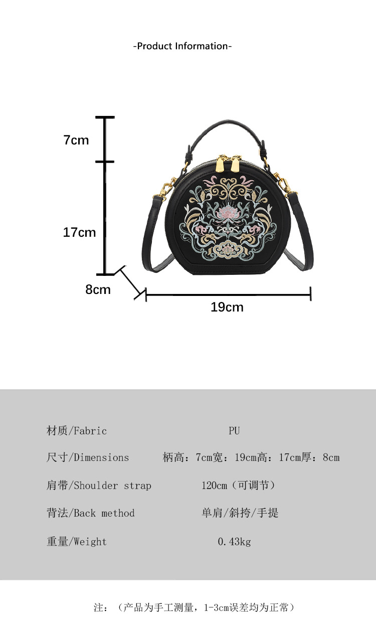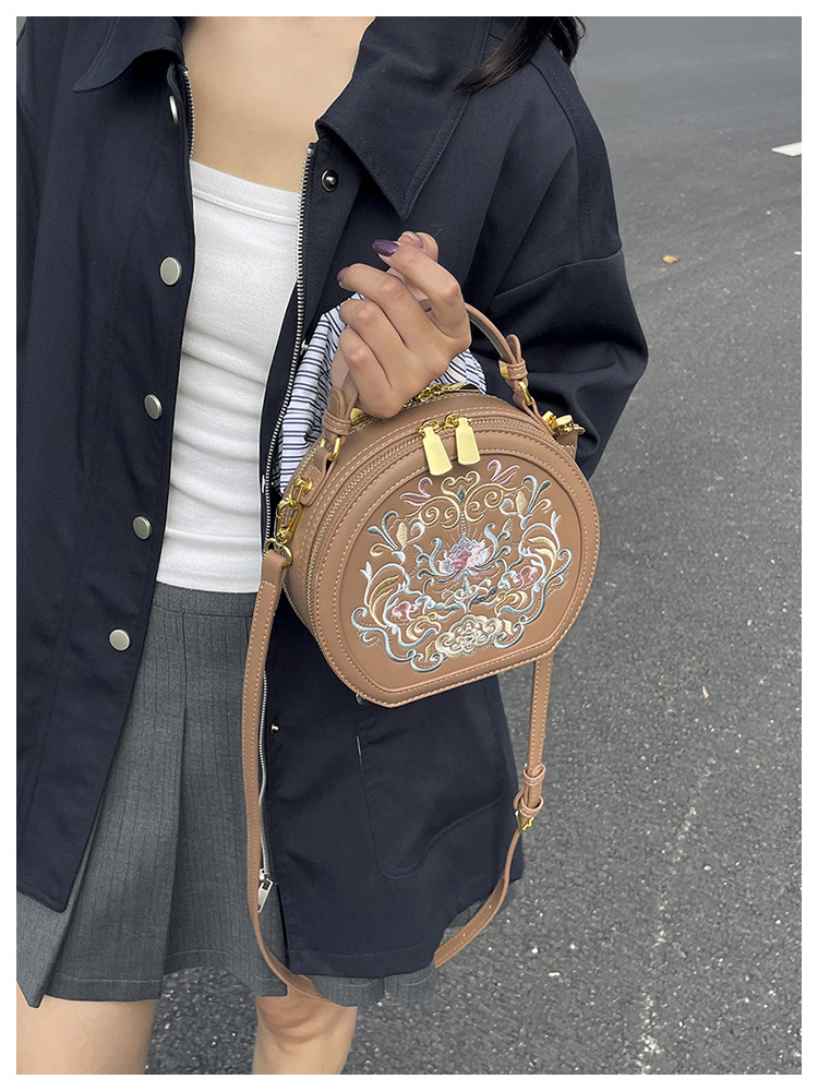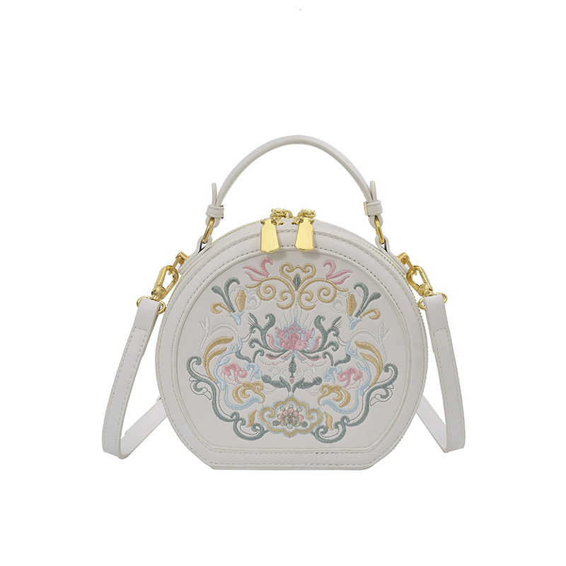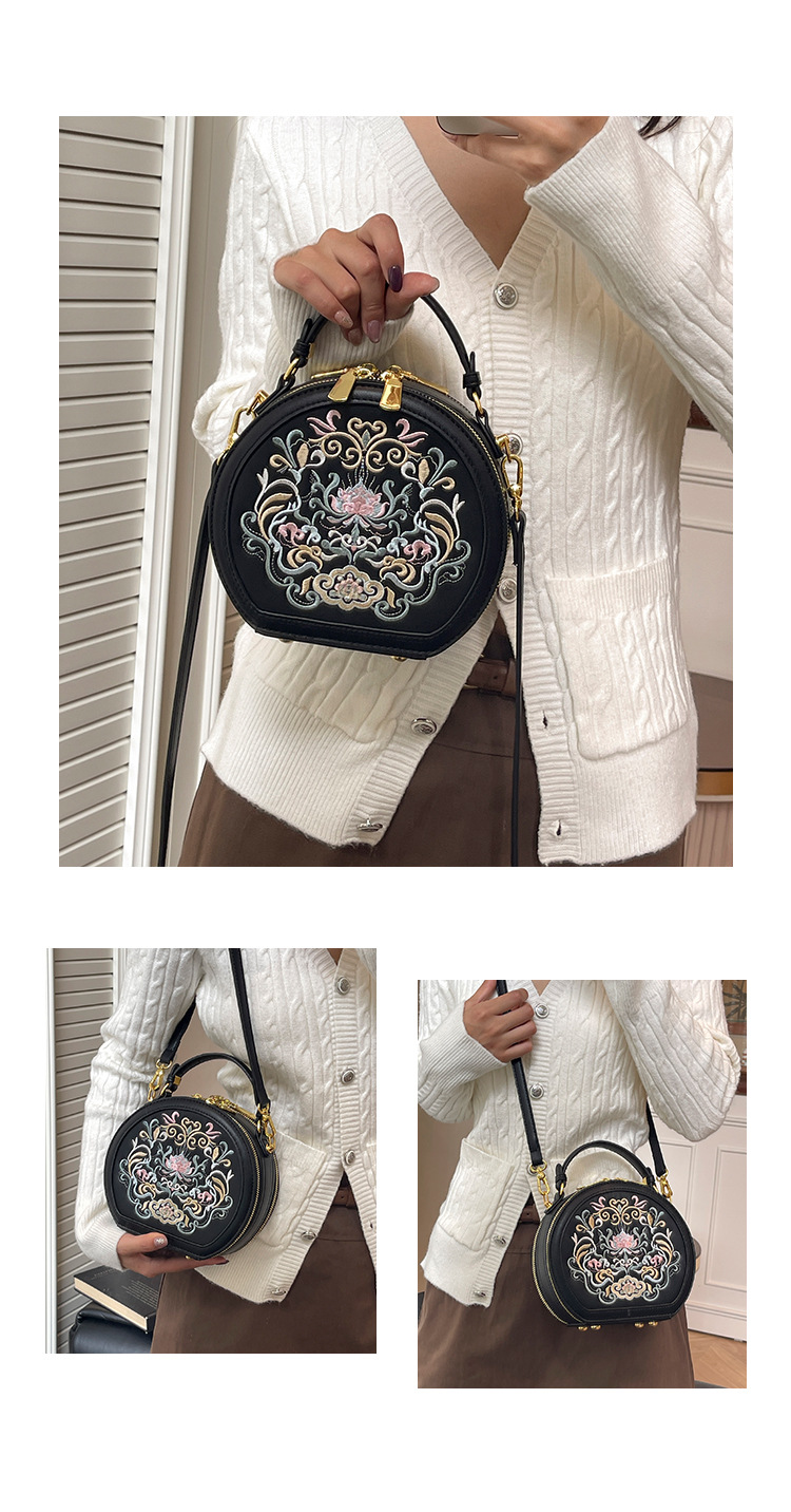 어깨 가방 여성 자수 민족 스타일 캐주얼 휴대용 작은 라운드 가방 유행 국가 스타일 수제 컬러 크로스 바디 백