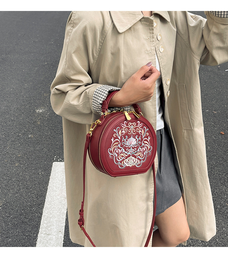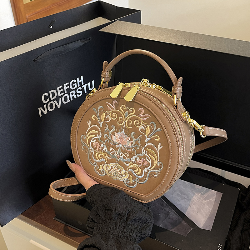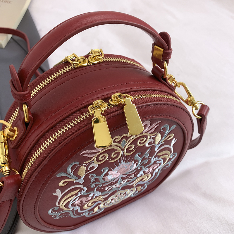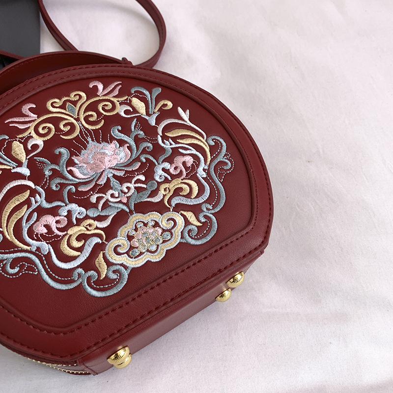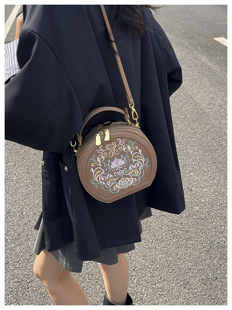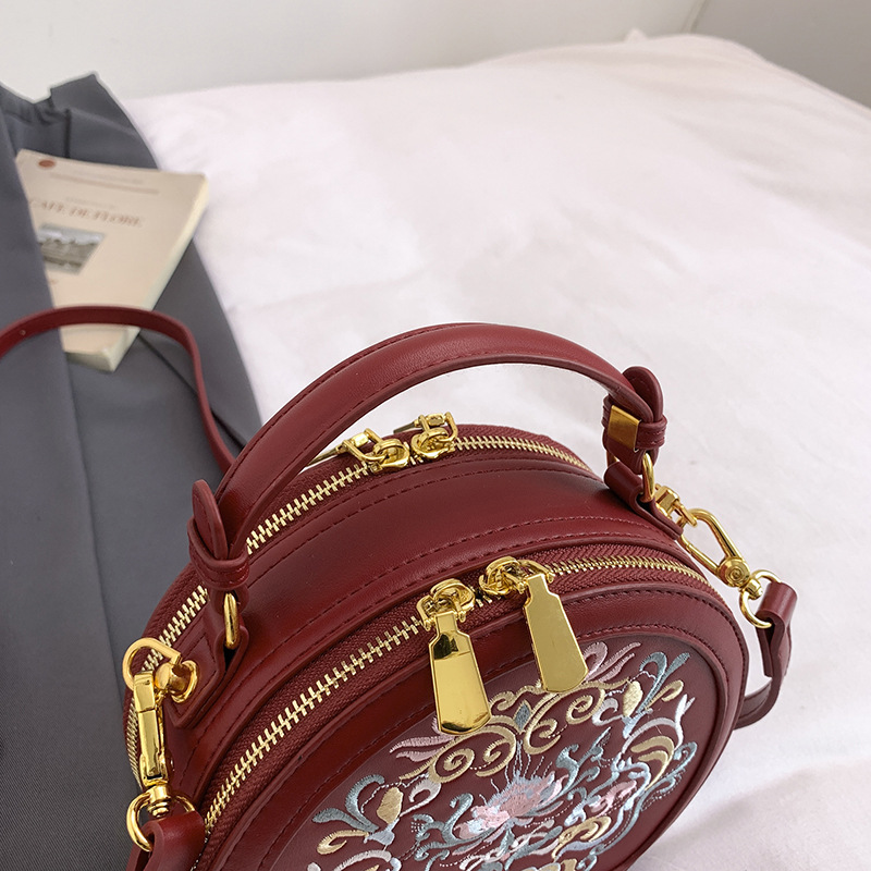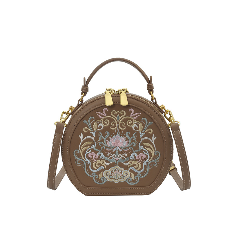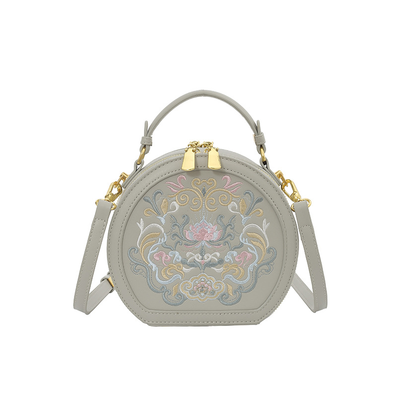 어깨 가방 여성 자수 민족 스타일 캐주얼 휴대용 작은 라운드 가방 유행 국가 스타일 수제 컬러 크로스 바디 백
