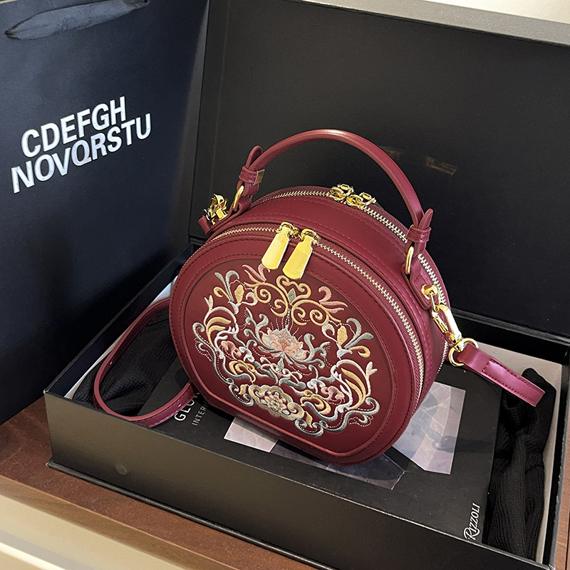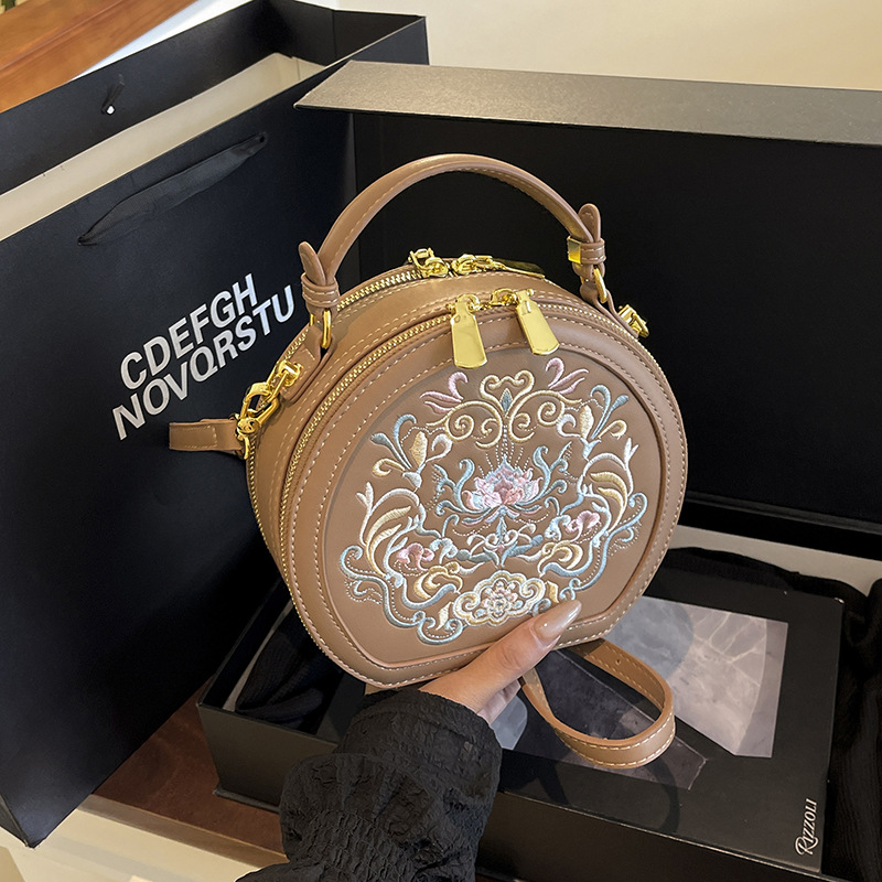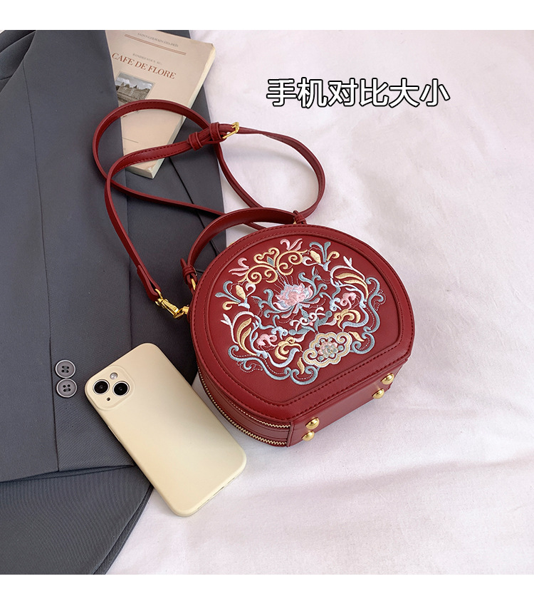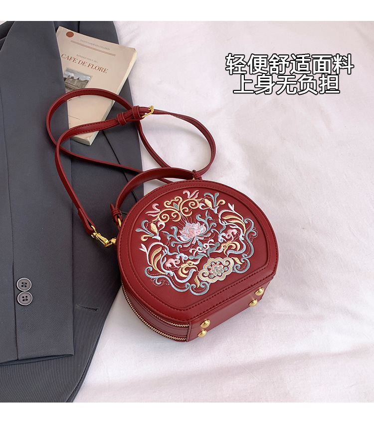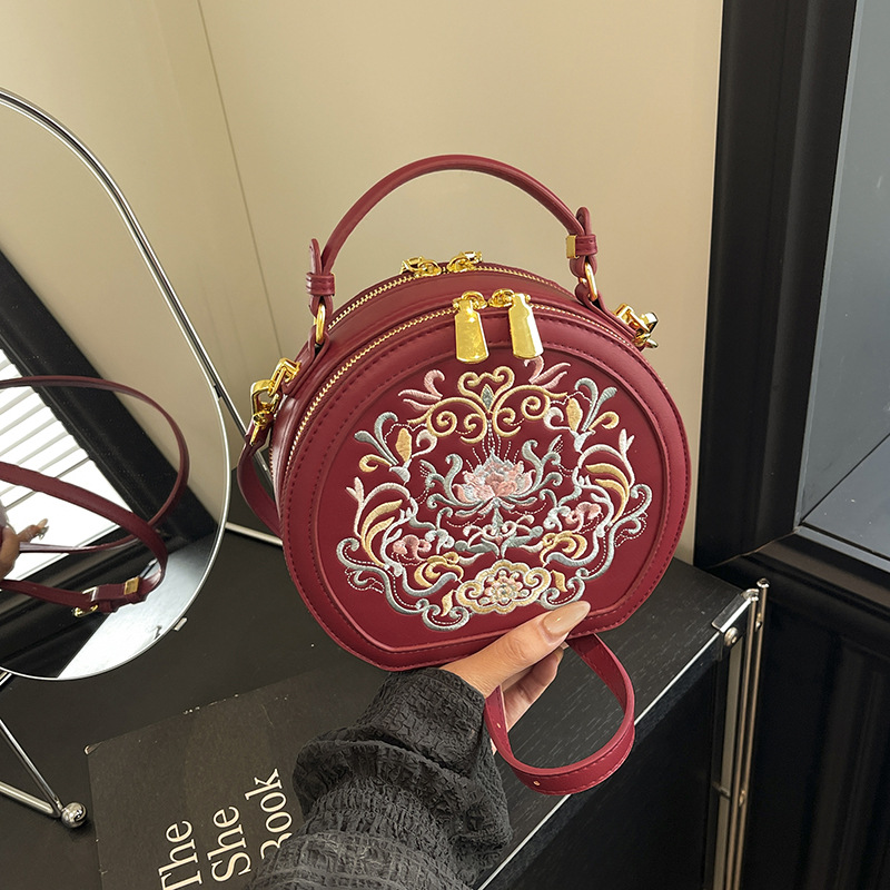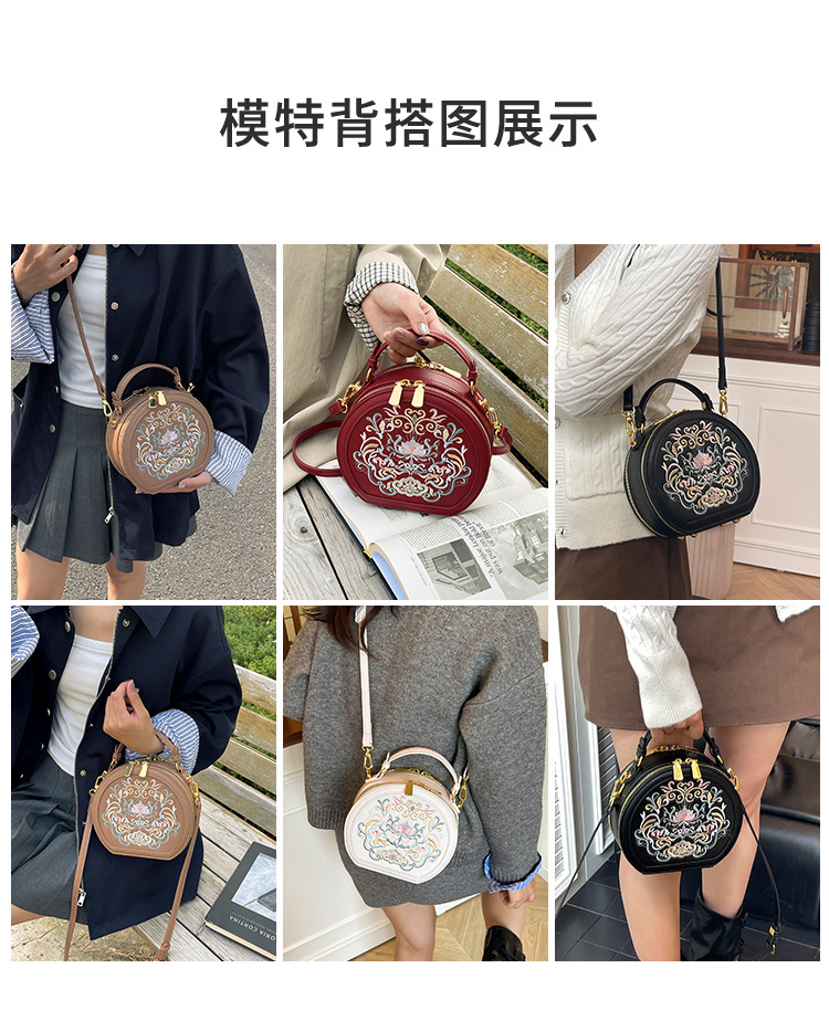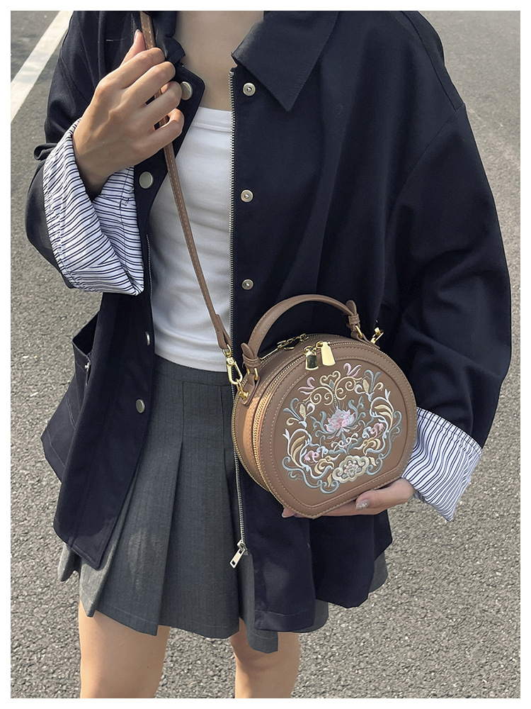 어깨 가방 여성 자수 민족 스타일 캐주얼 휴대용 작은 라운드 가방 유행 국가 스타일 수제 컬러 크로스 바디 백