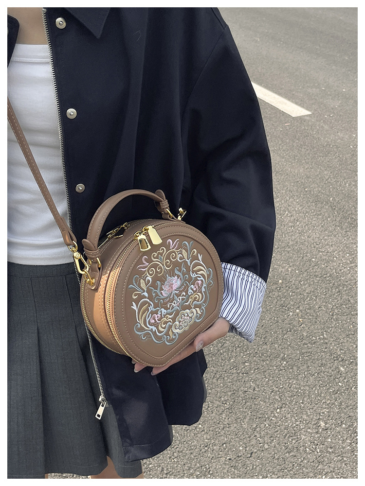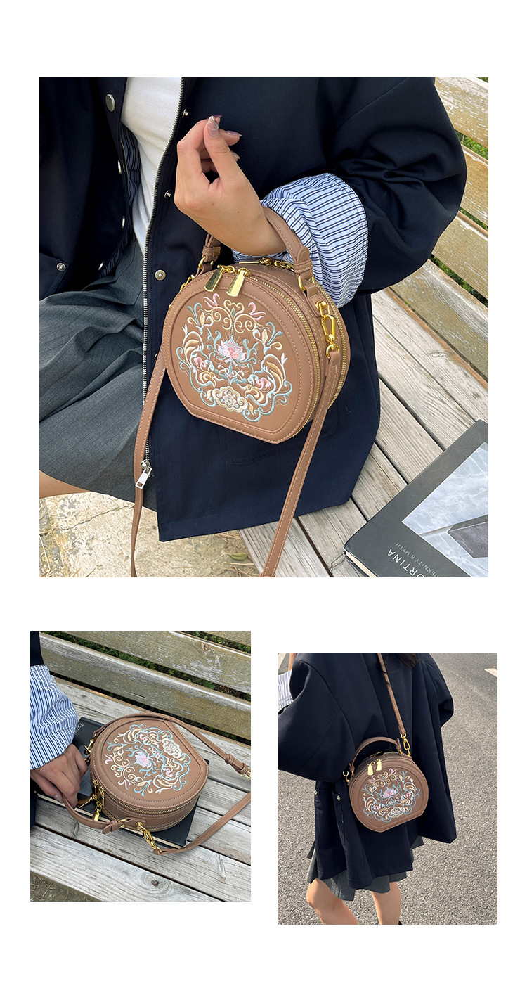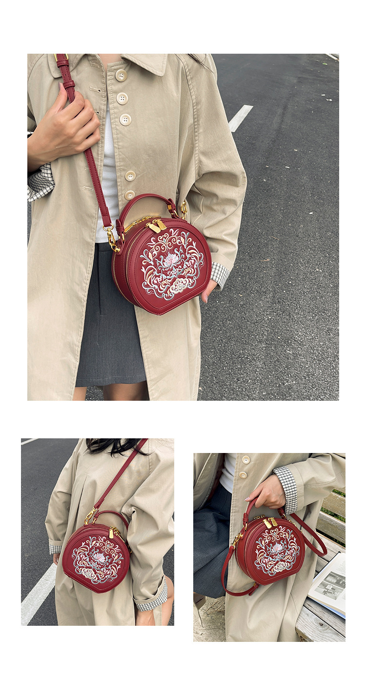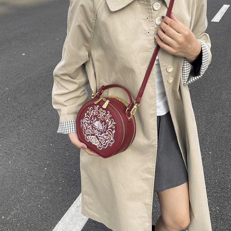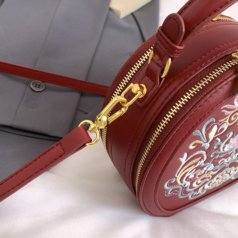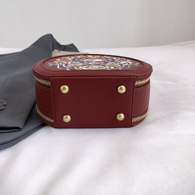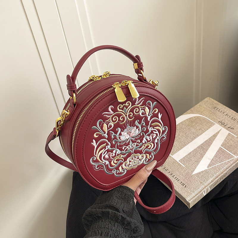 어깨 가방 여성 자수 민족 스타일 캐주얼 휴대용 작은 라운드 가방 유행 국가 스타일 수제 컬러 크로스 바디 백