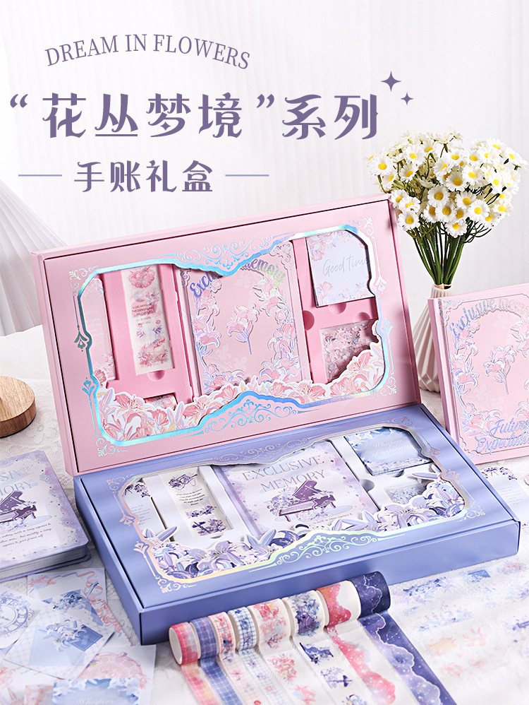 꽃과 꿈 레트로 손 계정 선물 상자 세트 학생 노트북 손 계정 소재 선물 가방 선물 상자 스티커스토어 가기