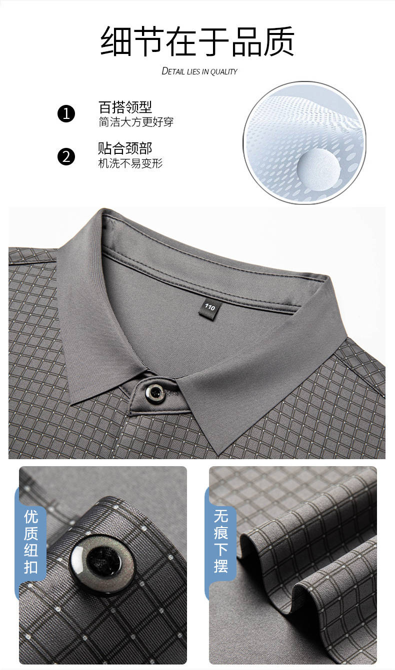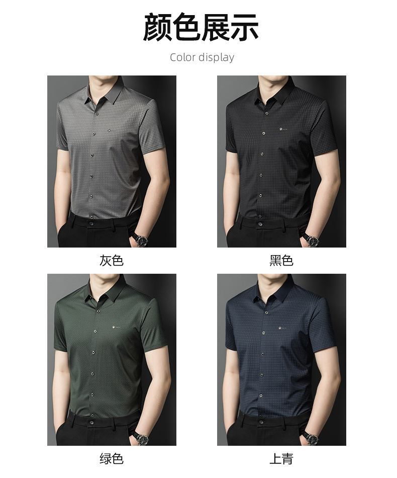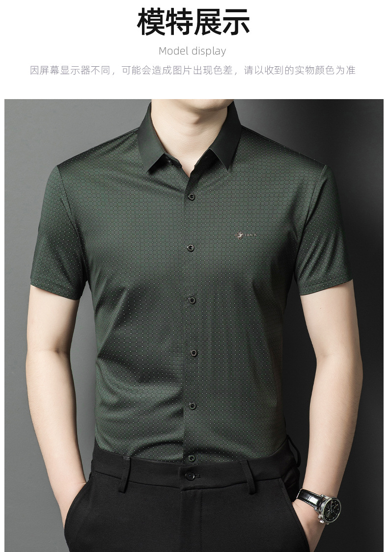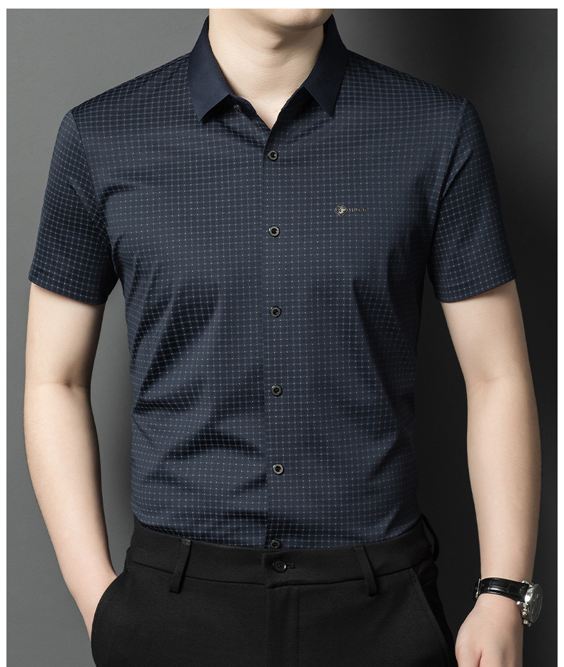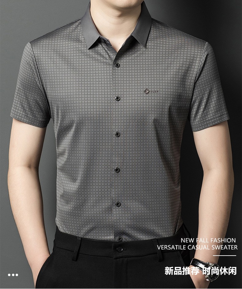 하이 엔드 비 마킹 핫 스탬핑 작은 격자 무늬 아이스 실크 셔츠 반팔 여름 얇은 남성 비즈니스 캐주얼 중년 아빠 옷스토어 가기