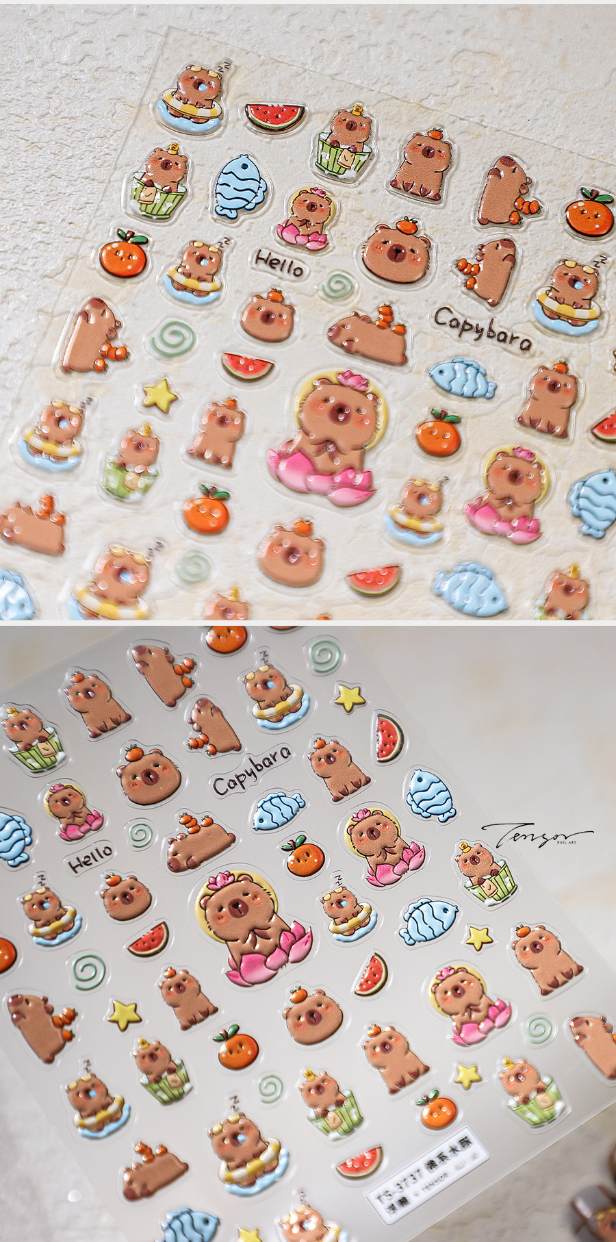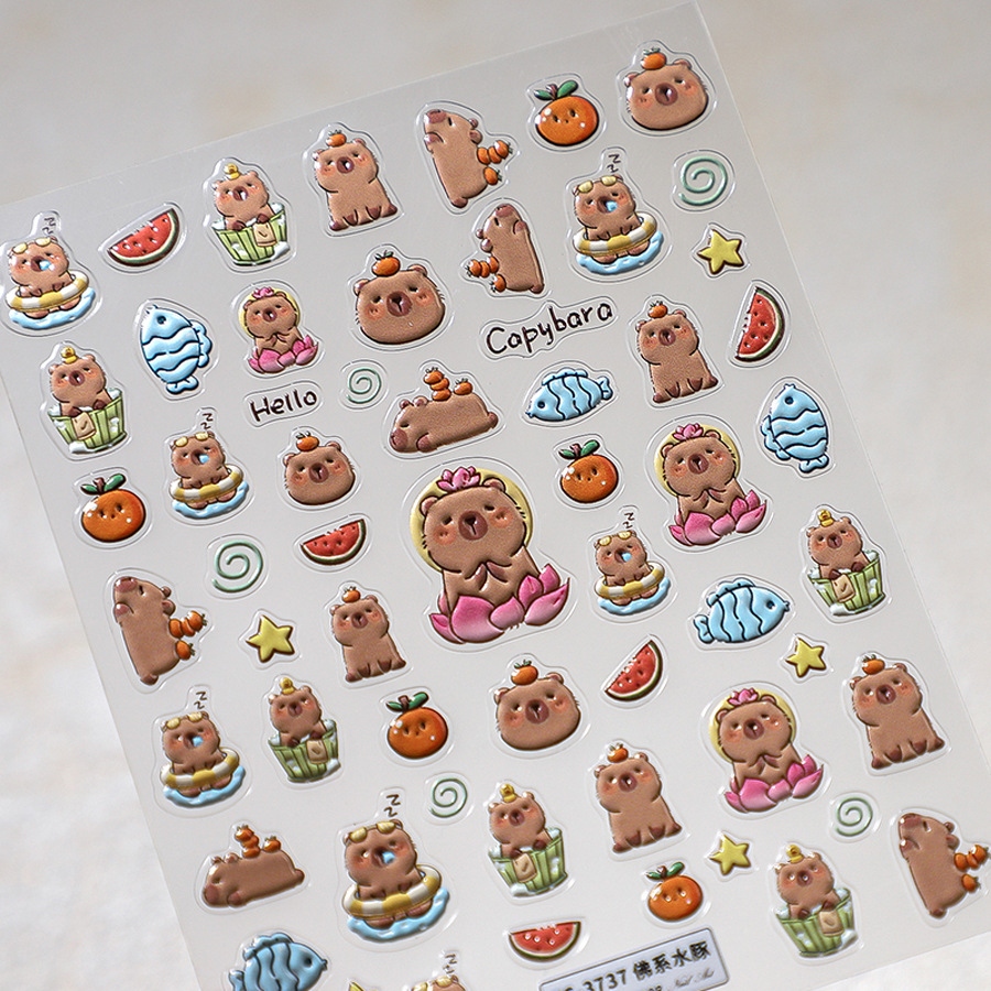TENSOR 새로운 공예 만화 네일 스티커 양각 접착 네일 스티커 보석 TS-3737 부처님 Capybara