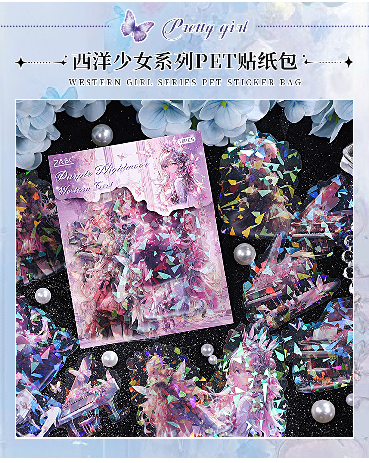 서양 소녀 레이저 쉘 빛 투명한 방수 애완 동물 손 계정 스티커 가방 DIY 손 계정 일기 장식 문구 스티커