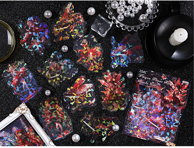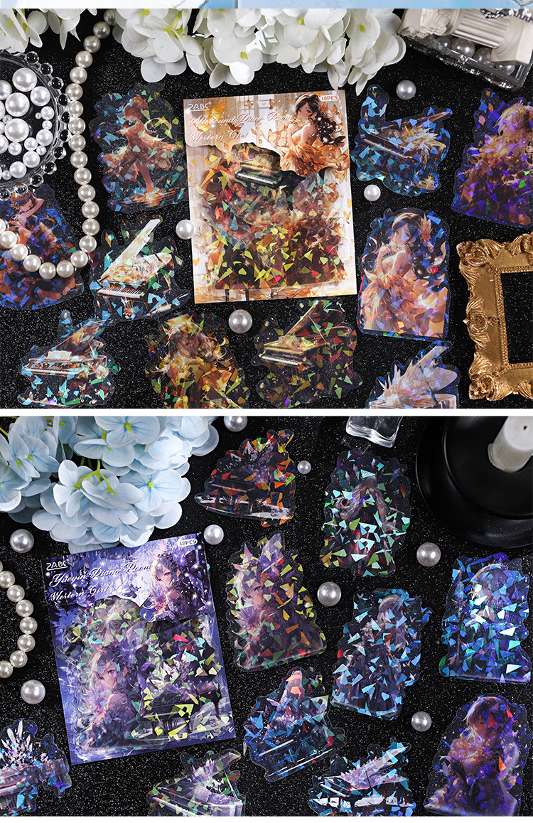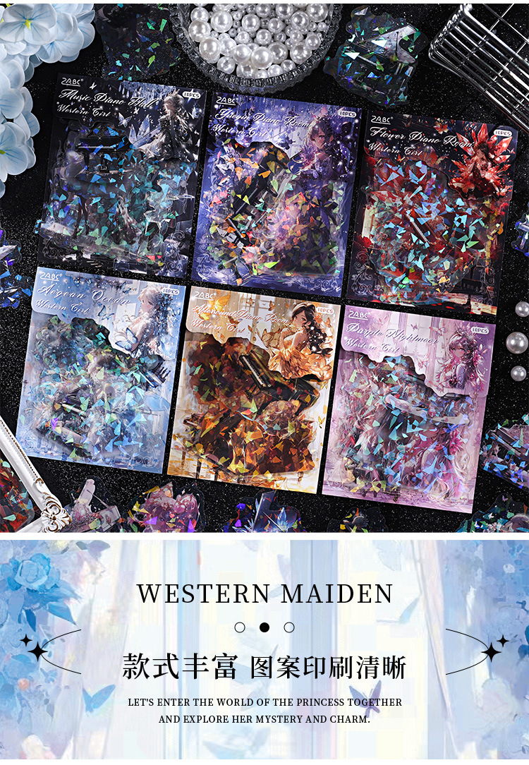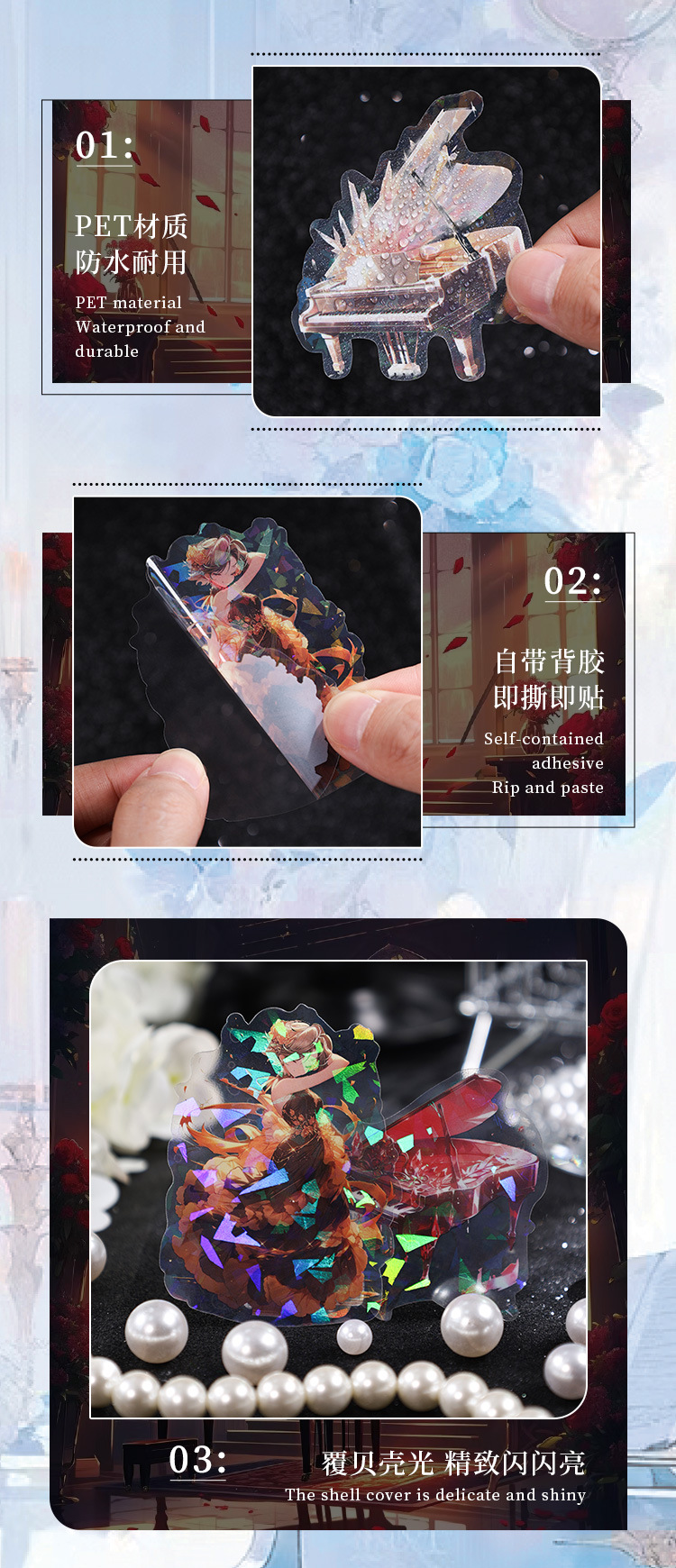 서양 소녀 레이저 쉘 빛 투명한 방수 애완 동물 손 계정 스티커 가방 DIY 손 계정 일기 장식 문구 스티커스토어 가기