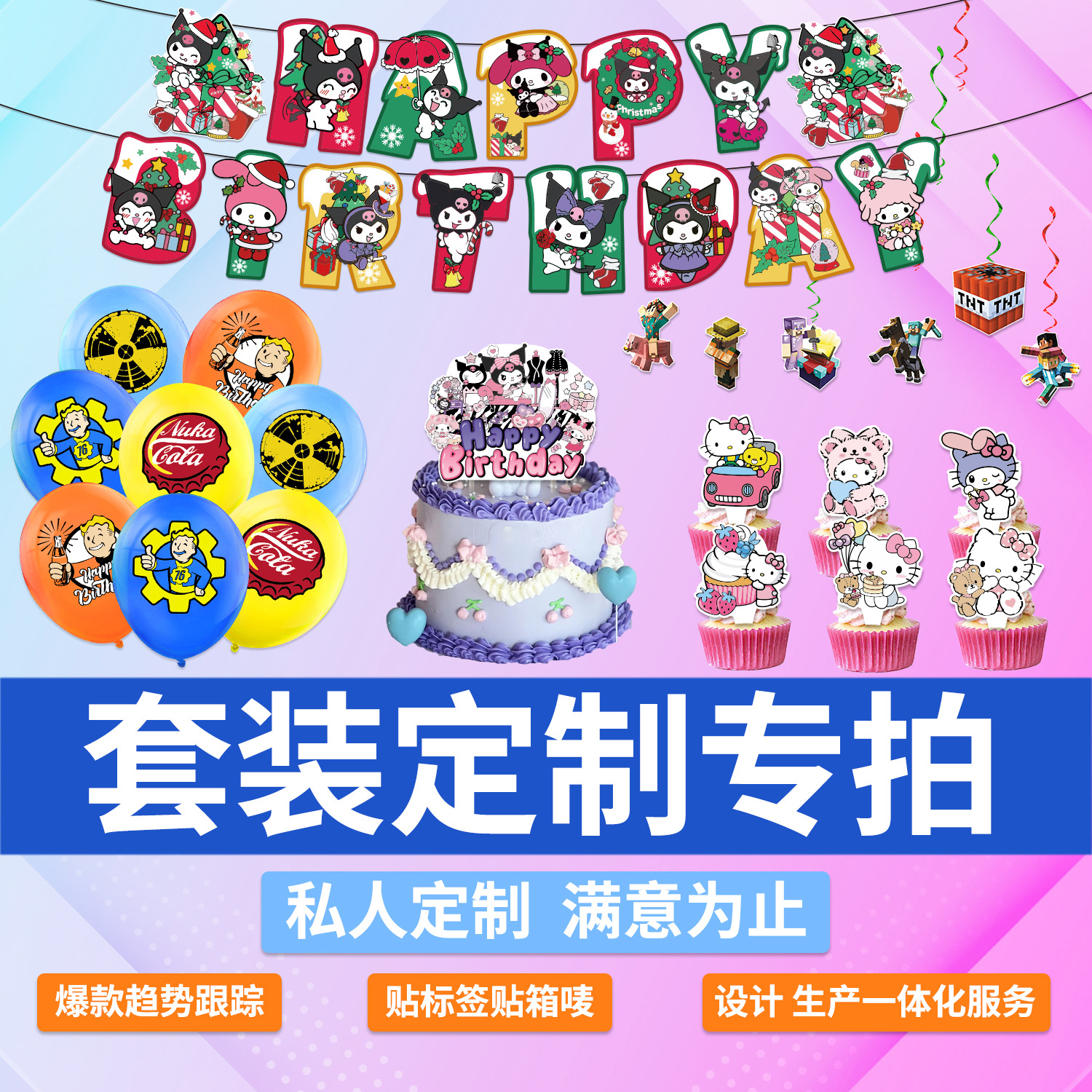 테마 디자인 생일 파티 장식 깃발 케이크 삽입 풍선 초대 카드 꽃 교수형 장면 레이아웃스토어 가기