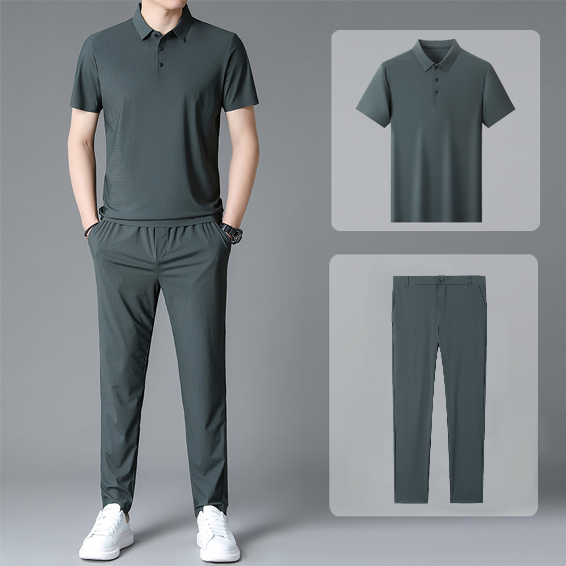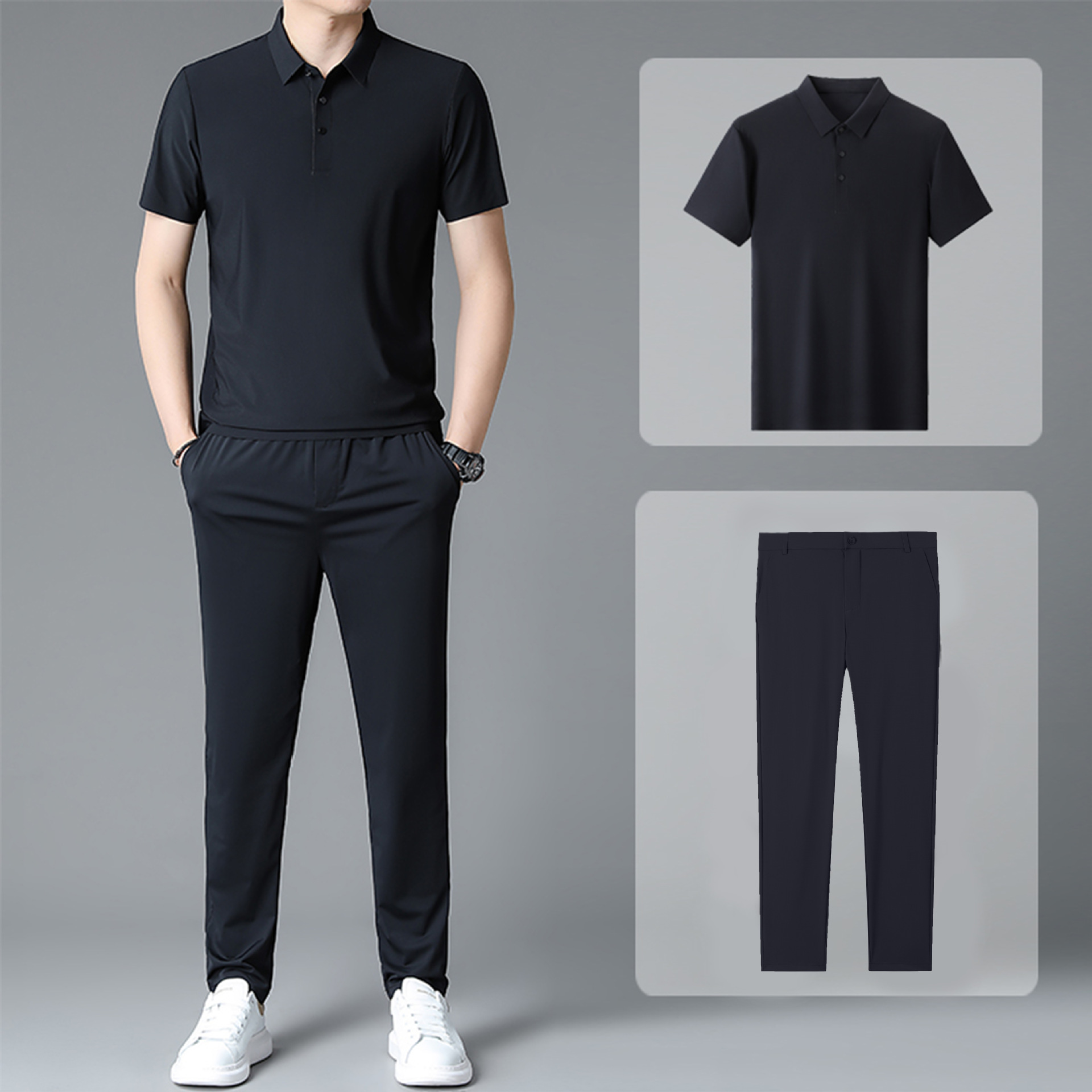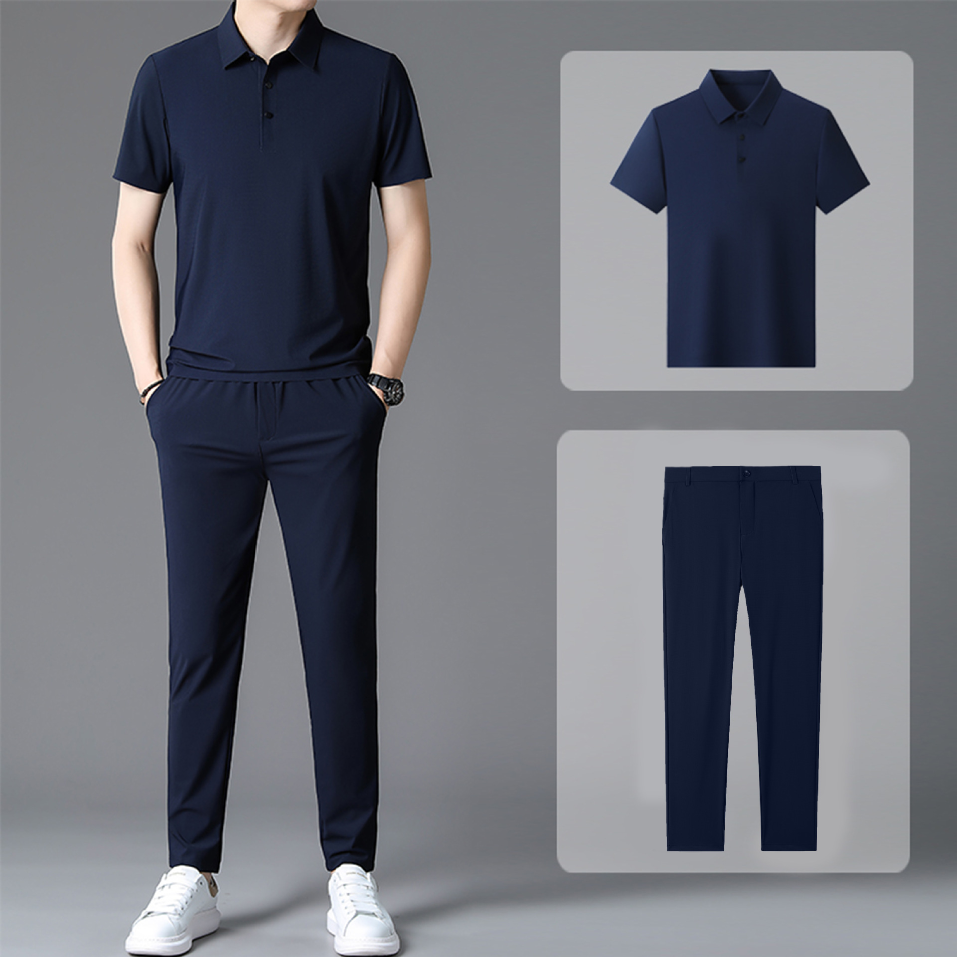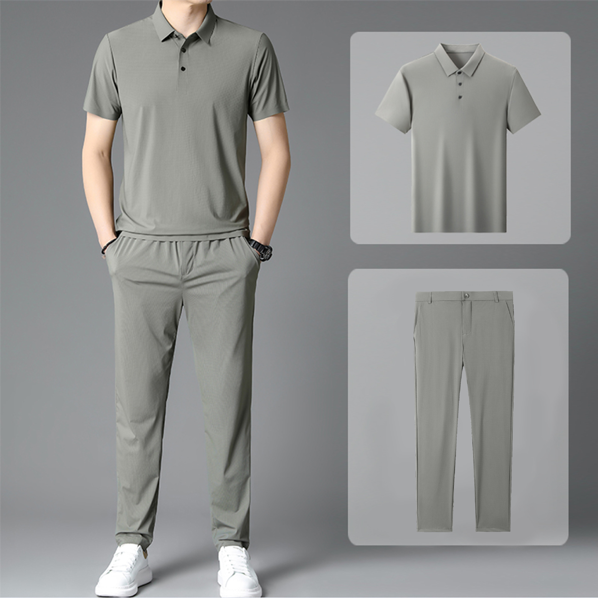 벨트 바지-세트 여름 새로운 남성 티셔츠 짧은 소매 하이 엔드 라이트 럭셔리 스포츠 레저 아이언없는 POLO 셔츠