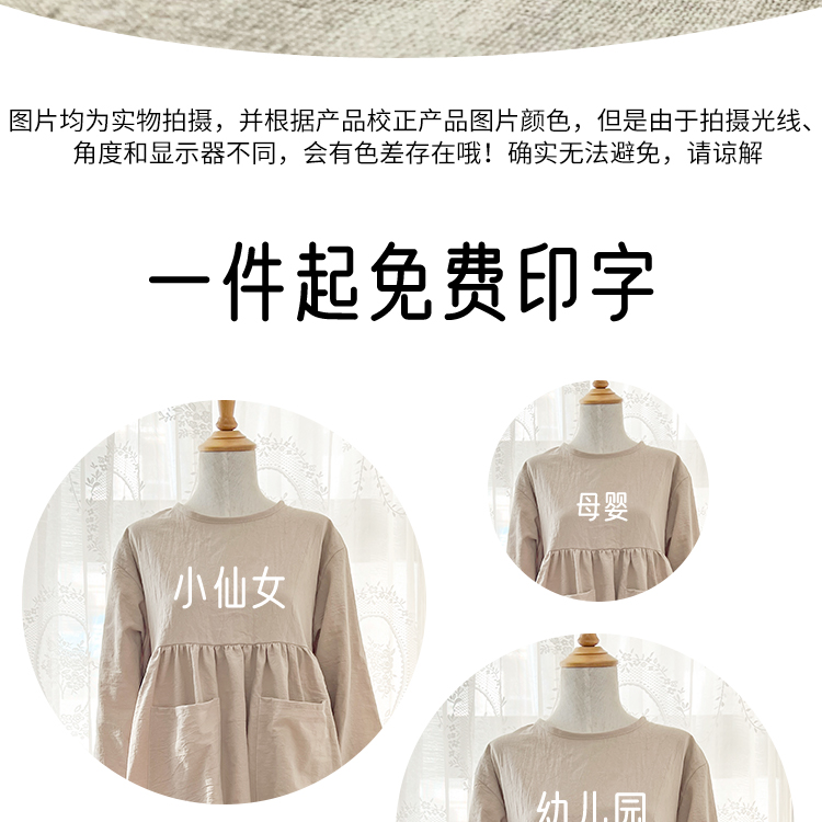 IYR7 작업복 여성용 리버스 착용 앞치마 긴 소매 퓨어 코튼 앞치마 아트 작업 페인팅 커피 숍 홈 주방