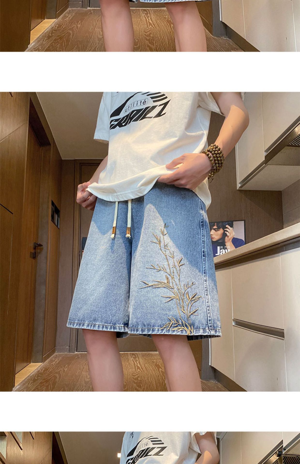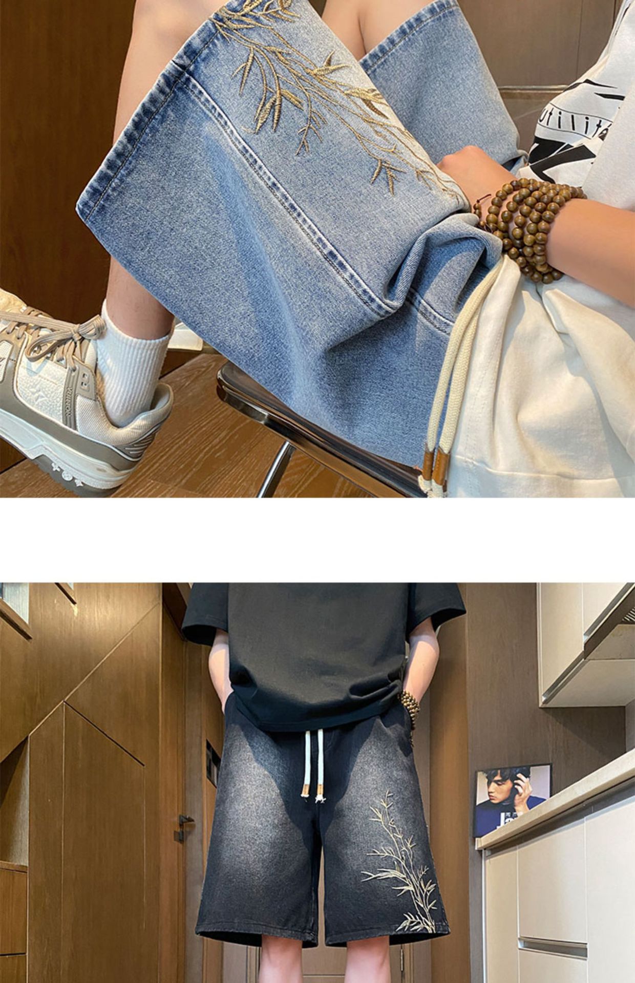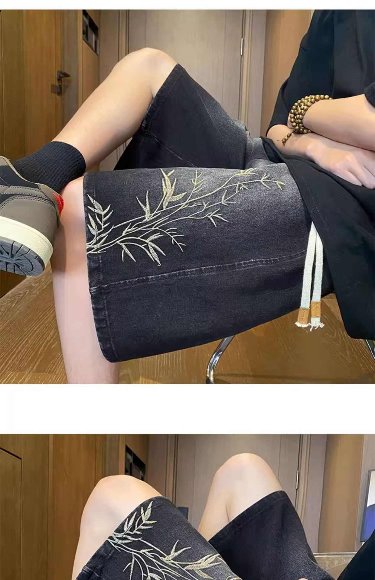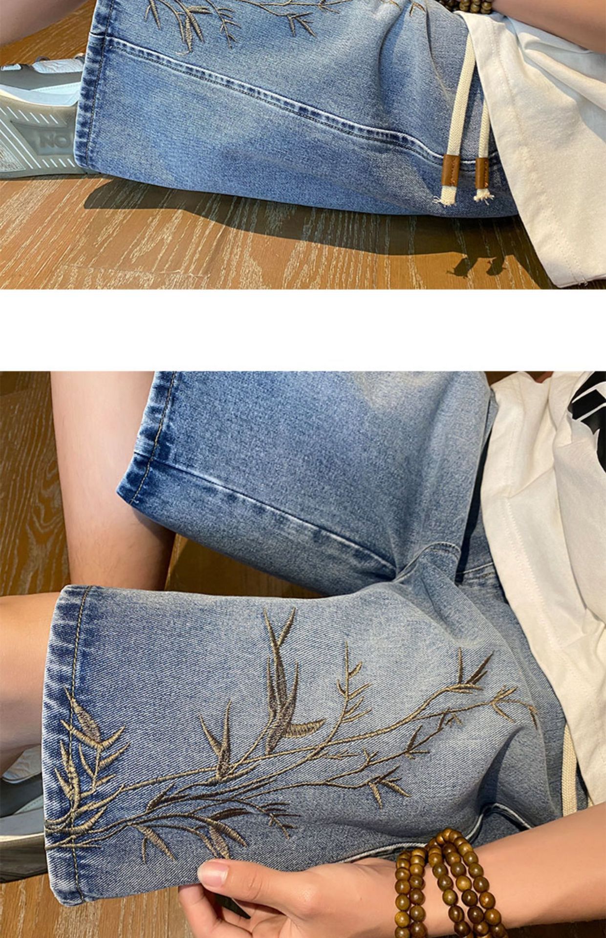 새로운 중국 자수 데님 반바지 남자 여름 얇은 느슨한 빈티지 중간 길이 바지 유행 브랜드 플러스 사이즈 씻은 5 점 바지스토어 가기