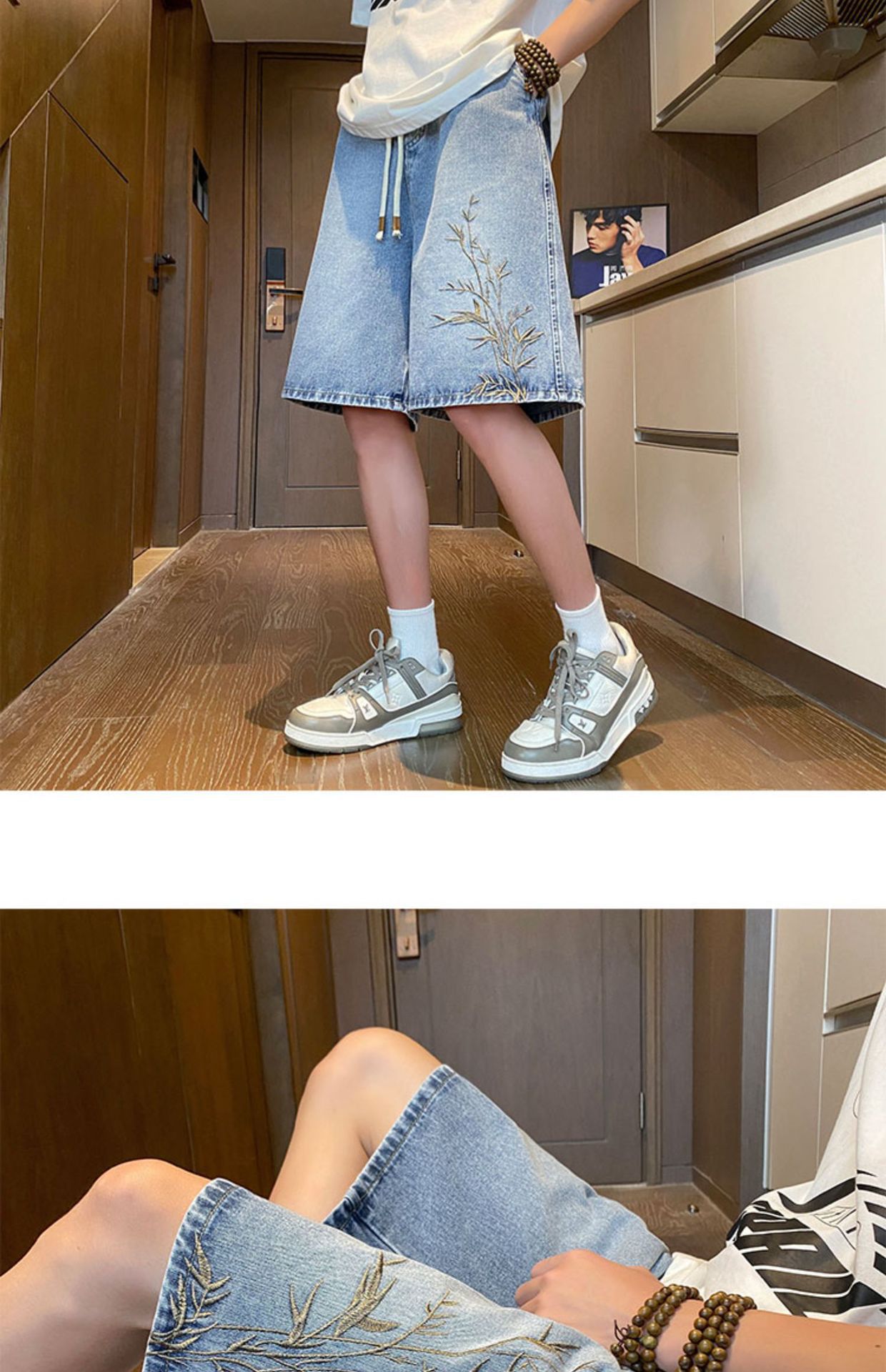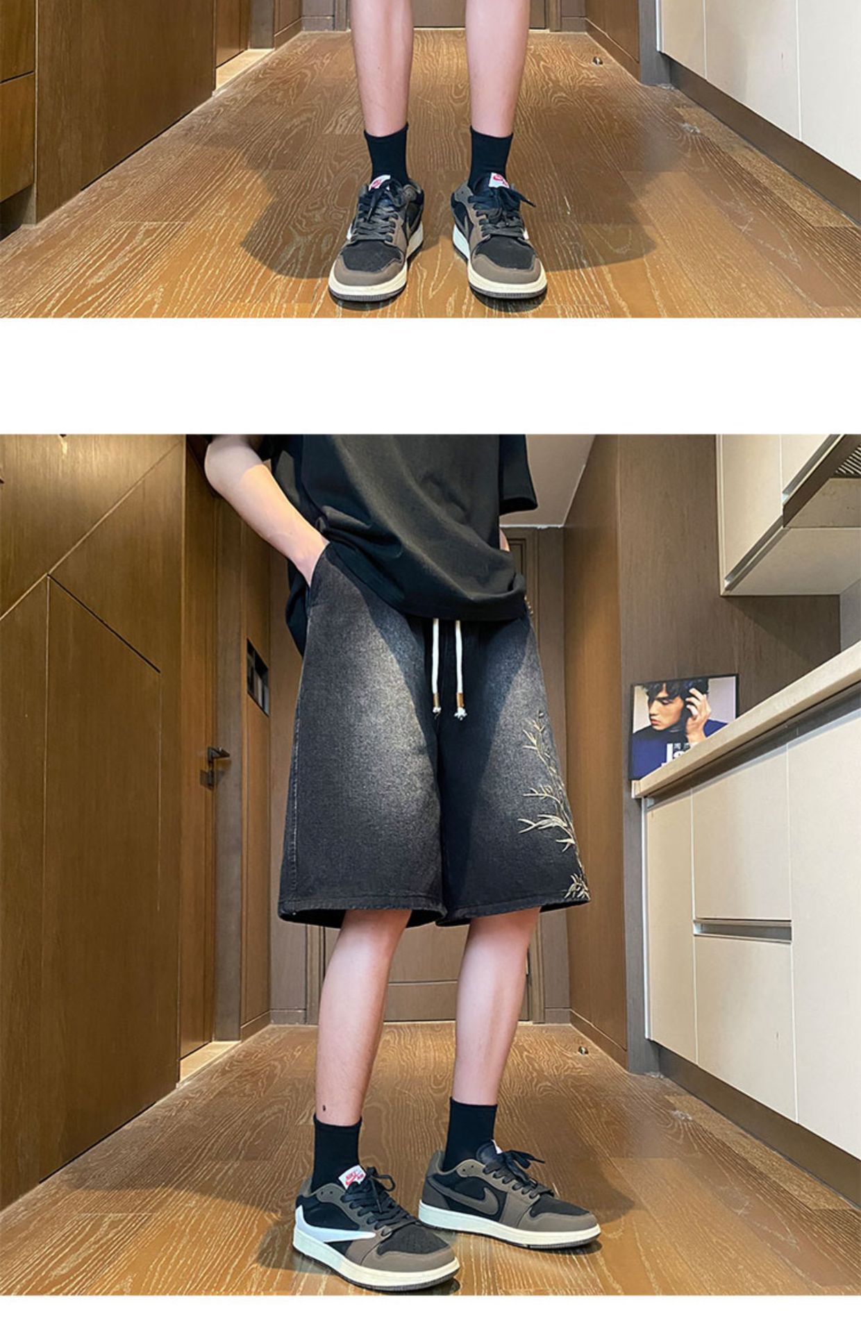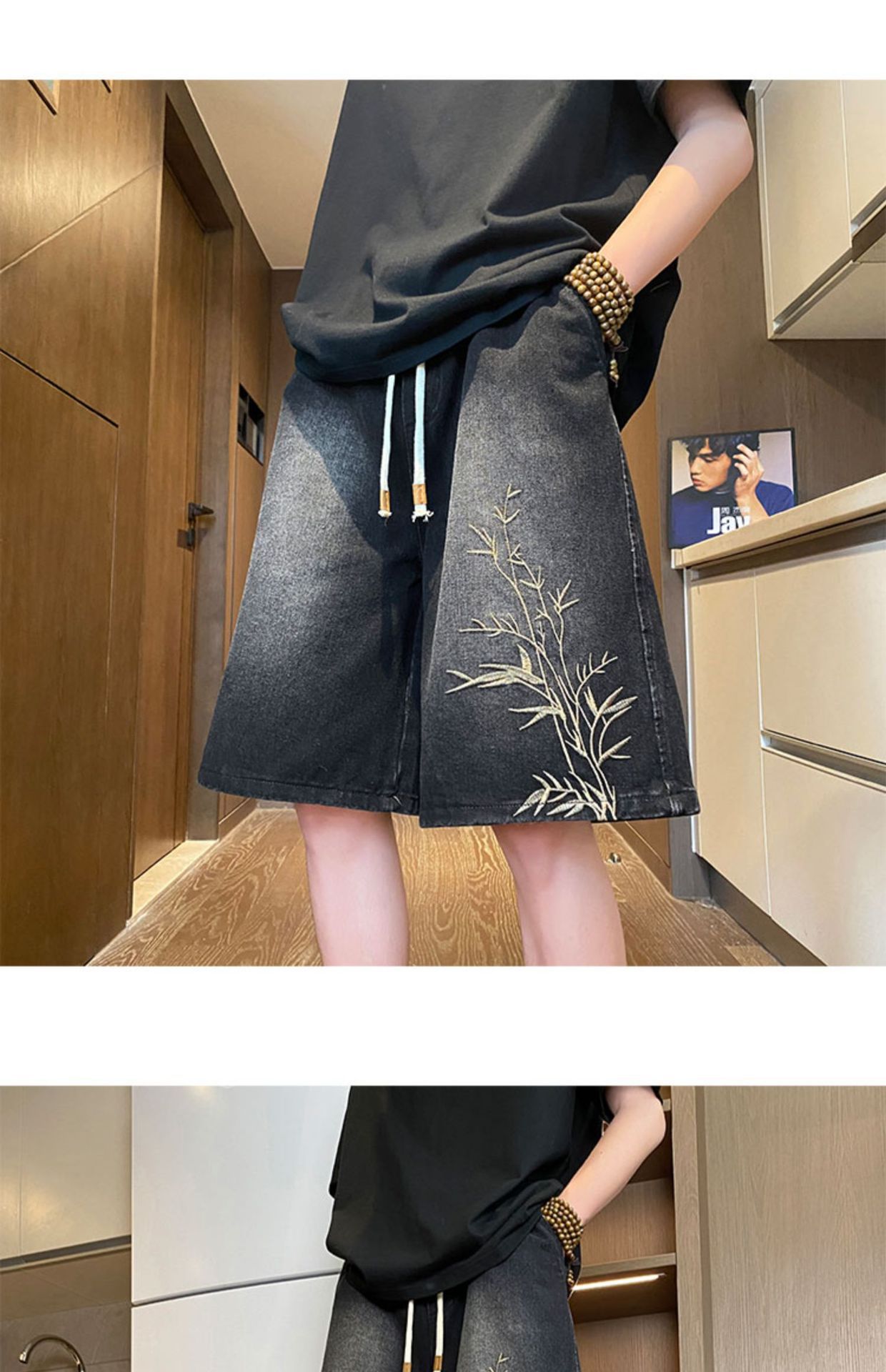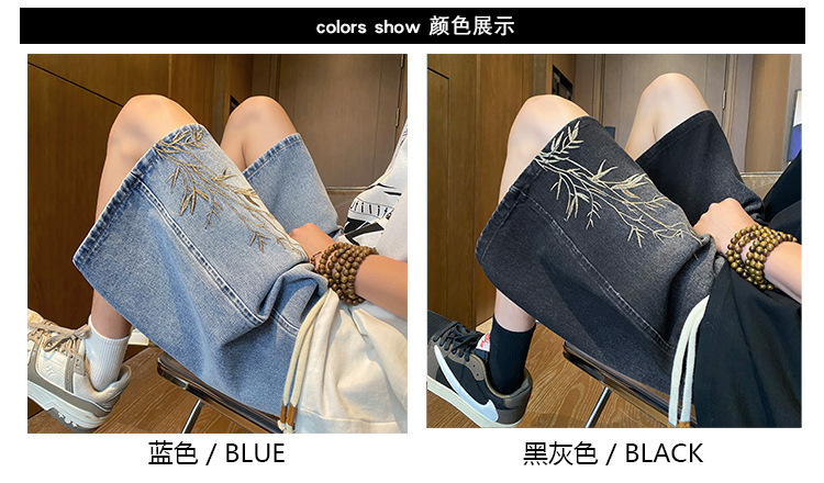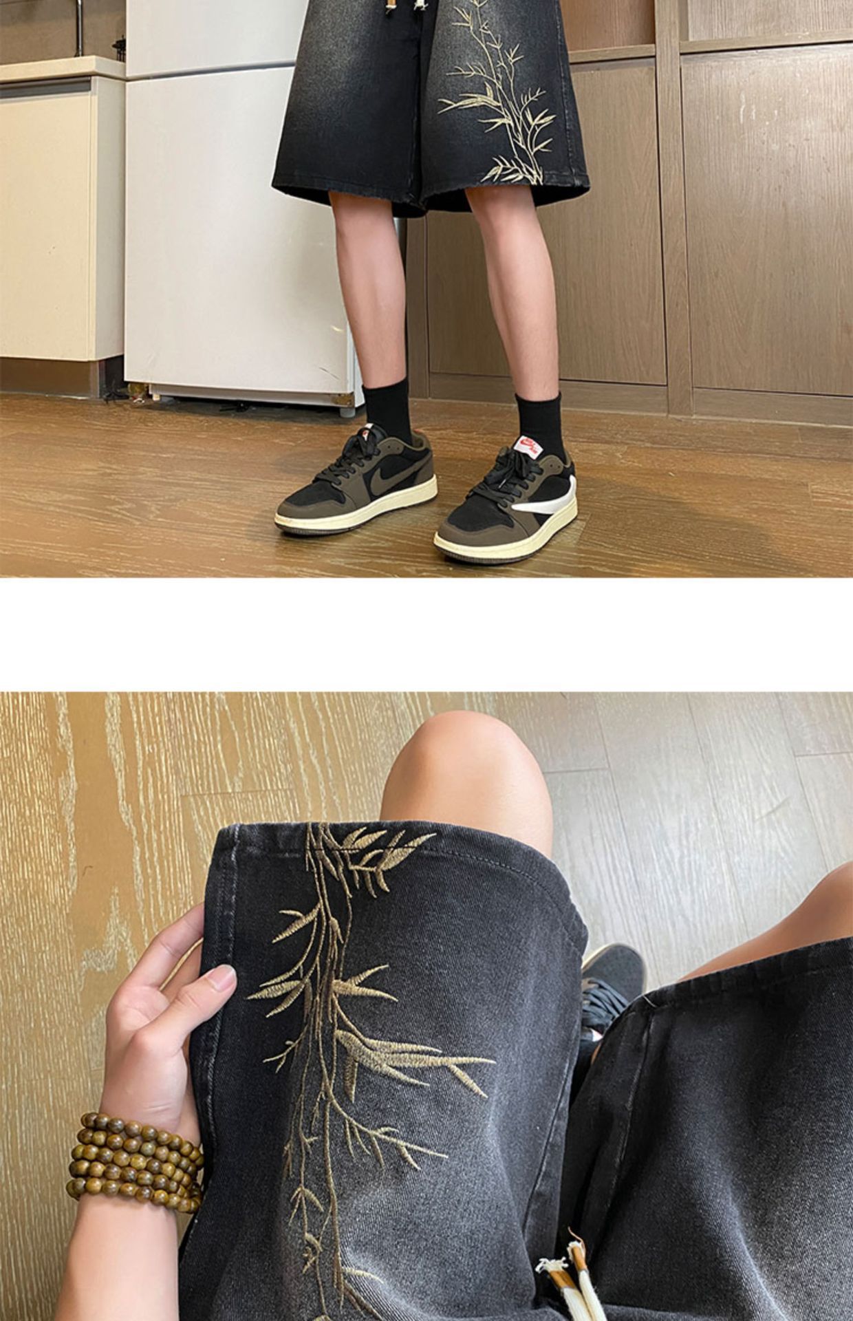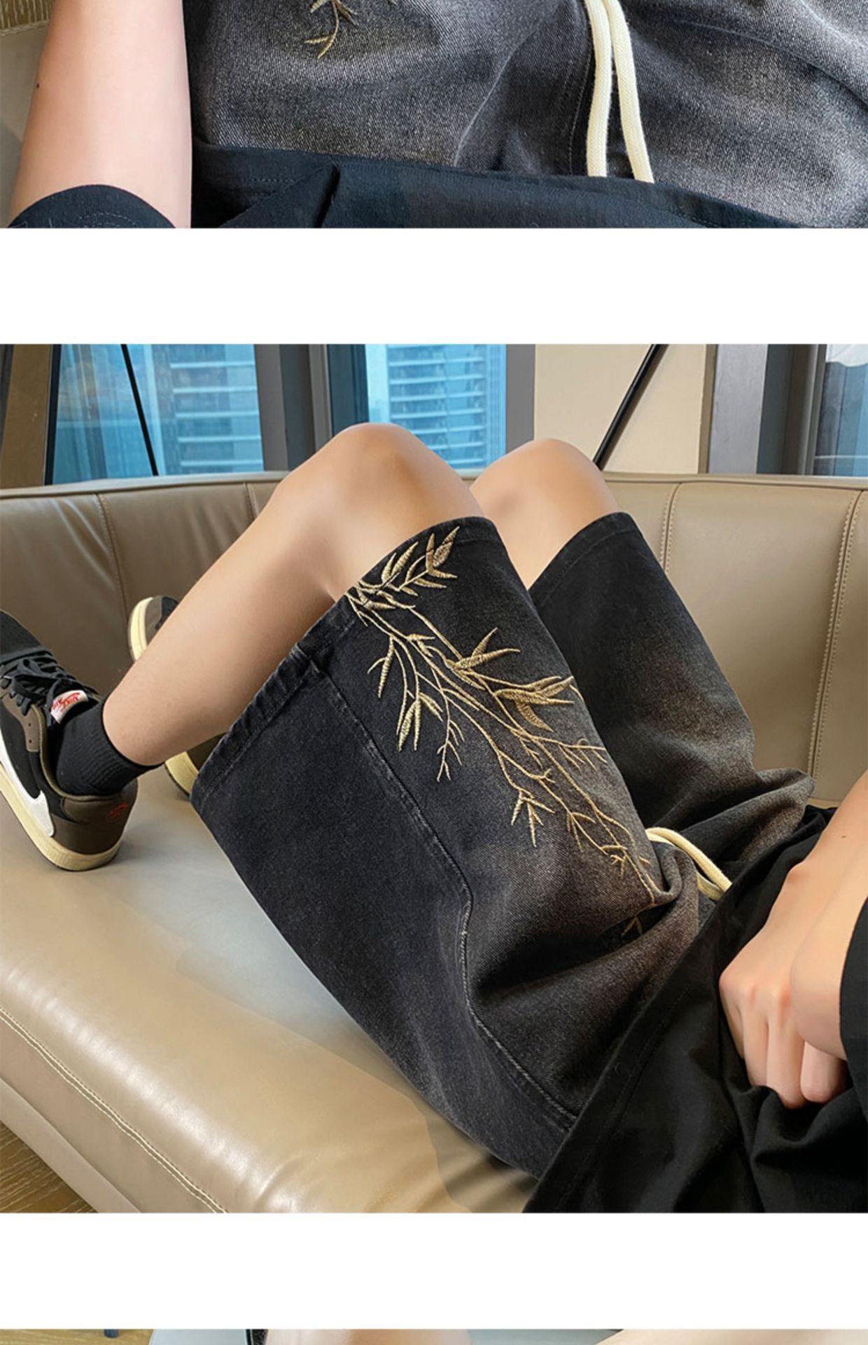 새로운 중국 자수 데님 반바지 남자 여름 얇은 느슨한 빈티지 중간 길이 바지 유행 브랜드 플러스 사이즈 씻은 5 점 바지스토어 가기