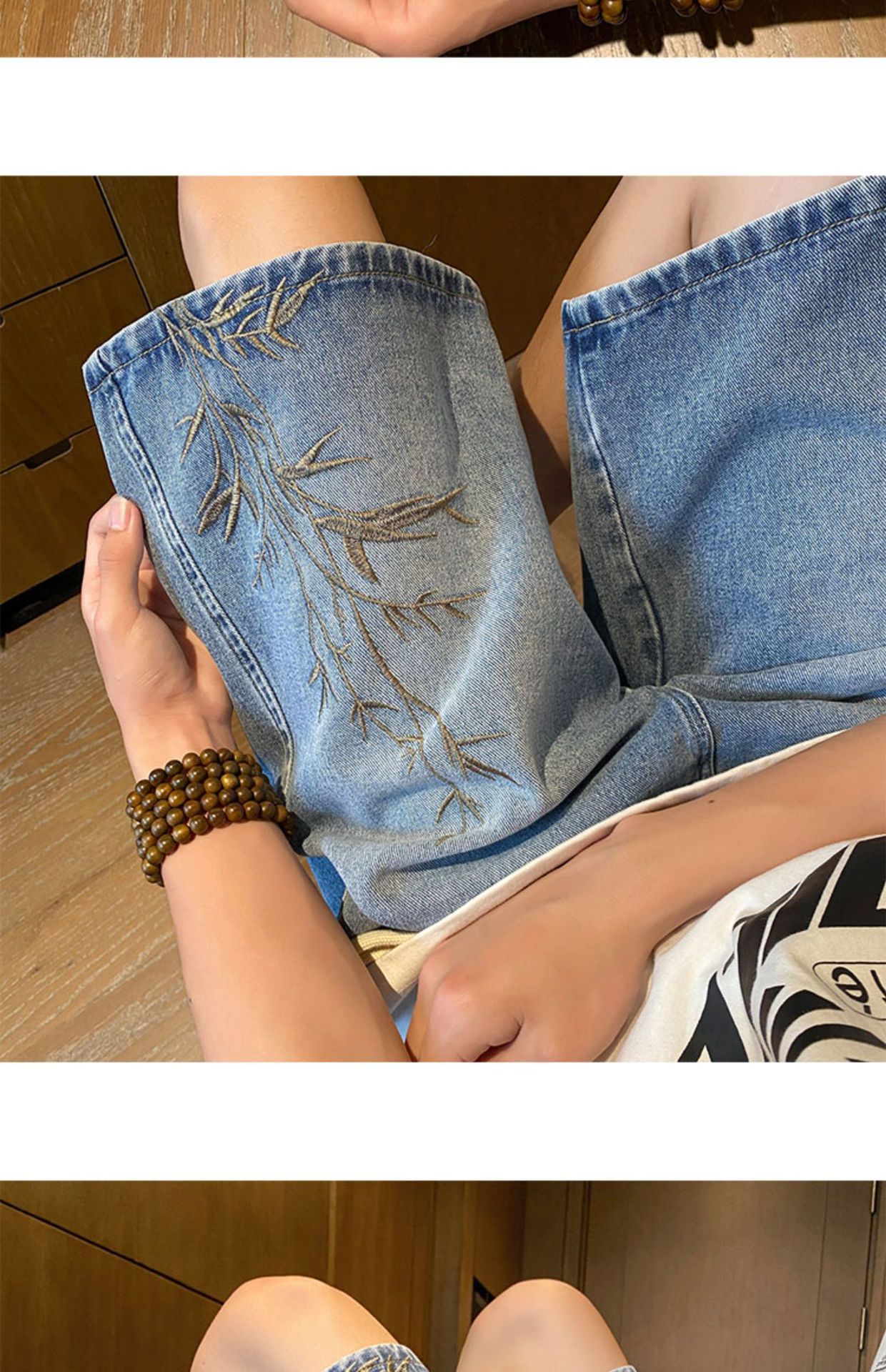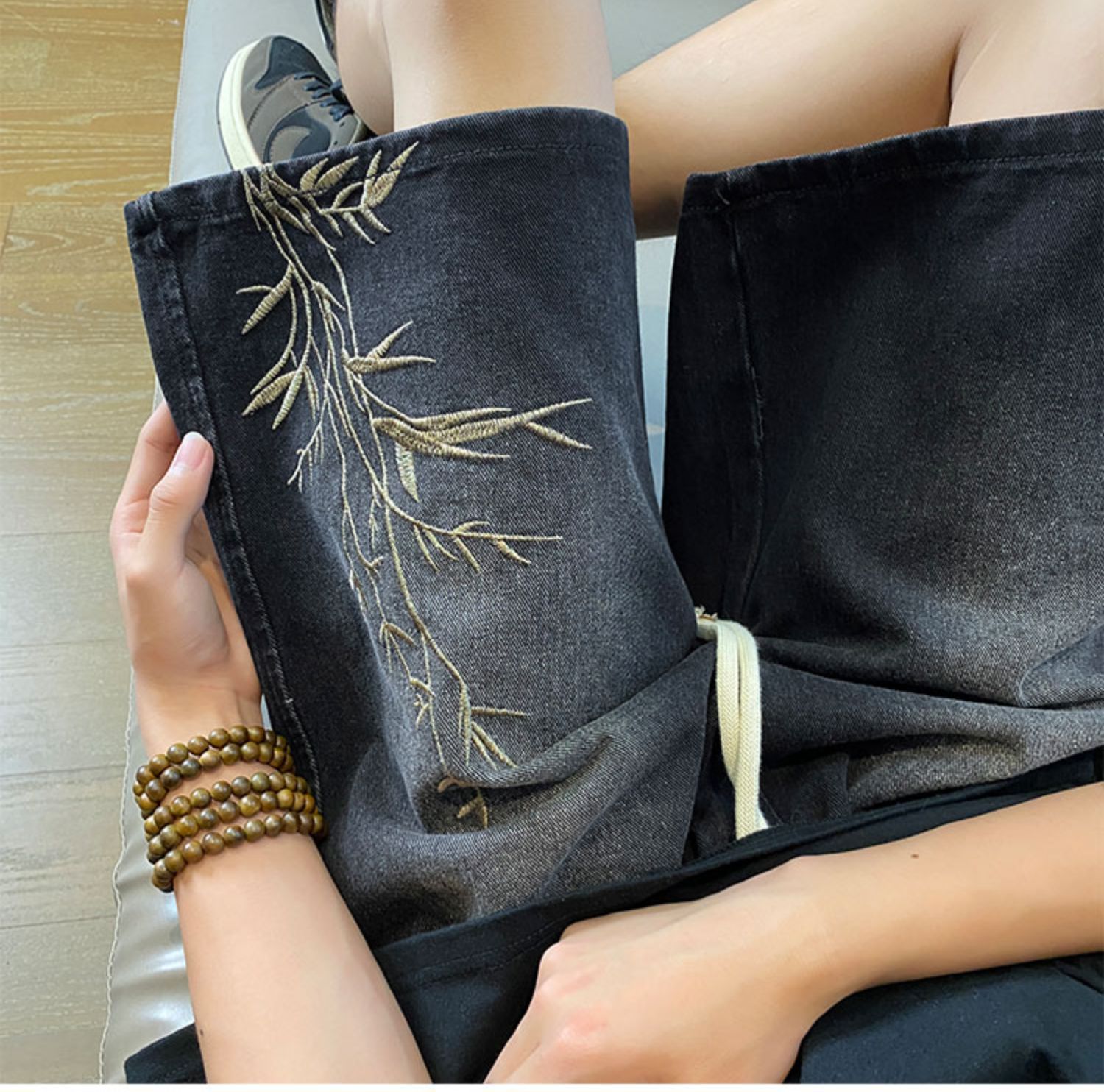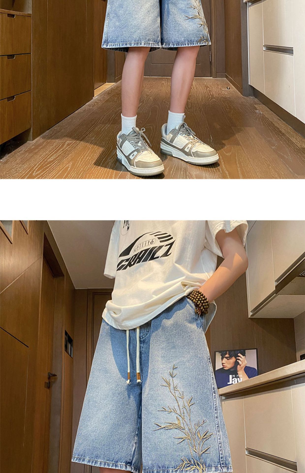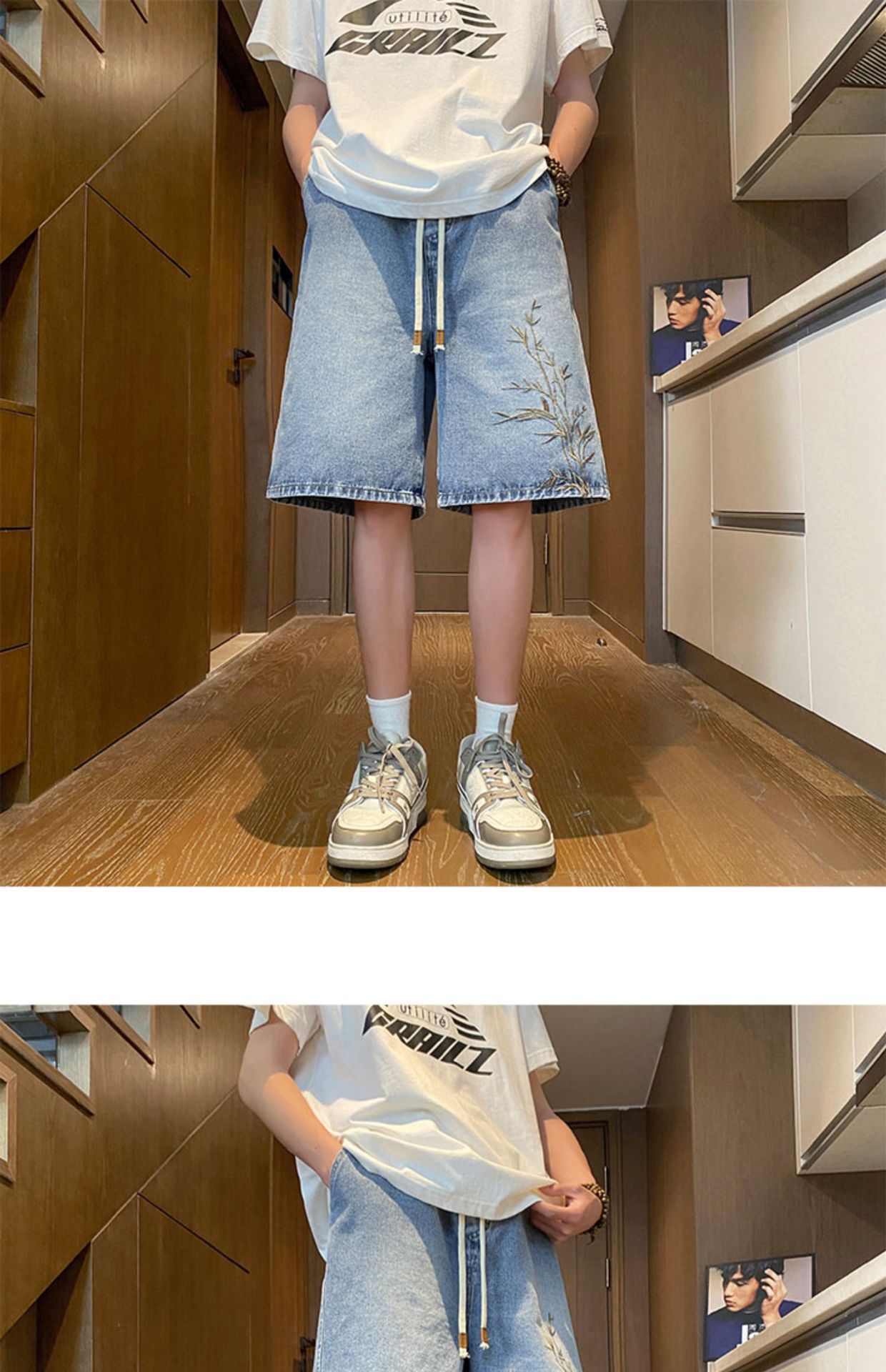 새로운 중국 자수 데님 반바지 남자 여름 얇은 느슨한 빈티지 중간 길이 바지 유행 브랜드 플러스 사이즈 씻은 5 점 바지스토어 가기
