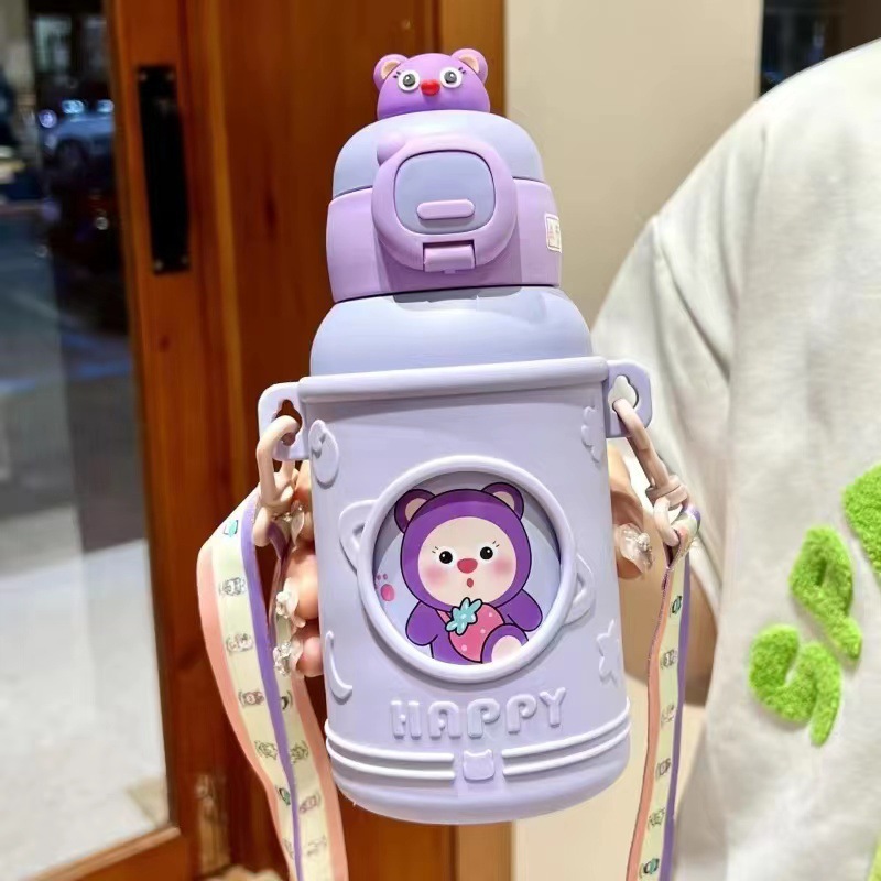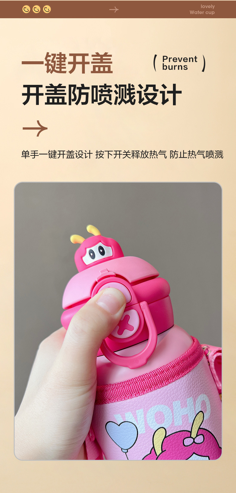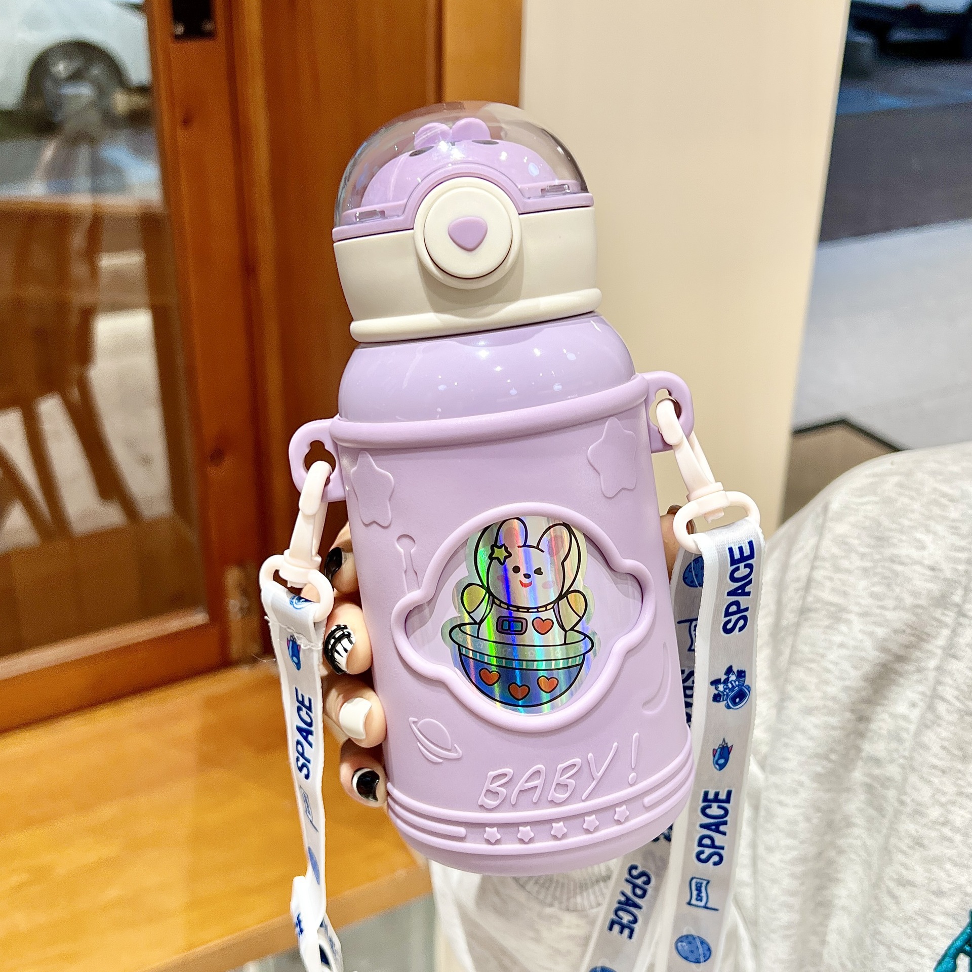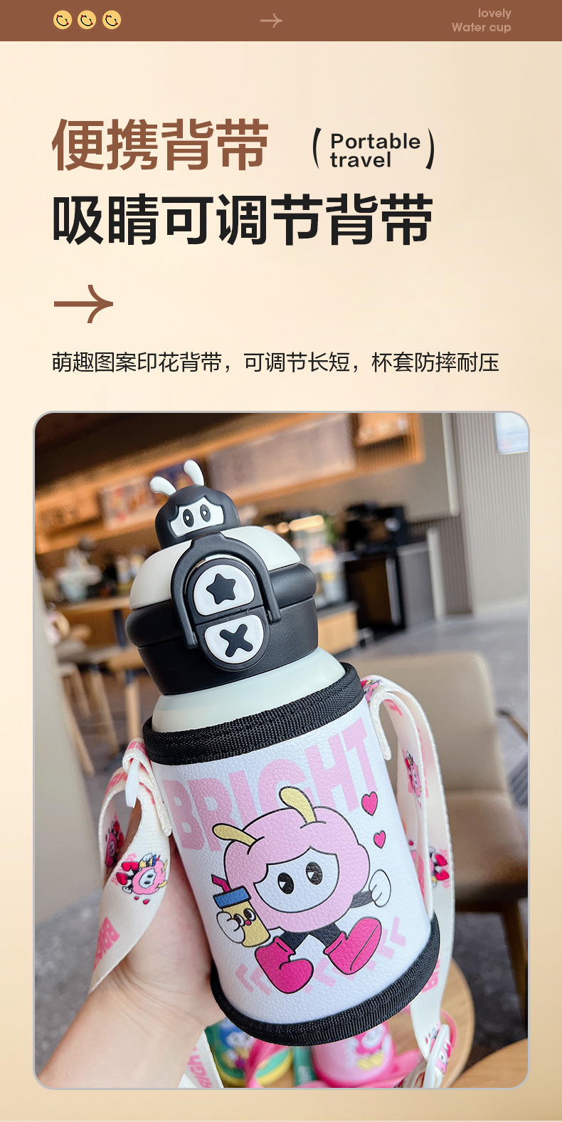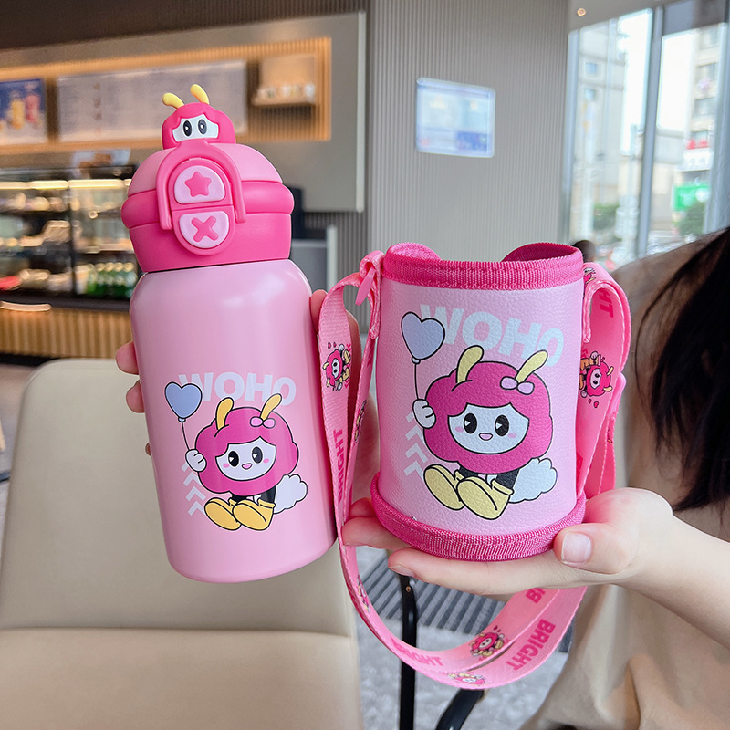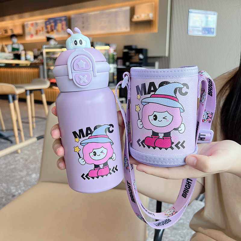 새로운 어린이 보온병 높은 색상 가치 대용량 316 스테인레스 스틸 보온병 컵 스트랩이있는 남녀 휴대용 워터 컵