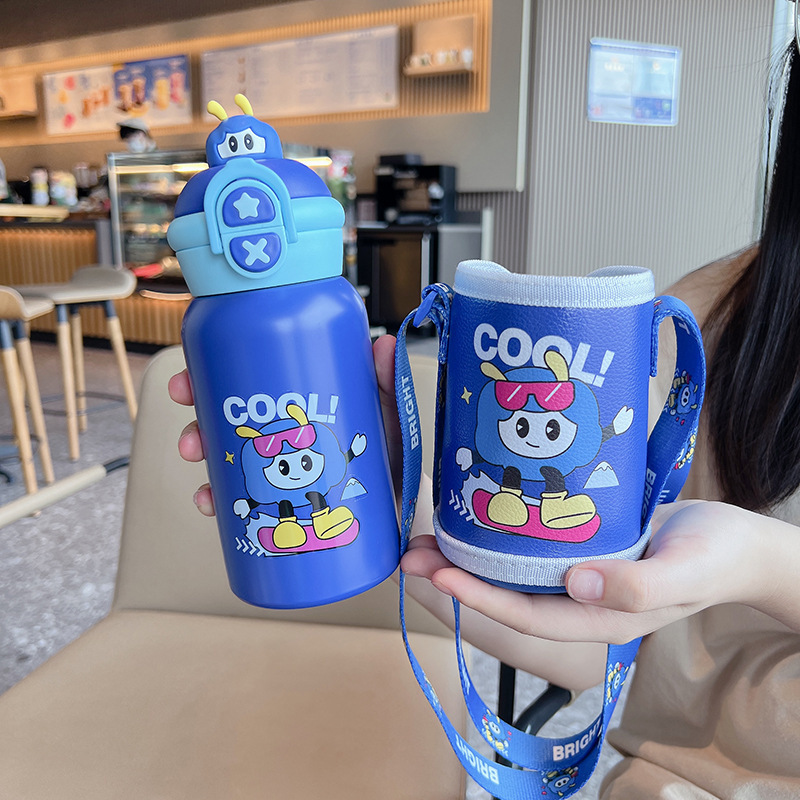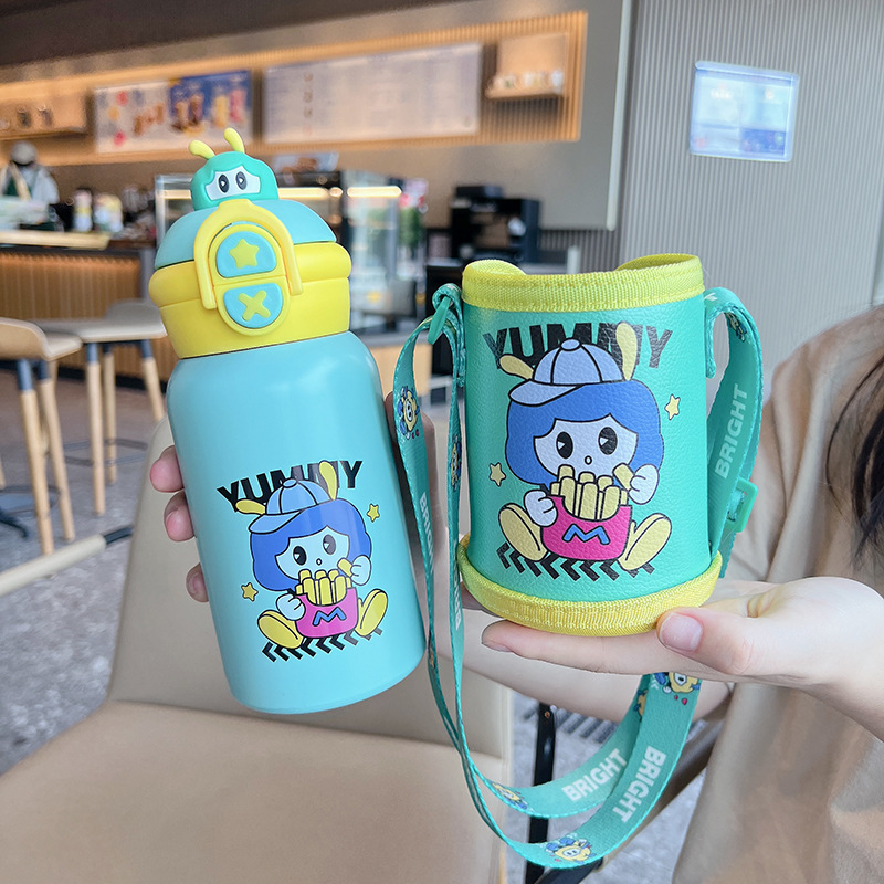 새로운 어린이 보온병 높은 색상 가치 대용량 316 스테인레스 스틸 보온병 컵 스트랩이있는 남녀 휴대용 워터 컵스토어 가기