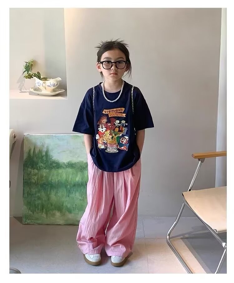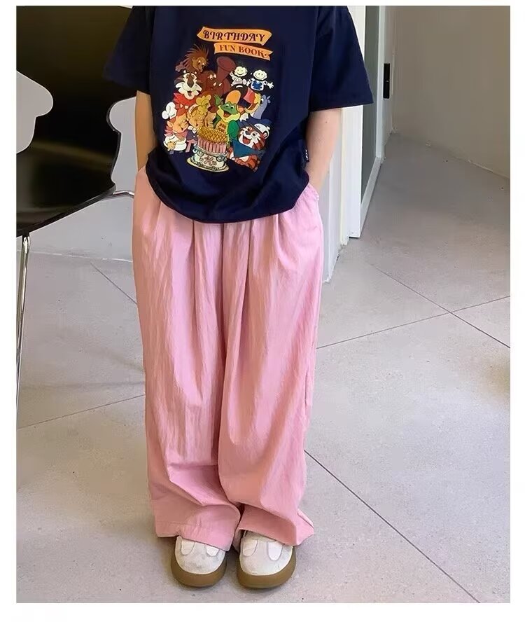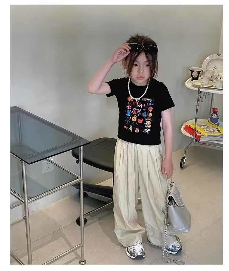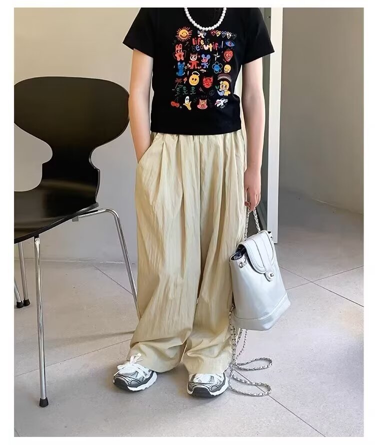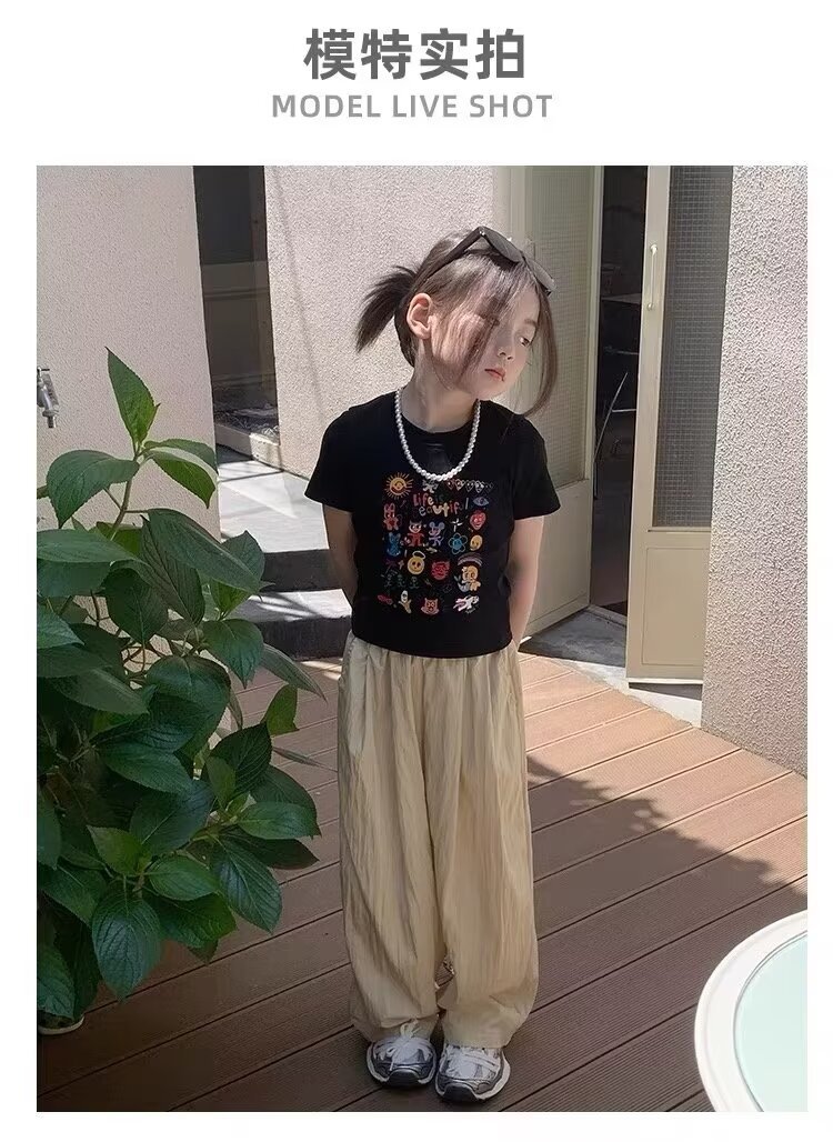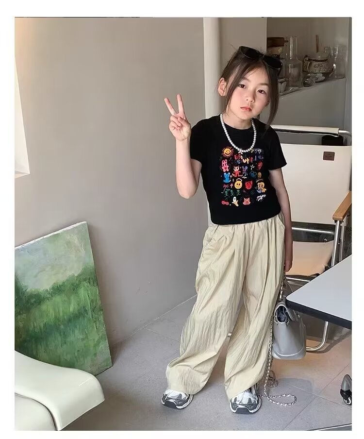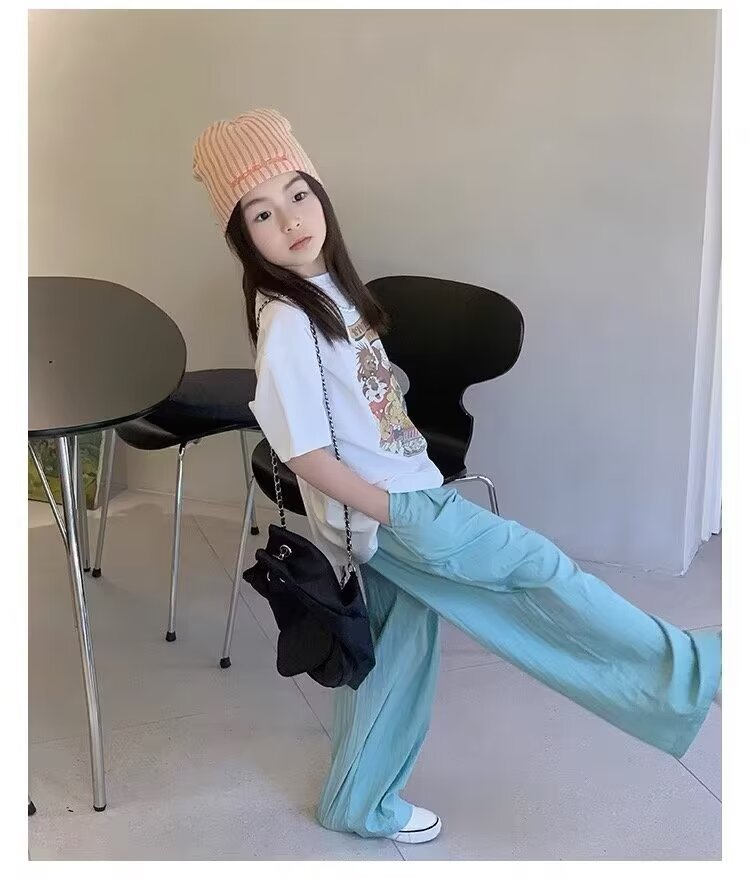 2024 소녀 여름 얇은 넓은 다리 바지 어린이 느슨한 게으른 스타일 캐주얼 바지 어린이 멋진 바지스토어 가기