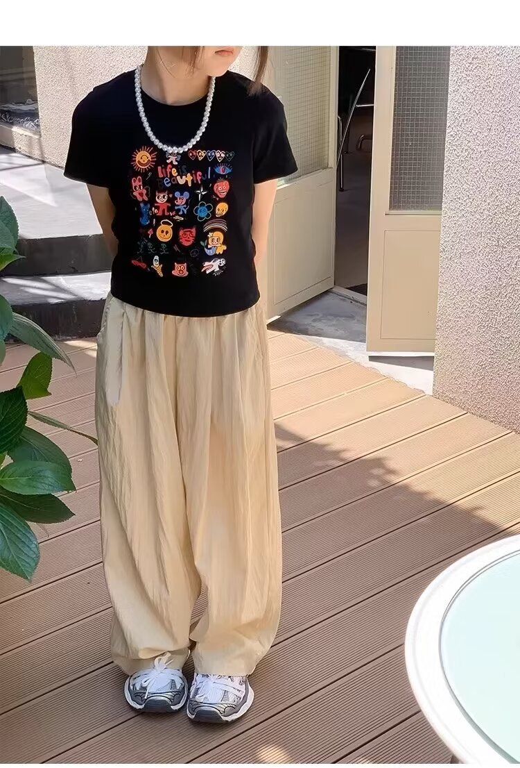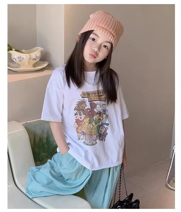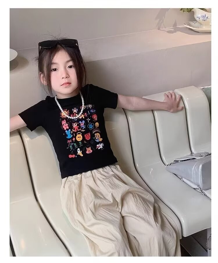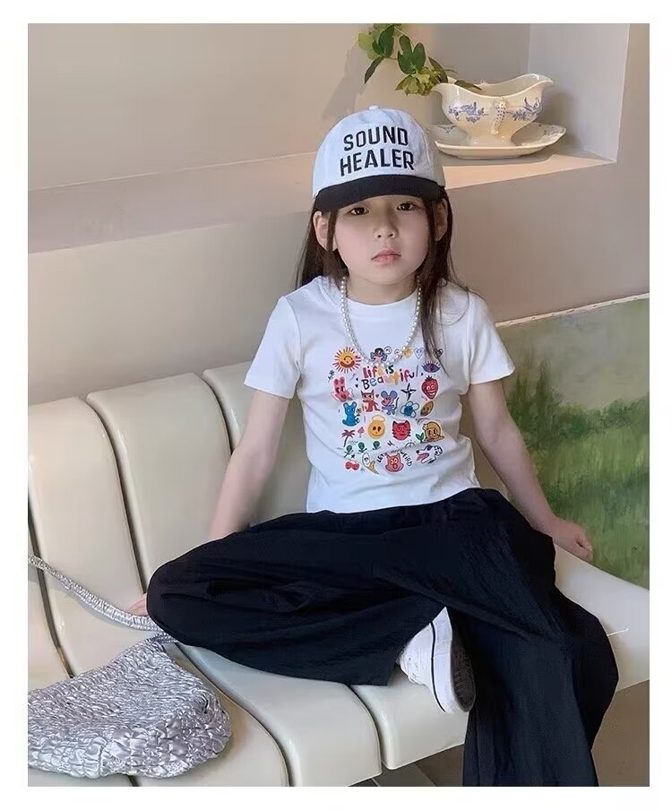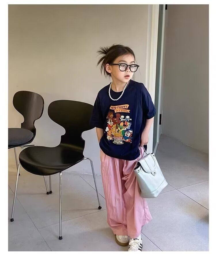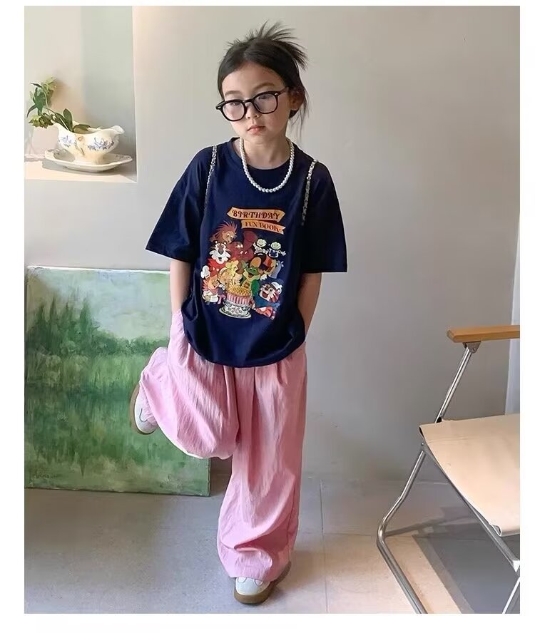 2024 소녀 여름 얇은 넓은 다리 바지 어린이 느슨한 게으른 스타일 캐주얼 바지 어린이 멋진 바지스토어 가기