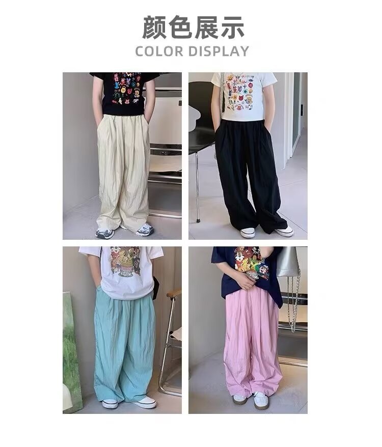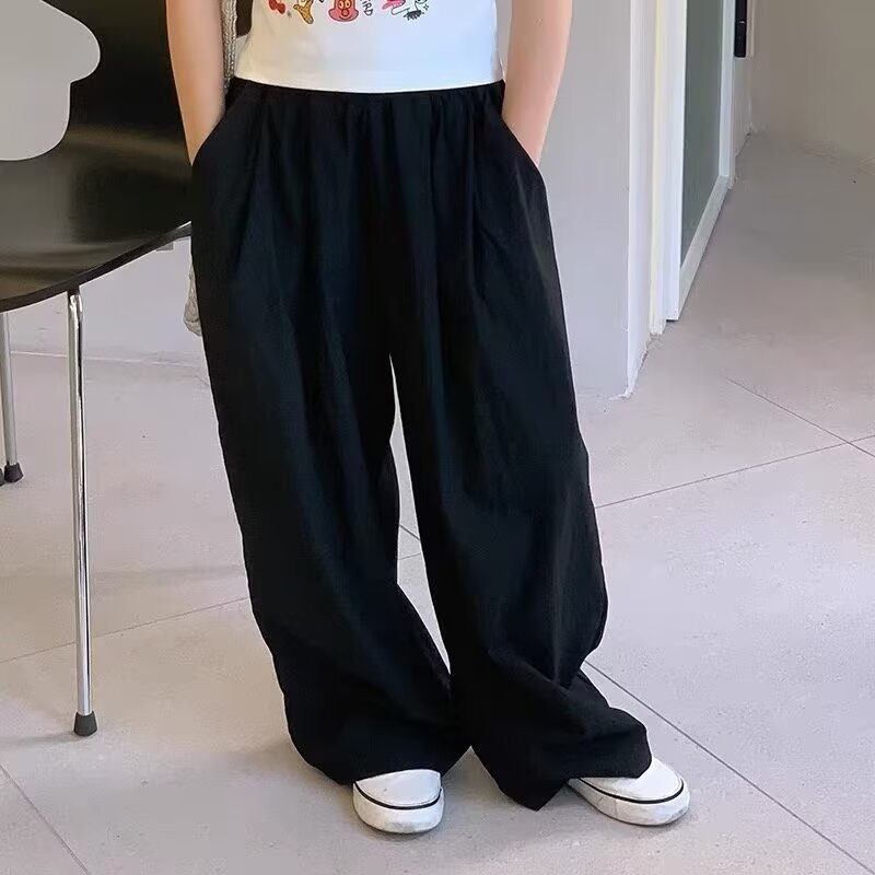 2024 소녀 여름 얇은 넓은 다리 바지 어린이 느슨한 게으른 스타일 캐주얼 바지 어린이 멋진 바지