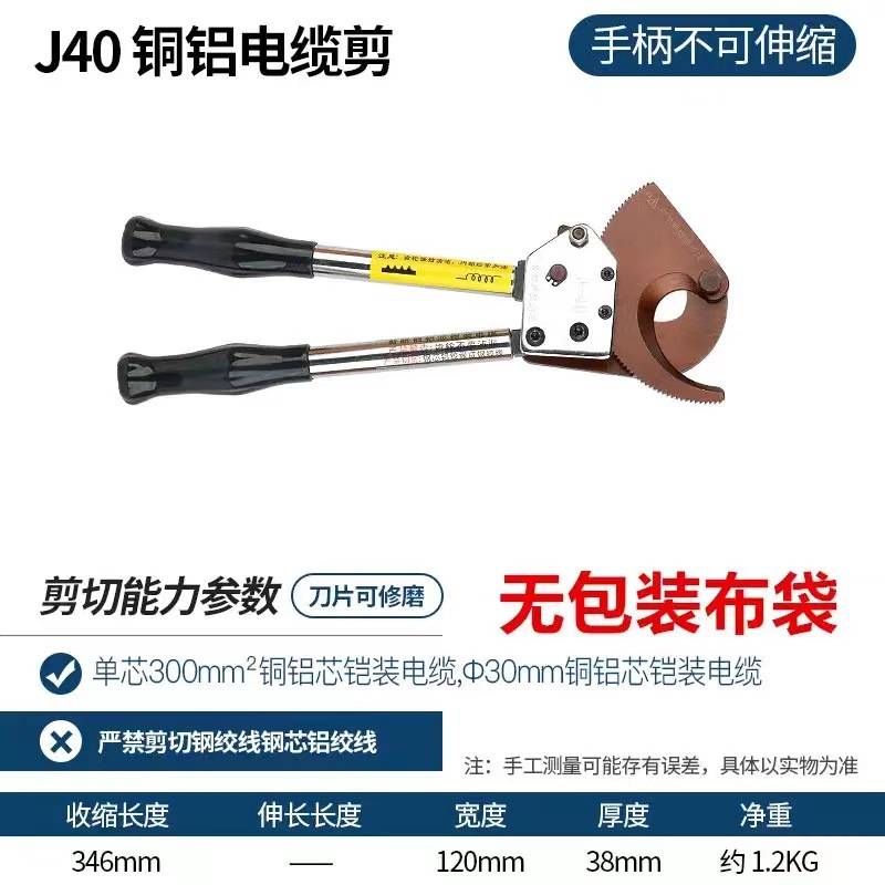 래칫 형 케이블 가위 전기 가위 J40 케이블 가위 7595100 구리 알루미늄 장갑 케이블 가위 깨진 와이어 가위