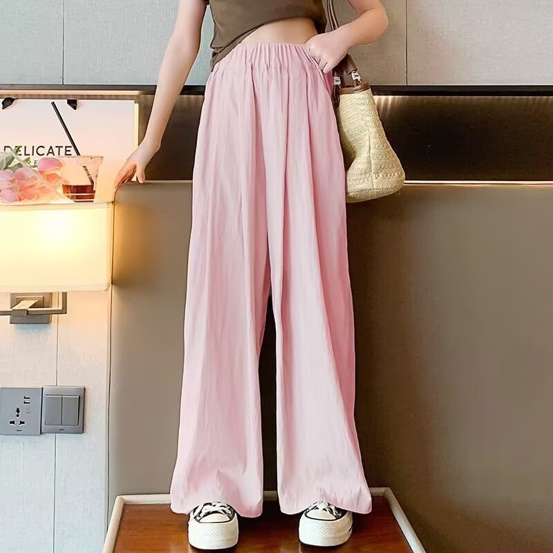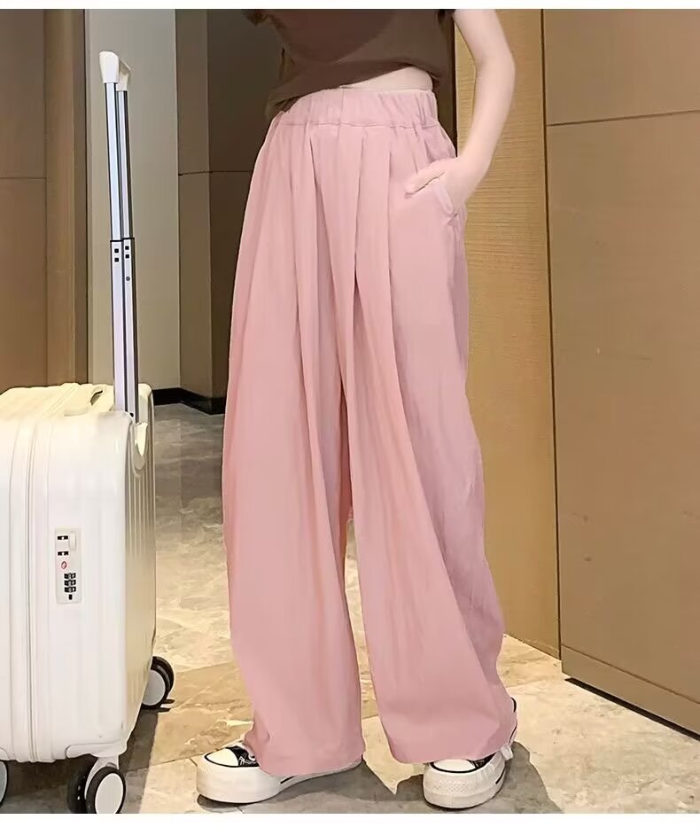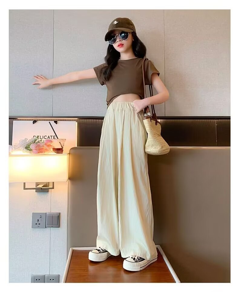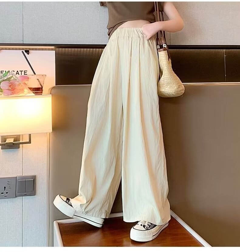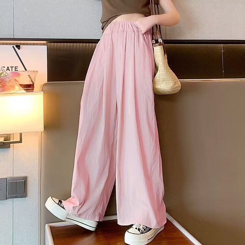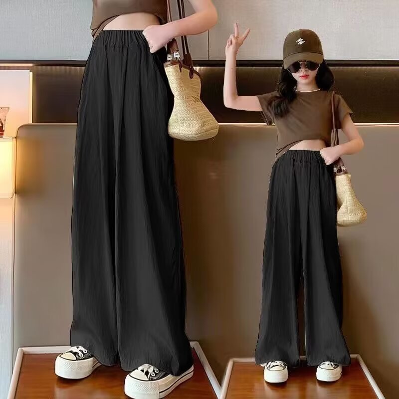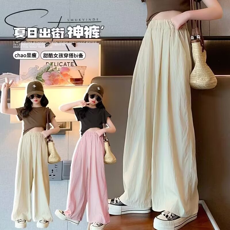 2024 소녀 여름 얇은 넓은 다리 바지 어린이 느슨한 게으른 스타일 캐주얼 바지 어린이 멋진 바지