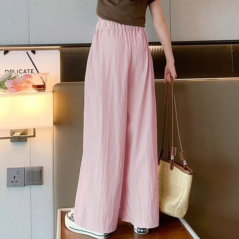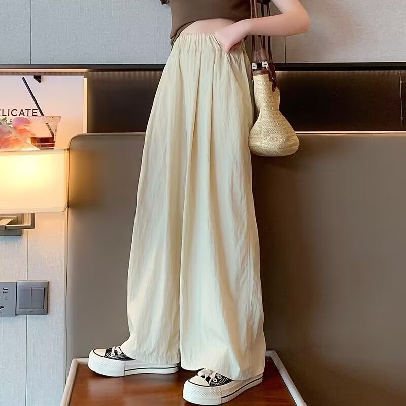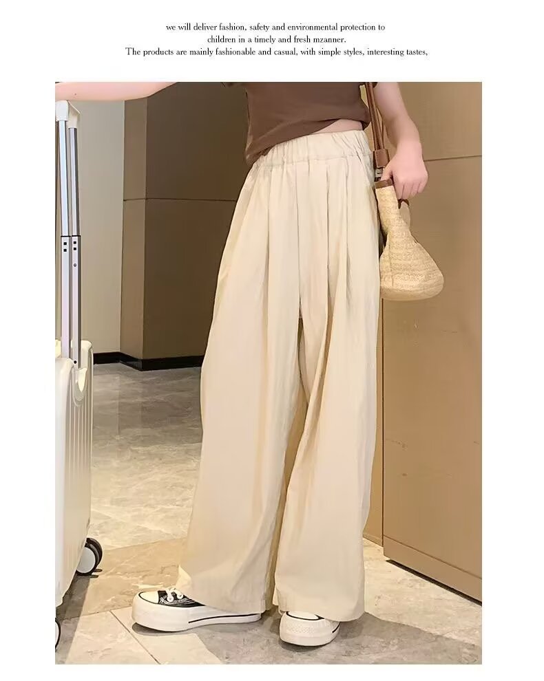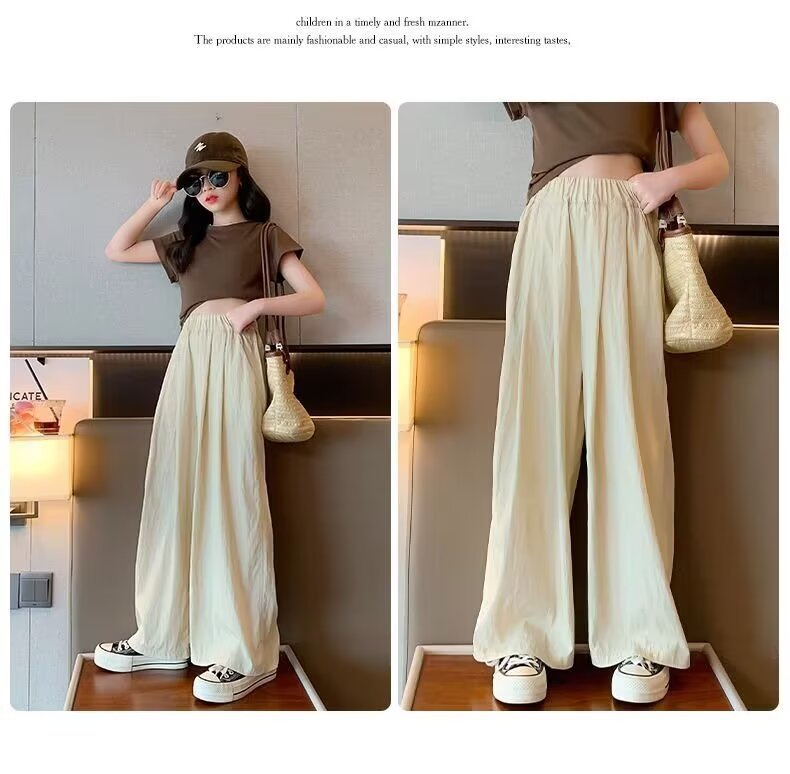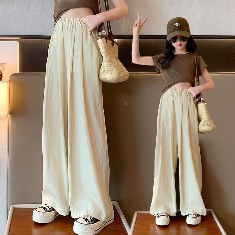 2024 소녀 여름 얇은 넓은 다리 바지 어린이 느슨한 게으른 스타일 캐주얼 바지 어린이 멋진 바지스토어 가기