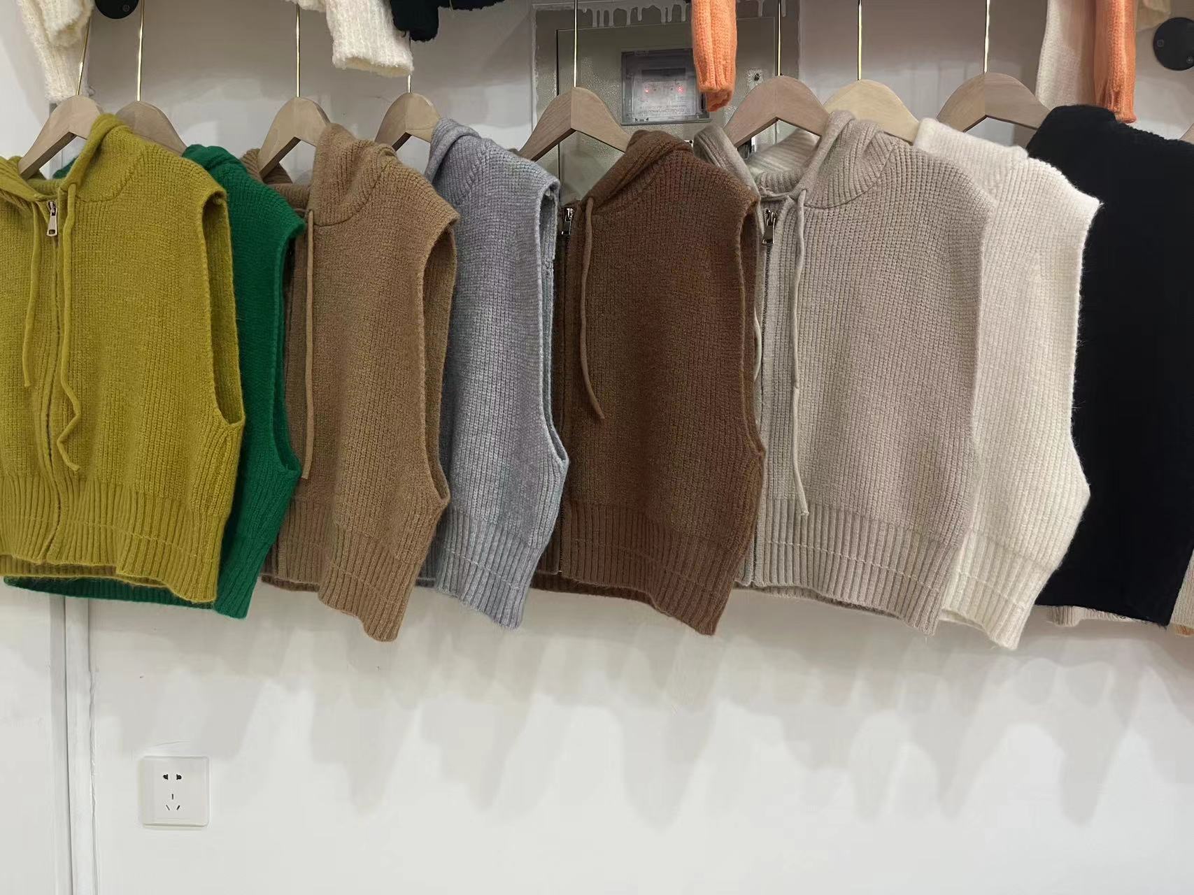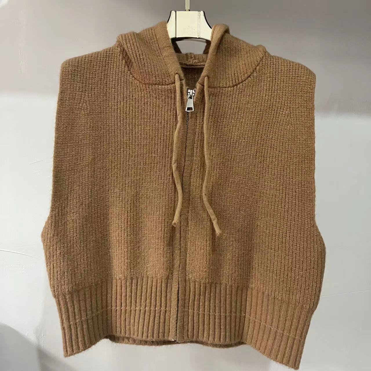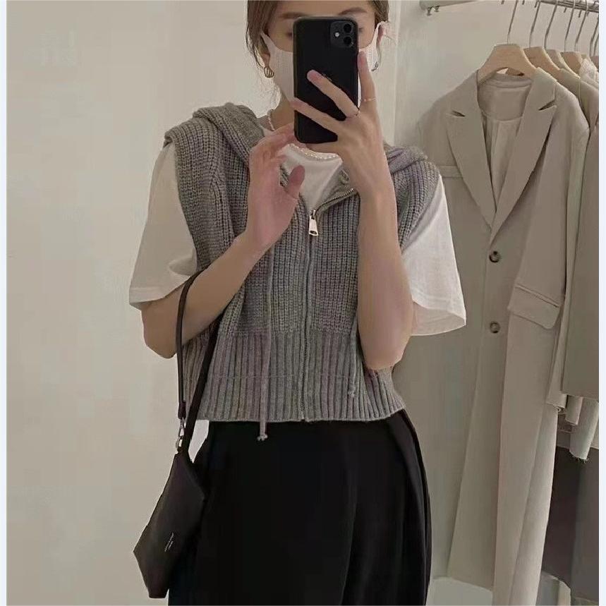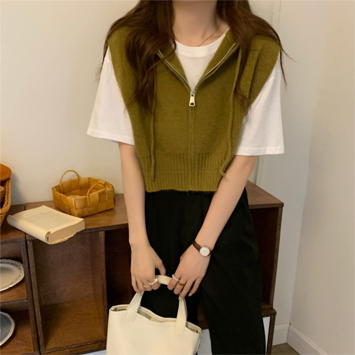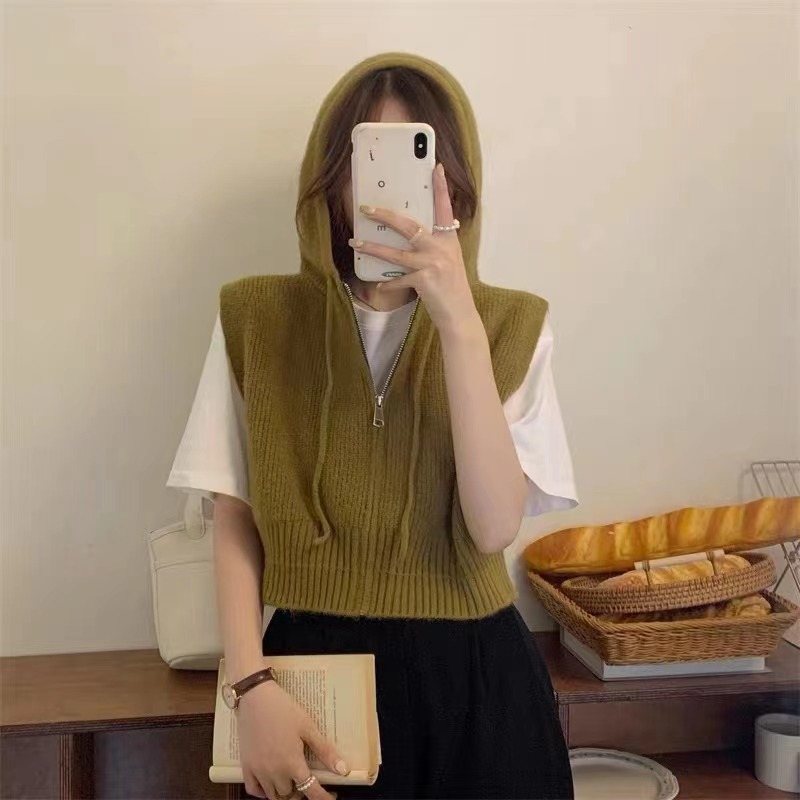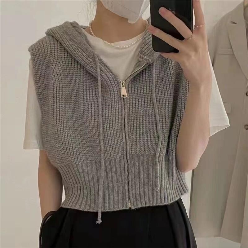 짧은 단색 지퍼 Drawstring Hoodie Cross-border 여성용 캐주얼 조커 후드 조끼 재킷 여성의 봄과 가을스토어 가기