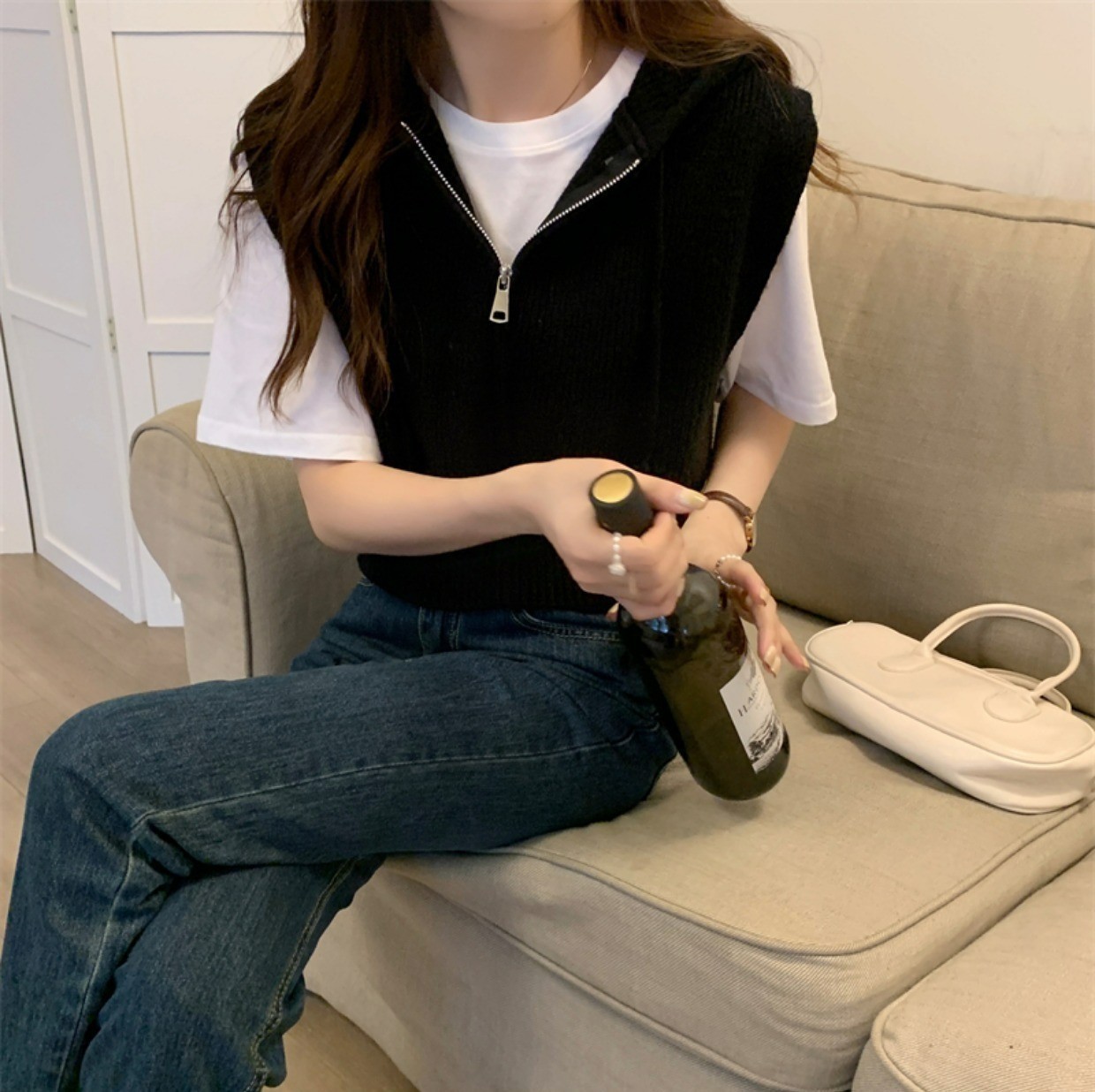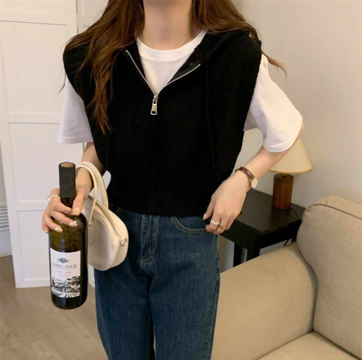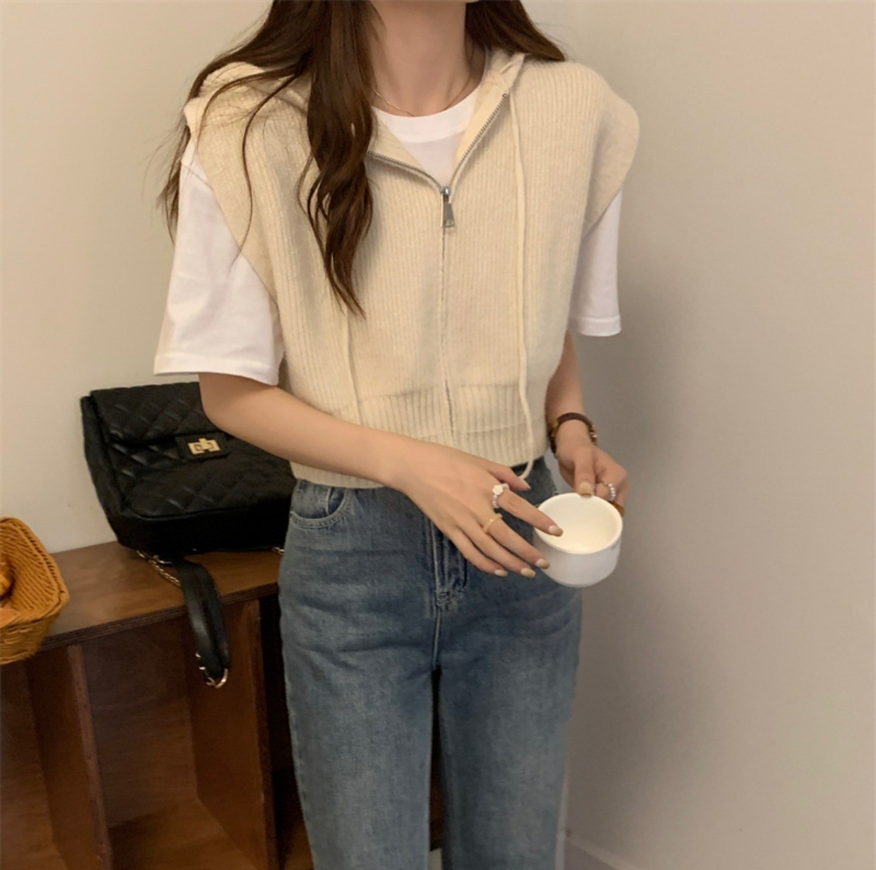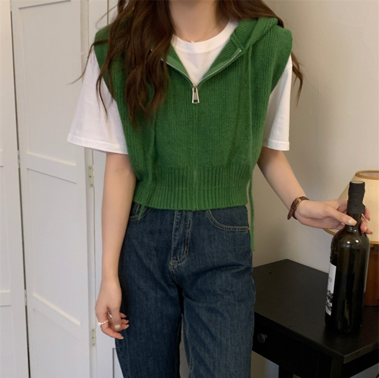 짧은 단색 지퍼 Drawstring Hoodie Cross-border 여성용 캐주얼 조커 후드 조끼 재킷 여성의 봄과 가을스토어 가기