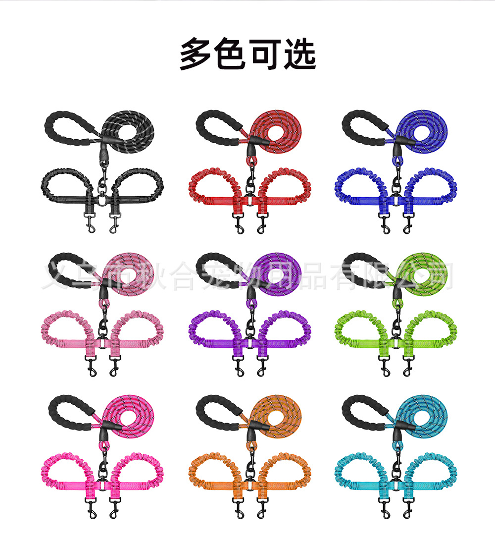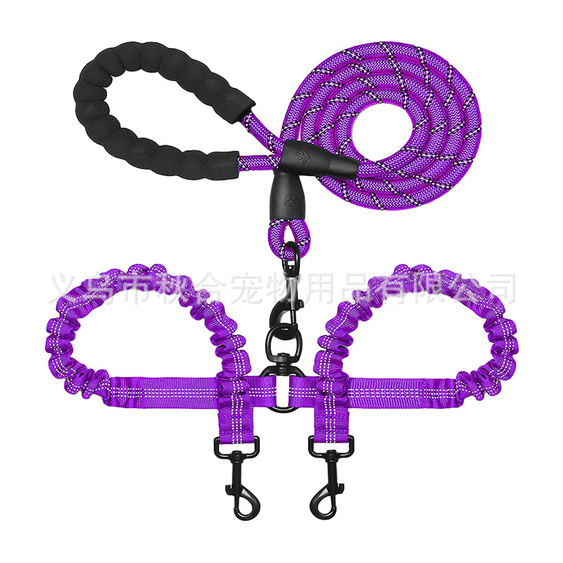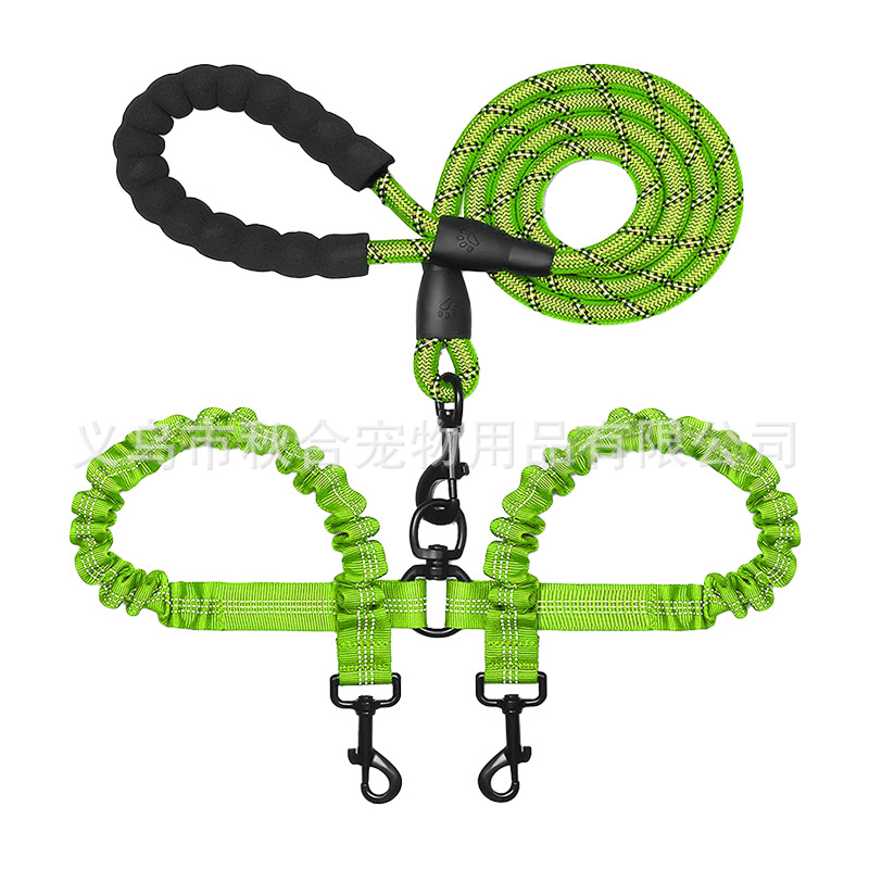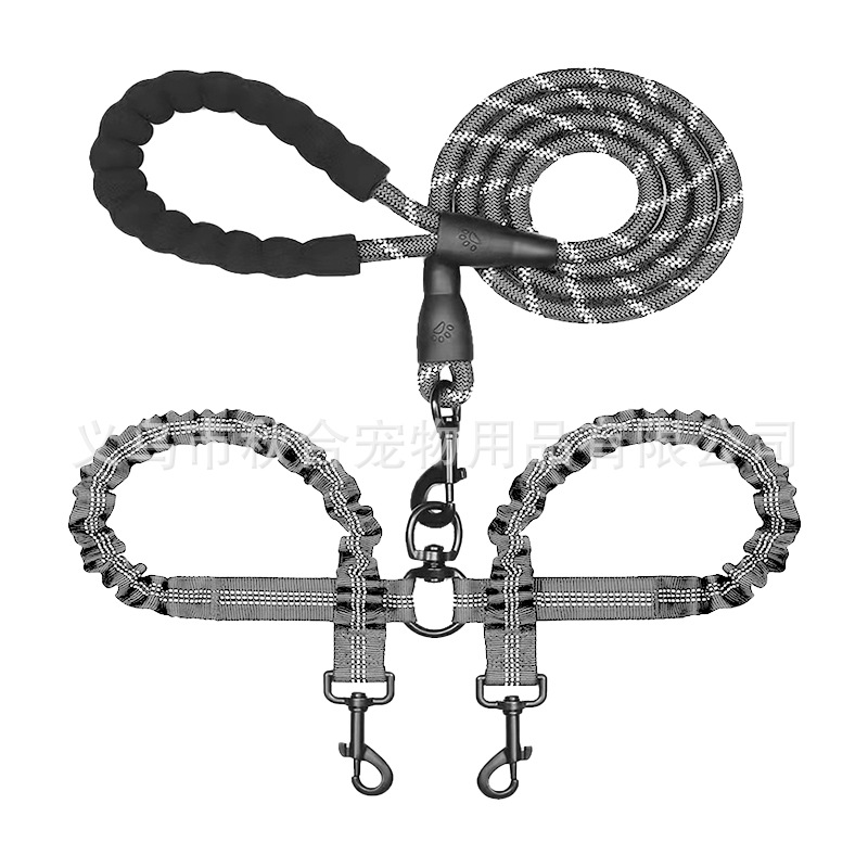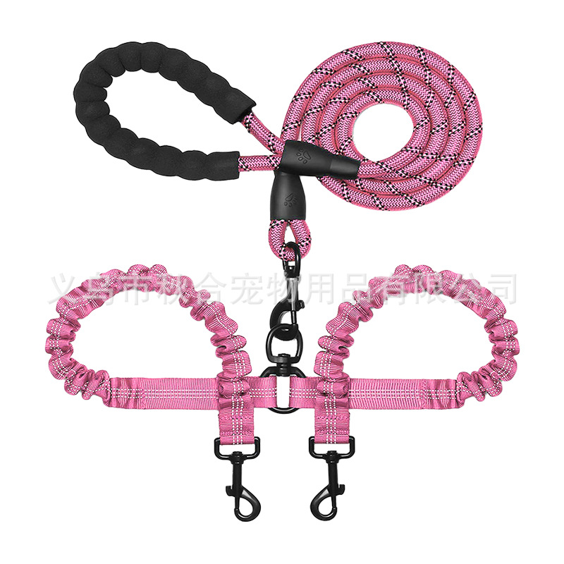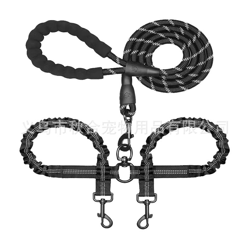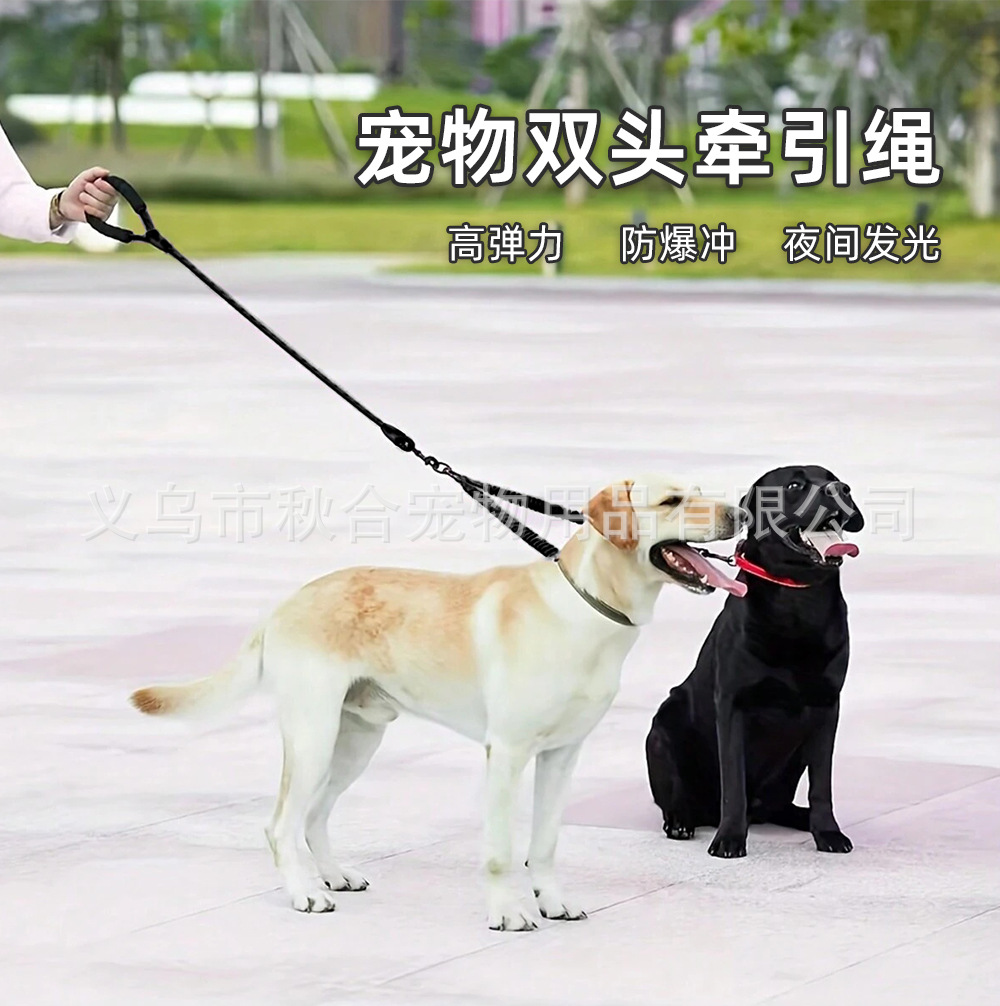 아마존 뜨거운 판매 양두 애완 동물 견인 밧줄 중형 및 대형 개 밧줄 개 걷는 밧줄 폭발 방지 반사 높은 탄성스토어 가기