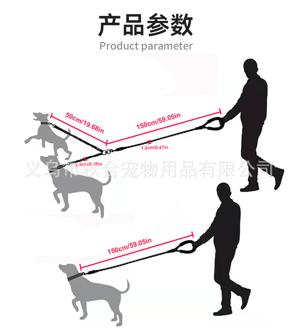 아마존 뜨거운 판매 양두 애완 동물 견인 밧줄 중형 및 대형 개 밧줄 개 걷는 밧줄 폭발 방지 반사 높은 탄성