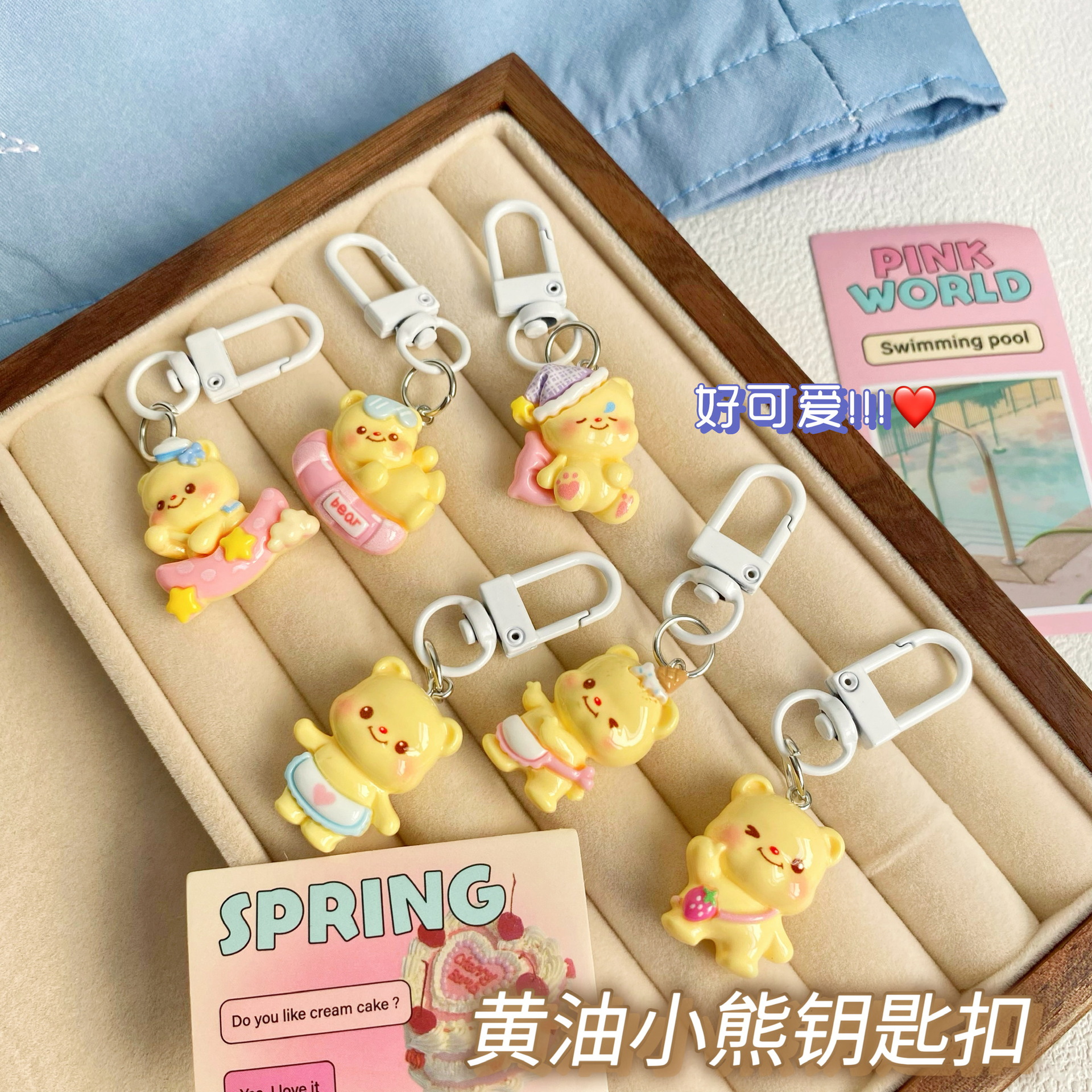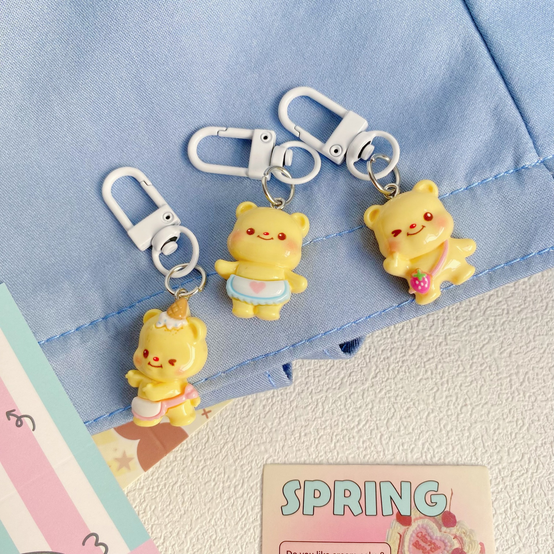 귀여운 놀이 작은 노란 곰 키 체인 소녀 학생 키 체인 소녀 Schoolbag 최고의 친구 선물 펜던트 액세서리스토어 가기
