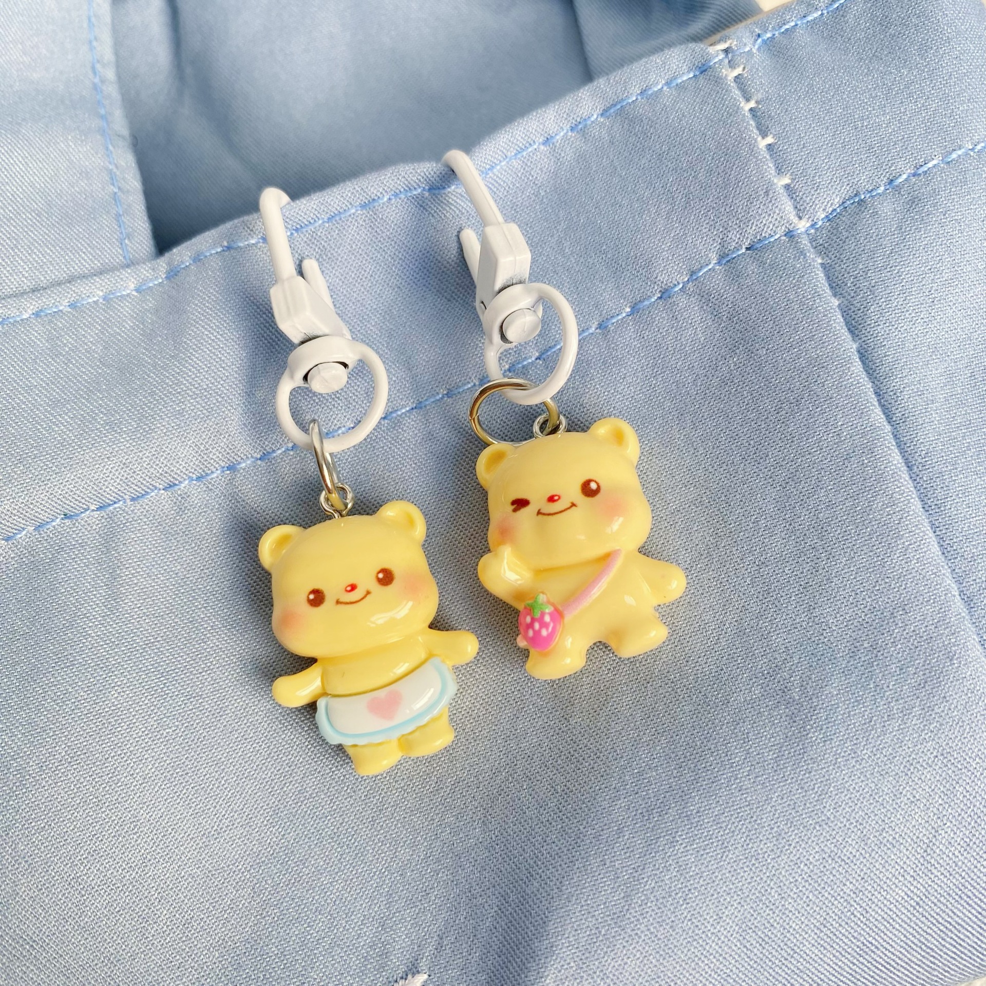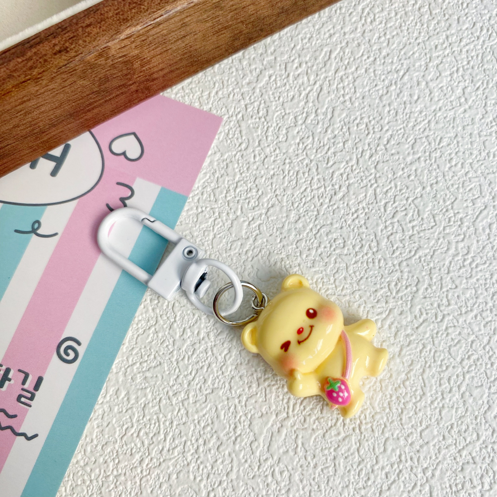 • 플레이 작은 노란색 곰 키 체인 "딸기 가방]