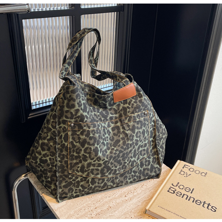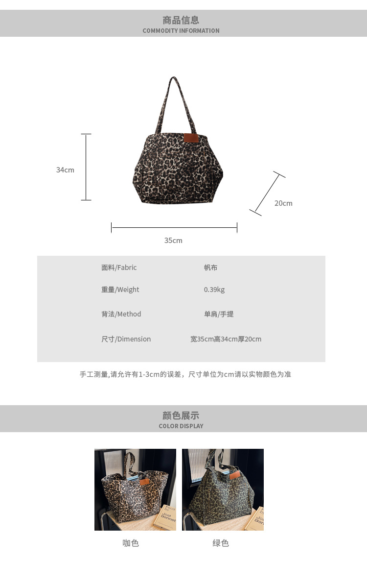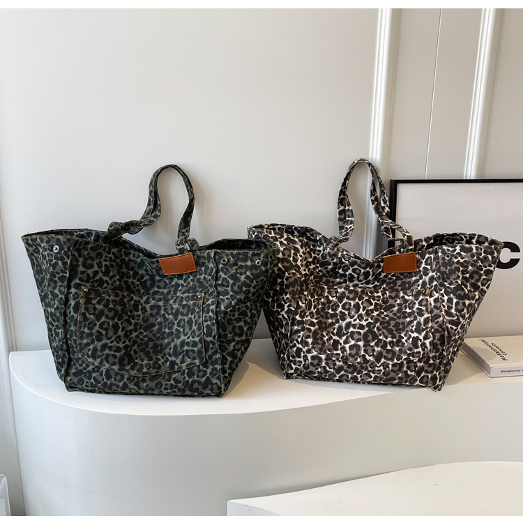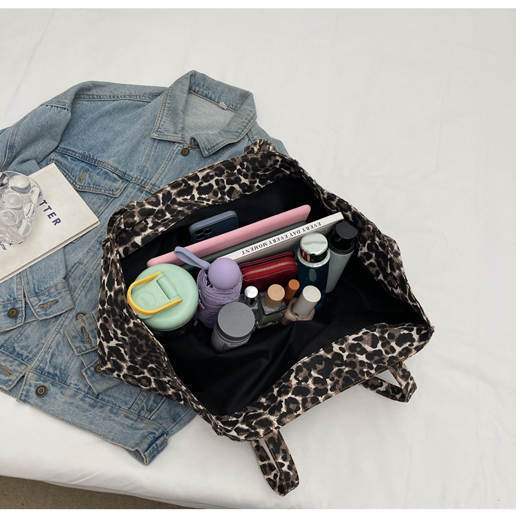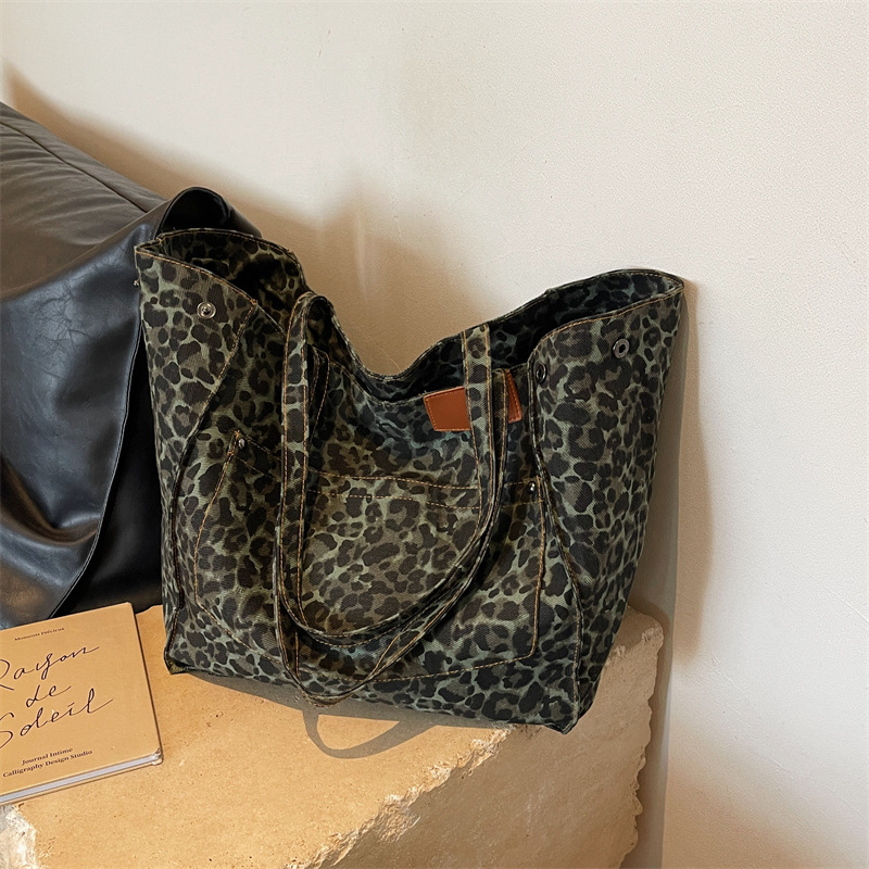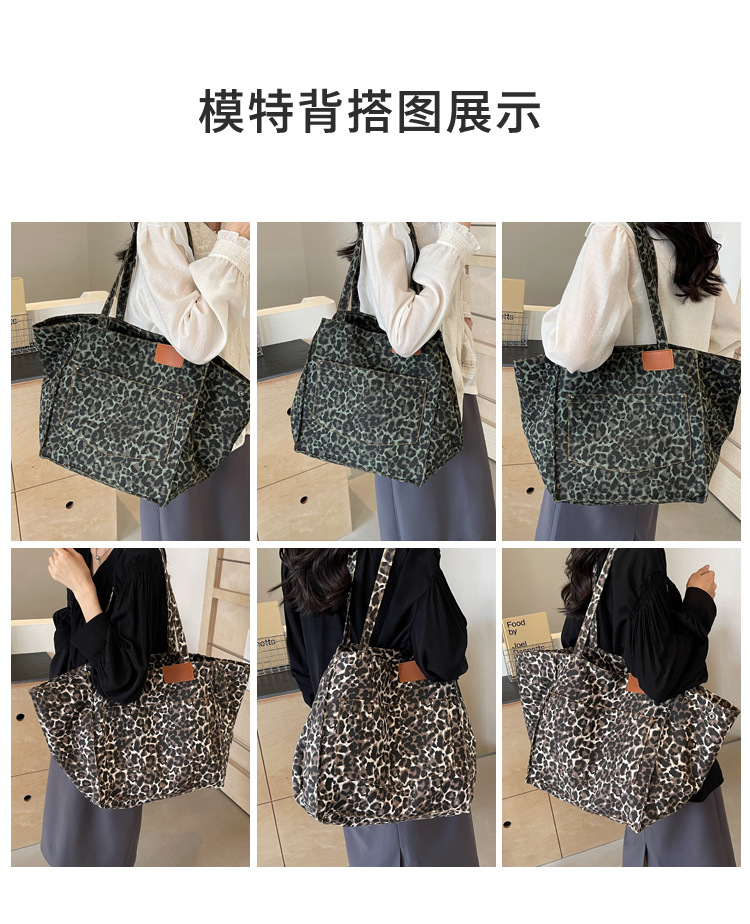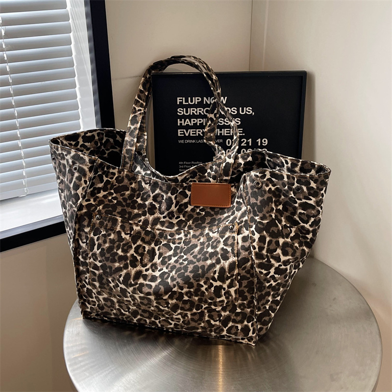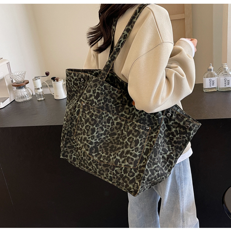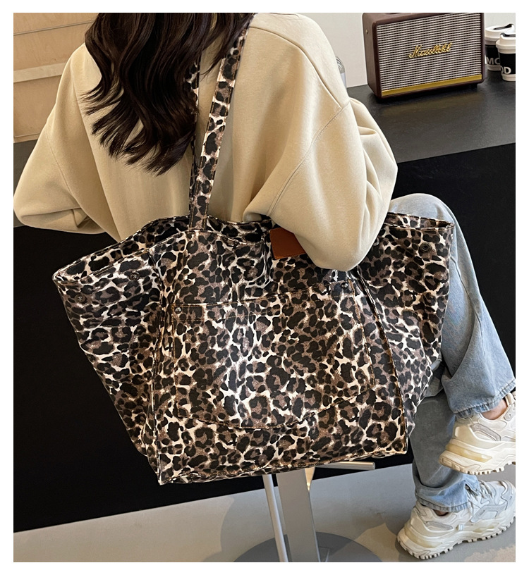 레오파드 무늬 캔버스 토트 백 여성 대용량 가방 2024 새로운 국경 대외 무역 휴대용 통근 어깨 미라 가방스토어 가기