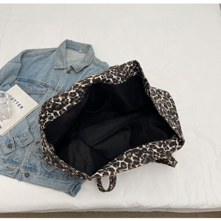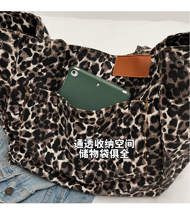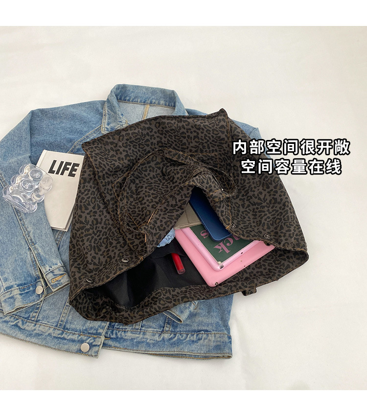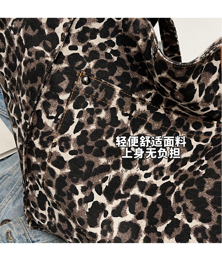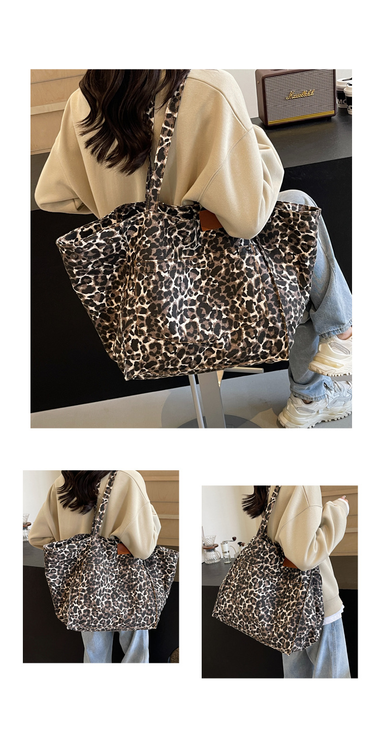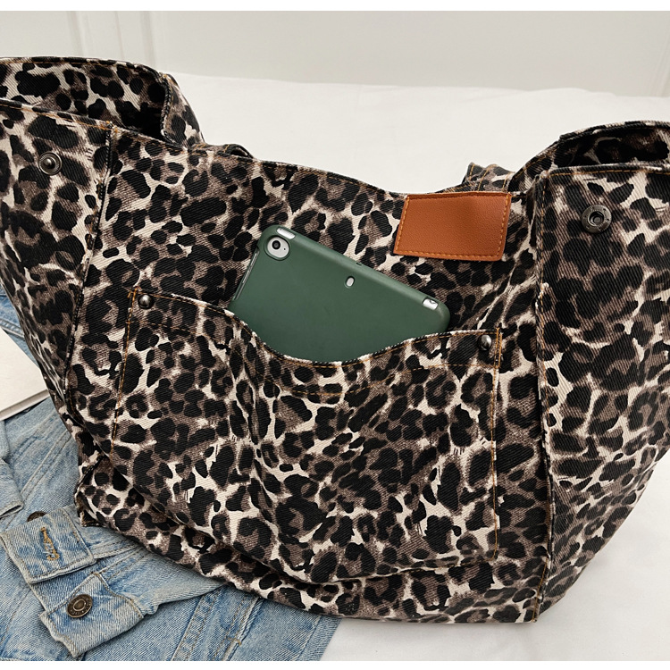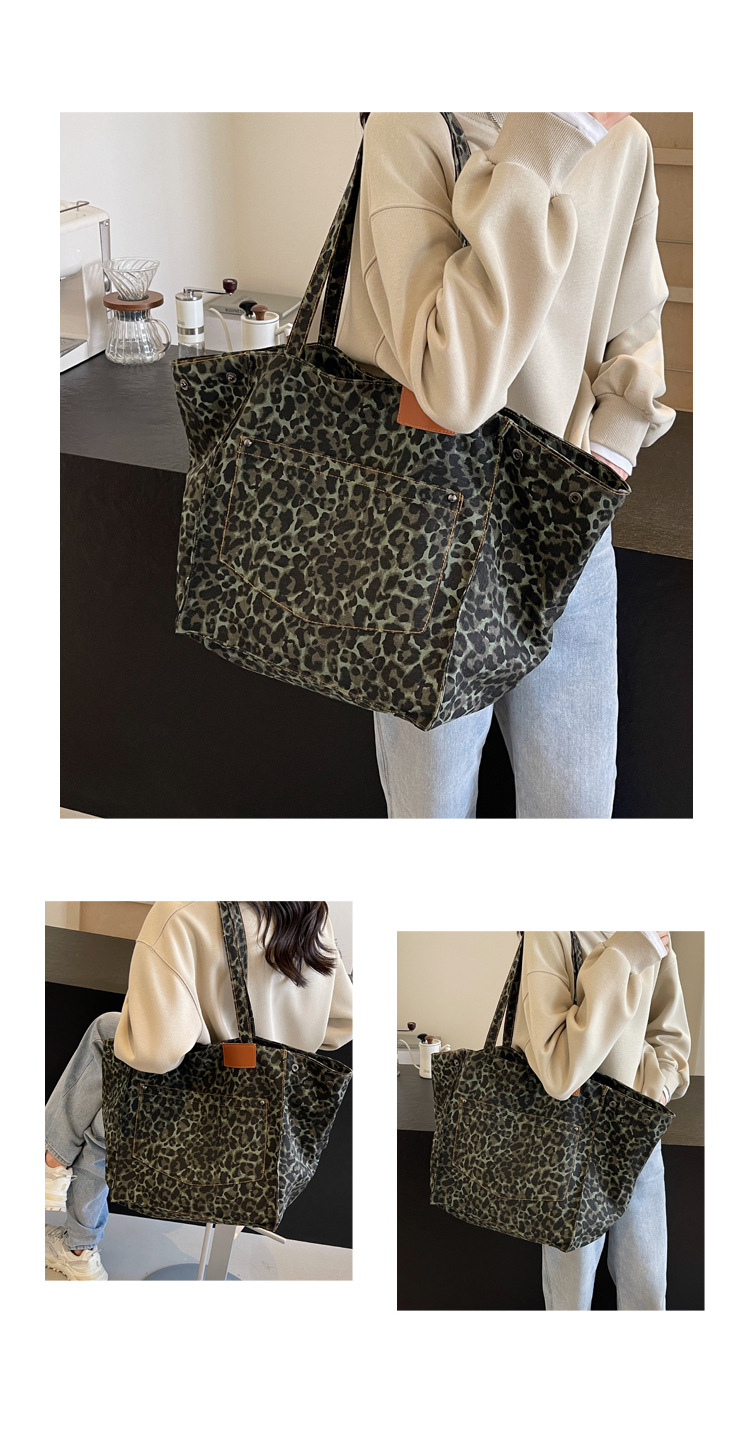 레오파드 무늬 캔버스 토트 백 여성 대용량 가방 2024 새로운 국경 대외 무역 휴대용 통근 어깨 미라 가방스토어 가기