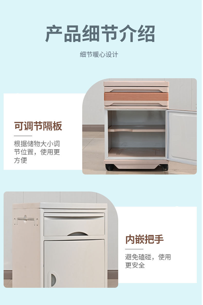 간호 홈 다기능 침대 옆 내각 ABS 서랍을 가진 두꺼운 침대 옆 내각