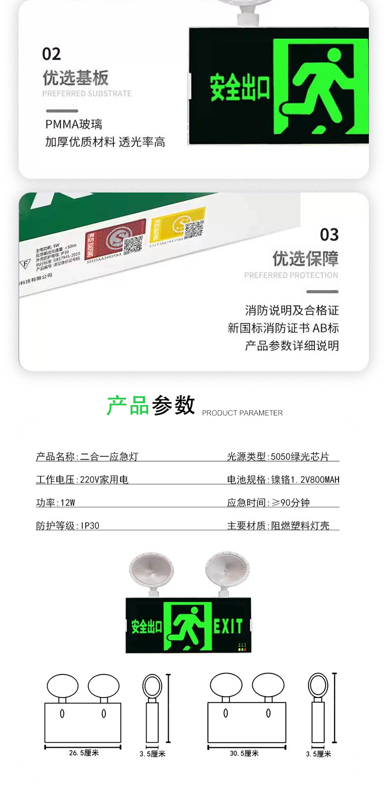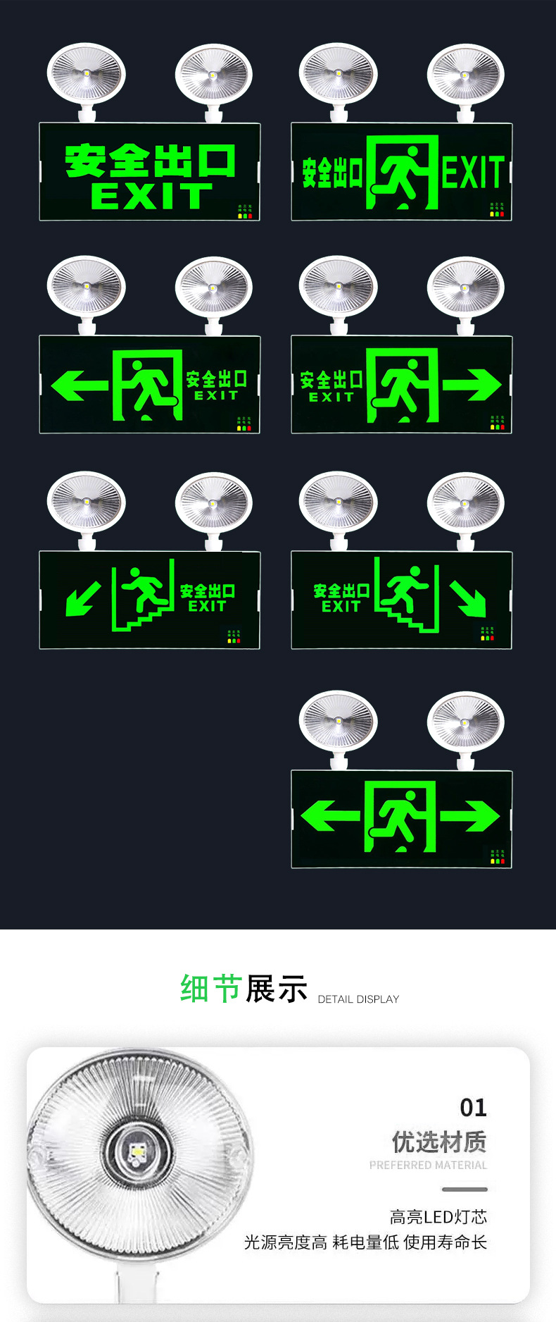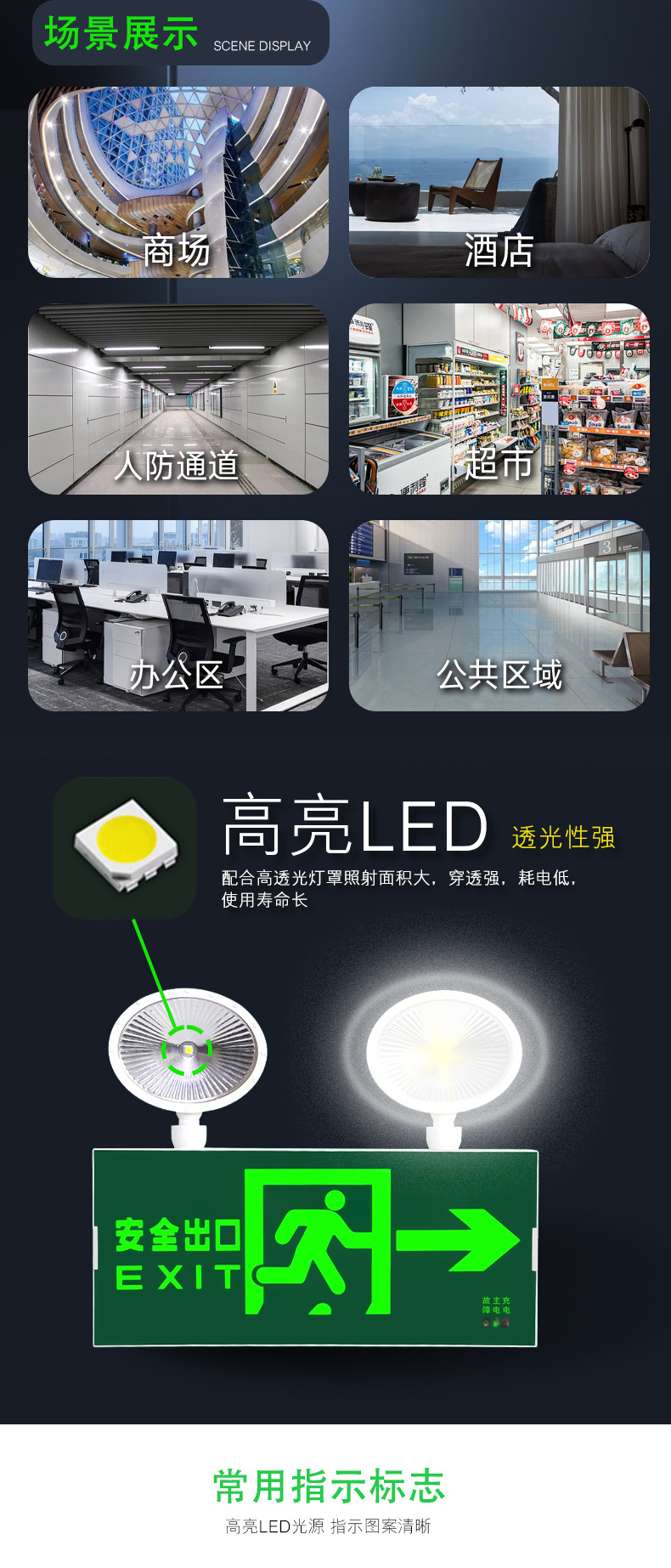 화재 비상 조명 LED 출구 표시등 일체형 대피 표지판 안전 신규 국가 표준