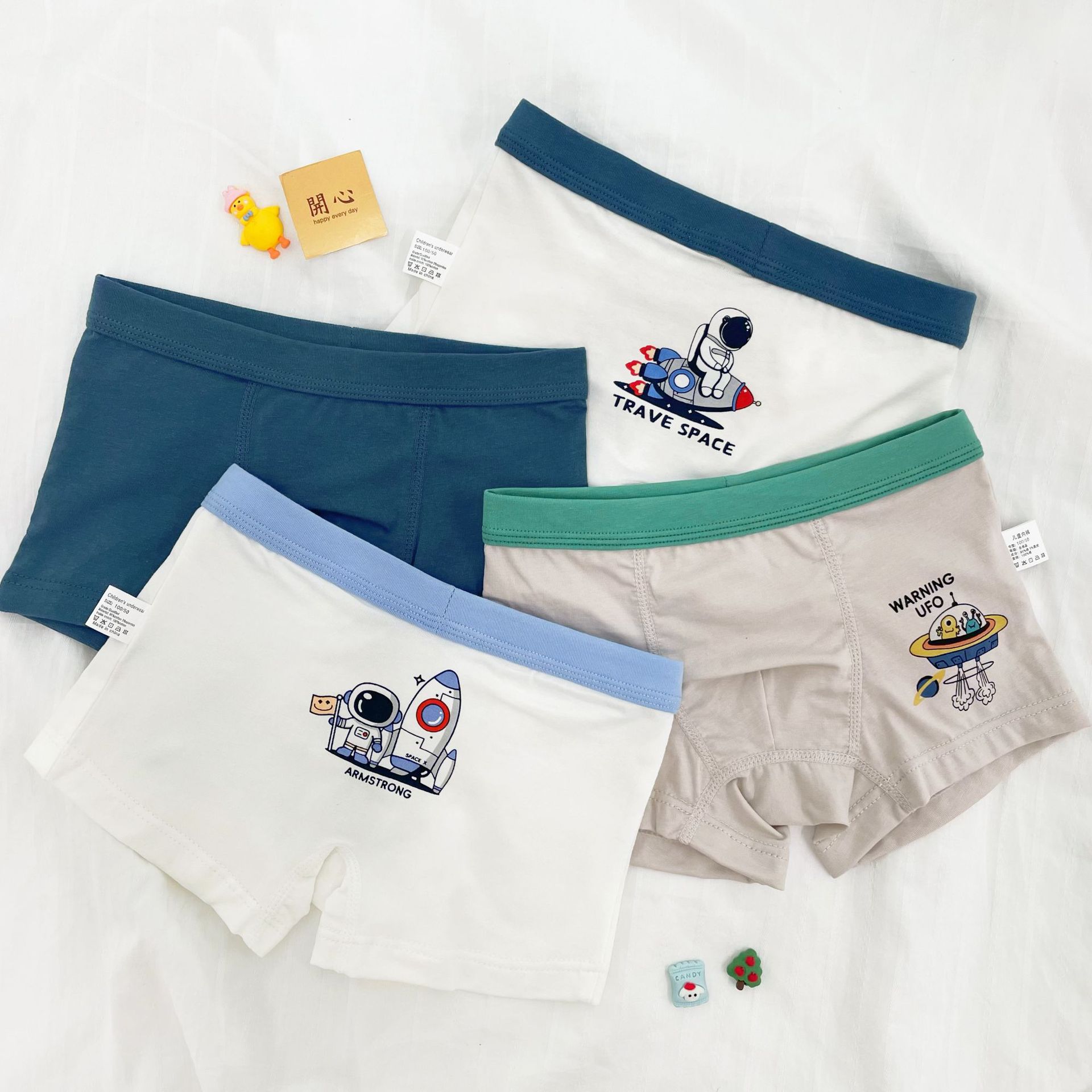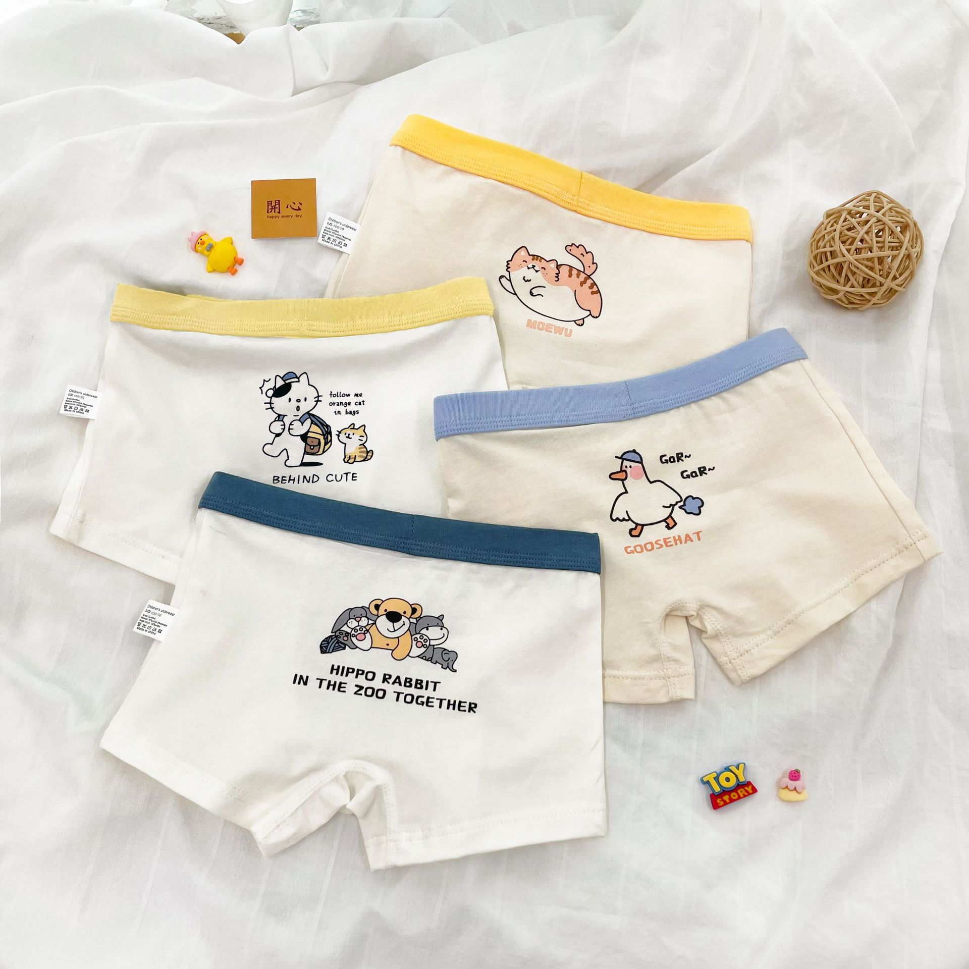 남학생 속옷 면 뼈없는 어린이 4 코너 아기 통기성 복서 반바지 미디어와 빅 보이즈 언더팬츠 4 팩