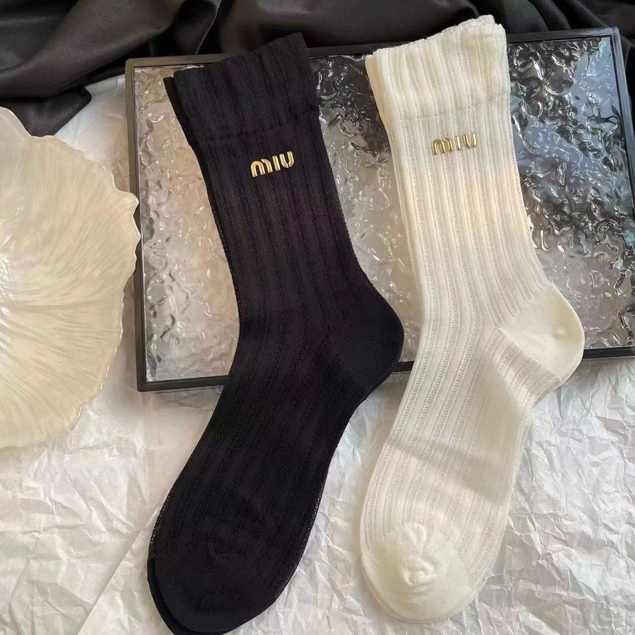 양말 여성 한국식 여름 Ins 흑백 단색 자수 편지 Miu 단순 올 매치 유행 양말 초박형 통기성 미드 튜브스토어 가기