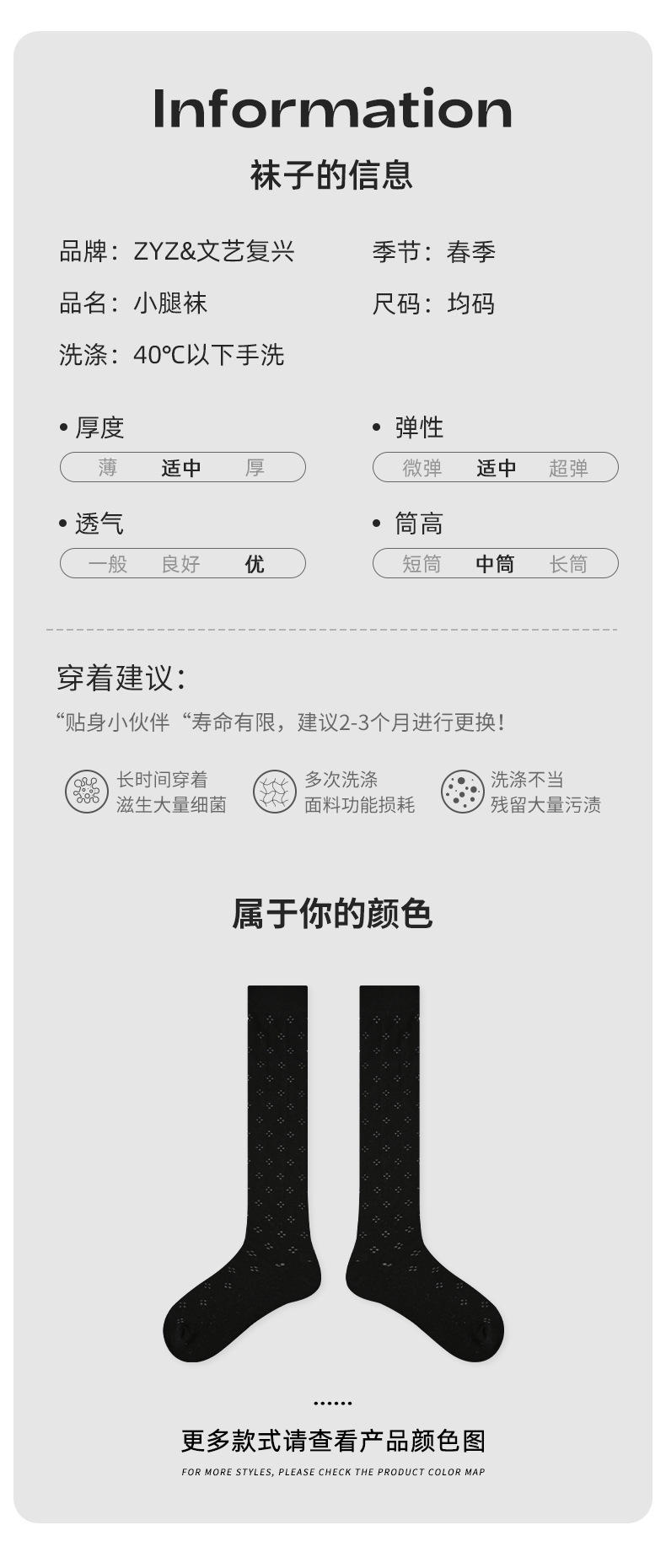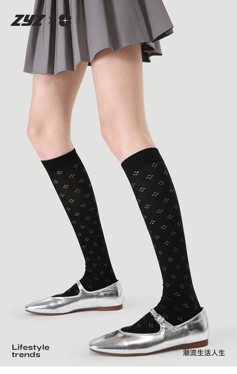 르네상스 오리지널 여성 양말 봄과 여름 매화 메쉬 송아지 양말 검은 색 통기성 모기 튜브 양말