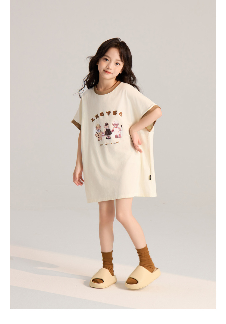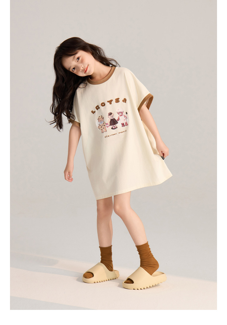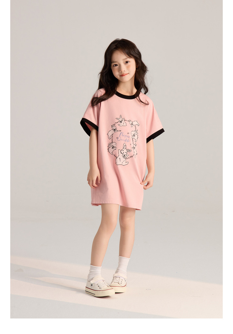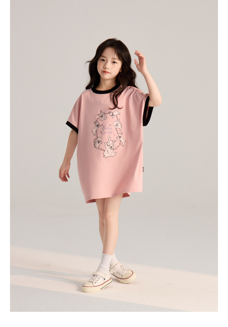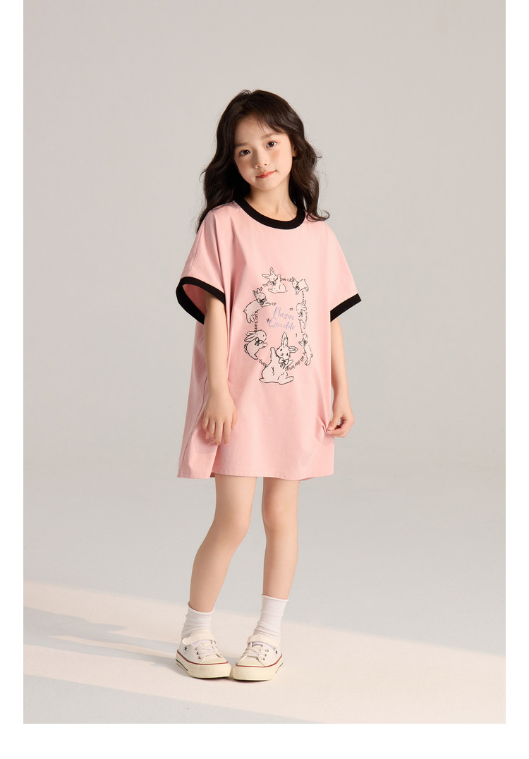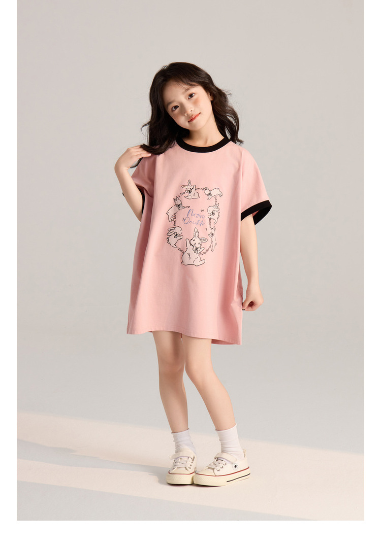 Amybaby Girl's 원피스 2024 여름 새로운 스타일 레트로 미국 스타일 대비 컬러 스티칭 캐주얼 스커트 스트레이트 스커트