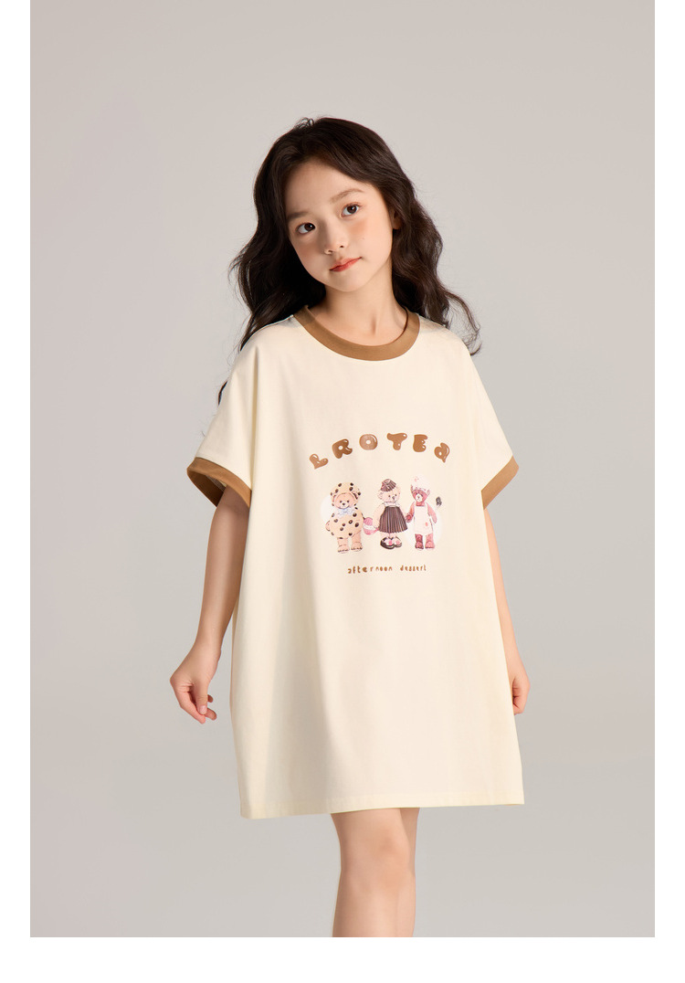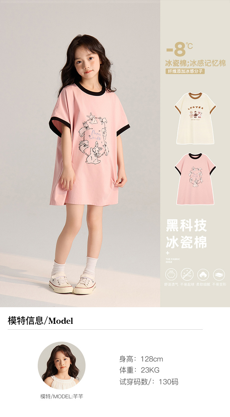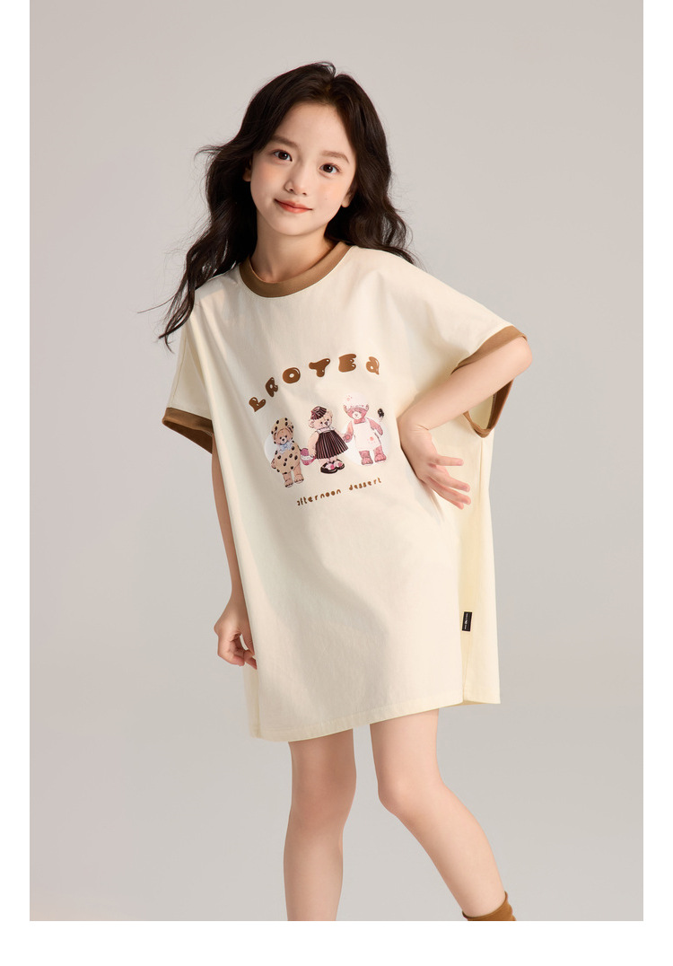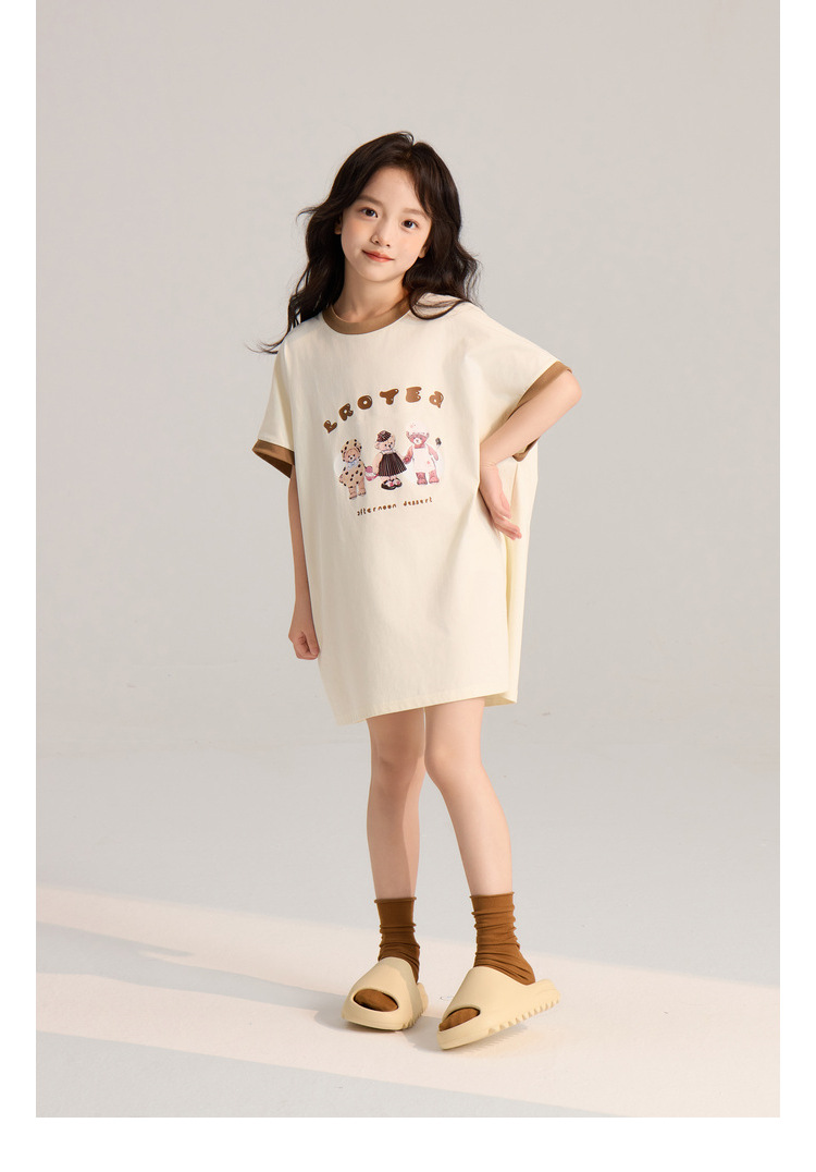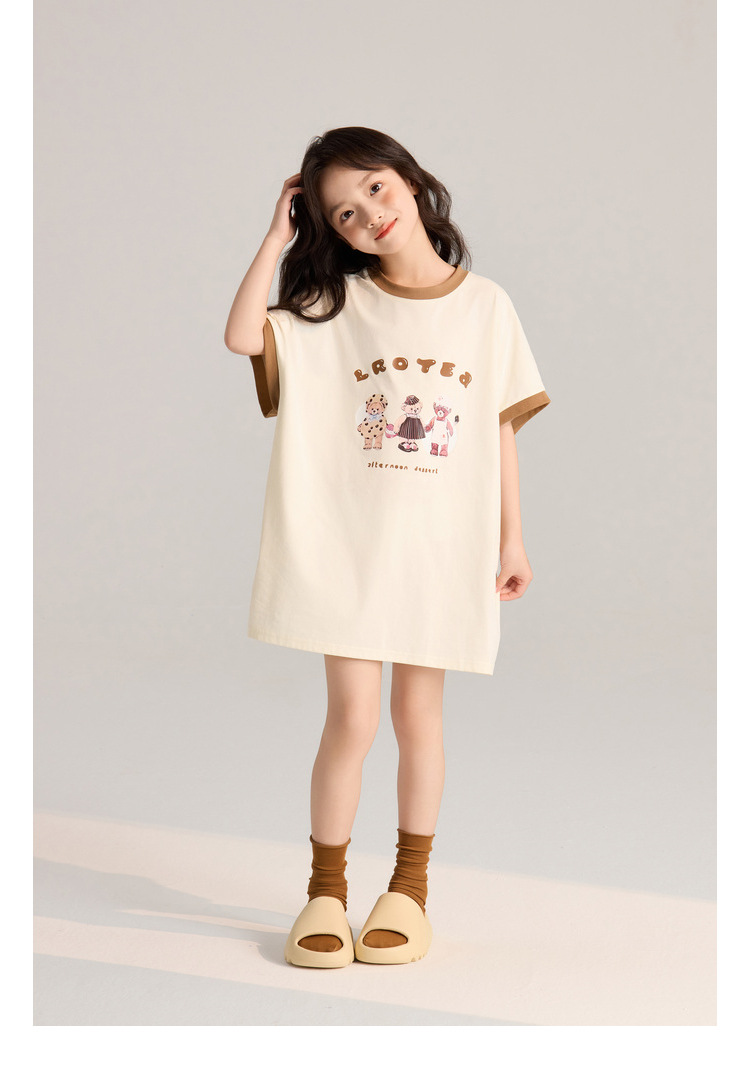 Amybaby Girl's 원피스 2024 여름 새로운 스타일 레트로 미국 스타일 대비 컬러 스티칭 캐주얼 스커트 스트레이트 스커트