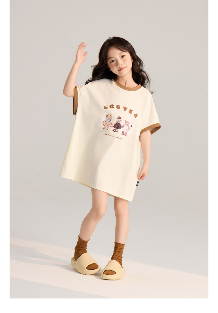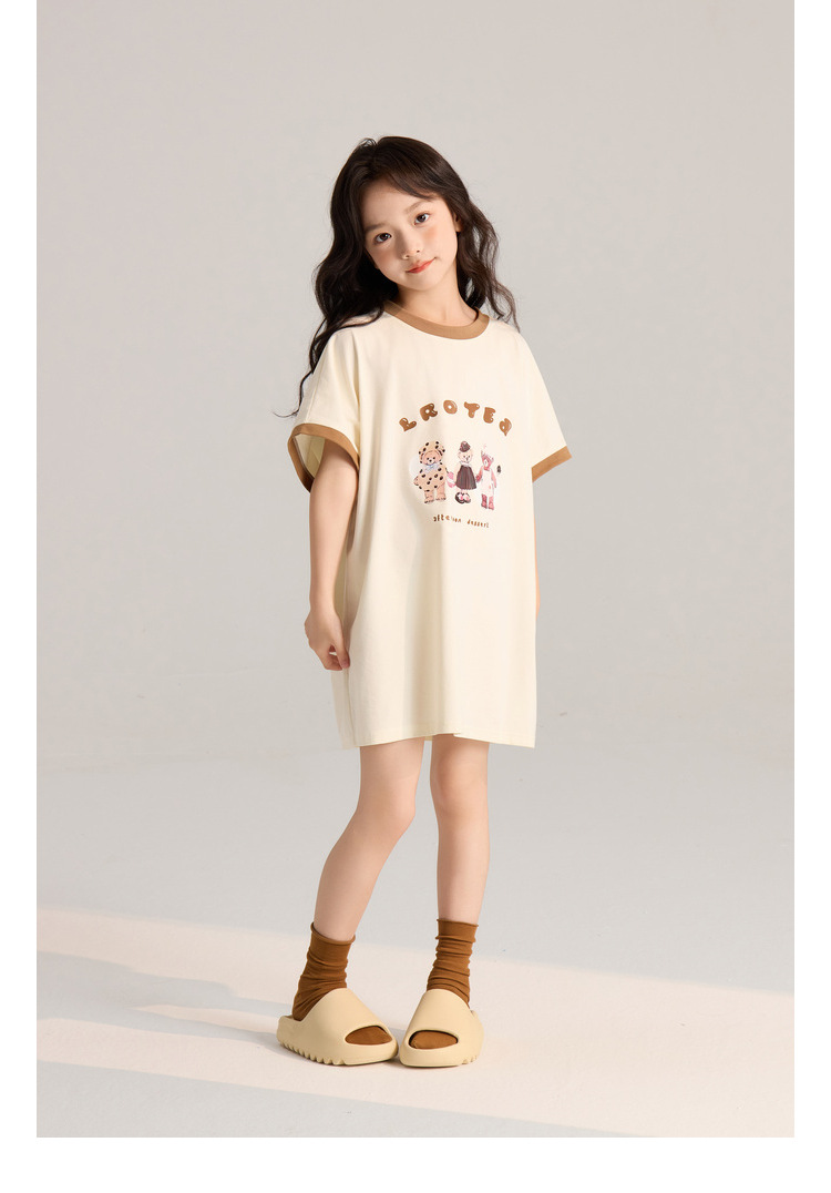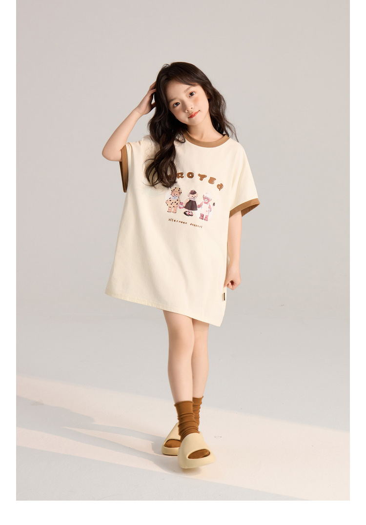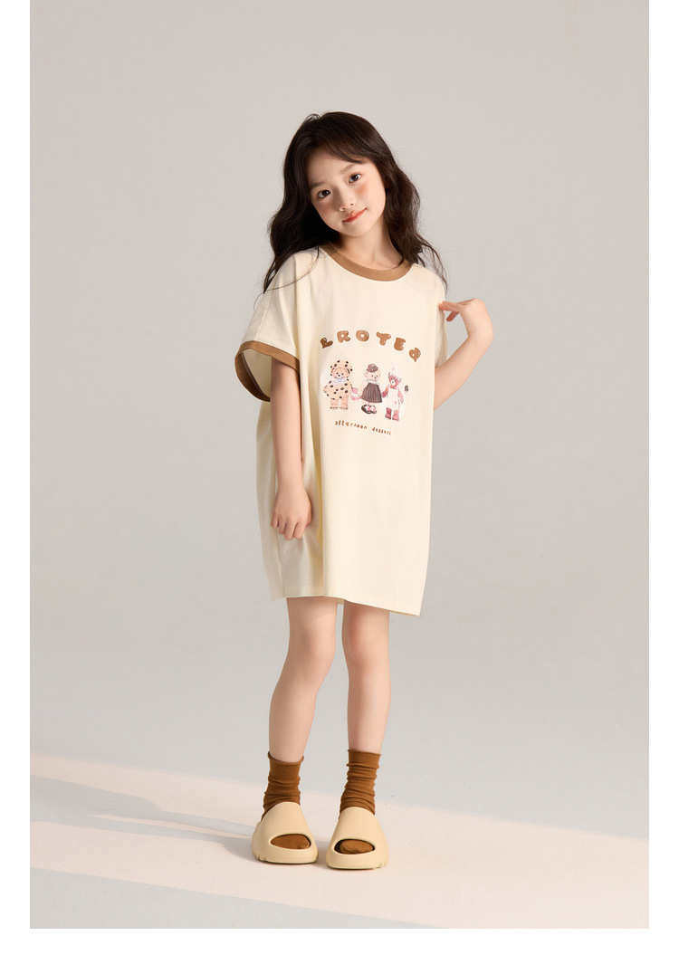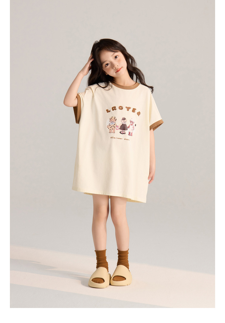 Amybaby Girl's 원피스 2024 여름 새로운 스타일 레트로 미국 스타일 대비 컬러 스티칭 캐주얼 스커트 스트레이트 스커트스토어 가기