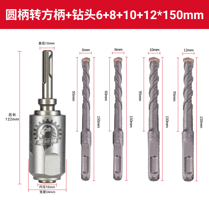 • 전기 렌치 회전 사각 생크 드릴 6 8 10 12*150mm