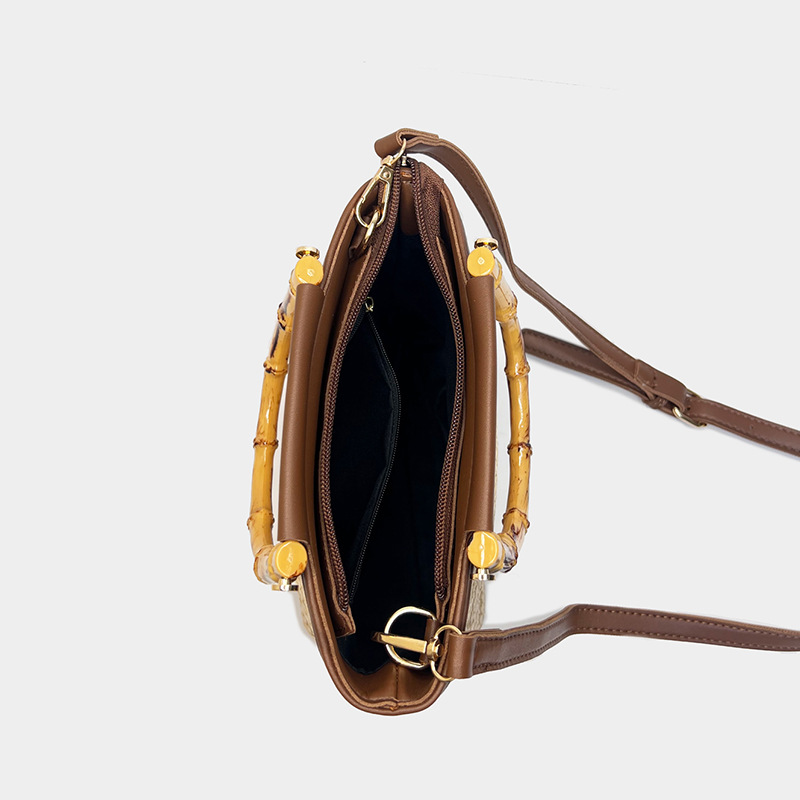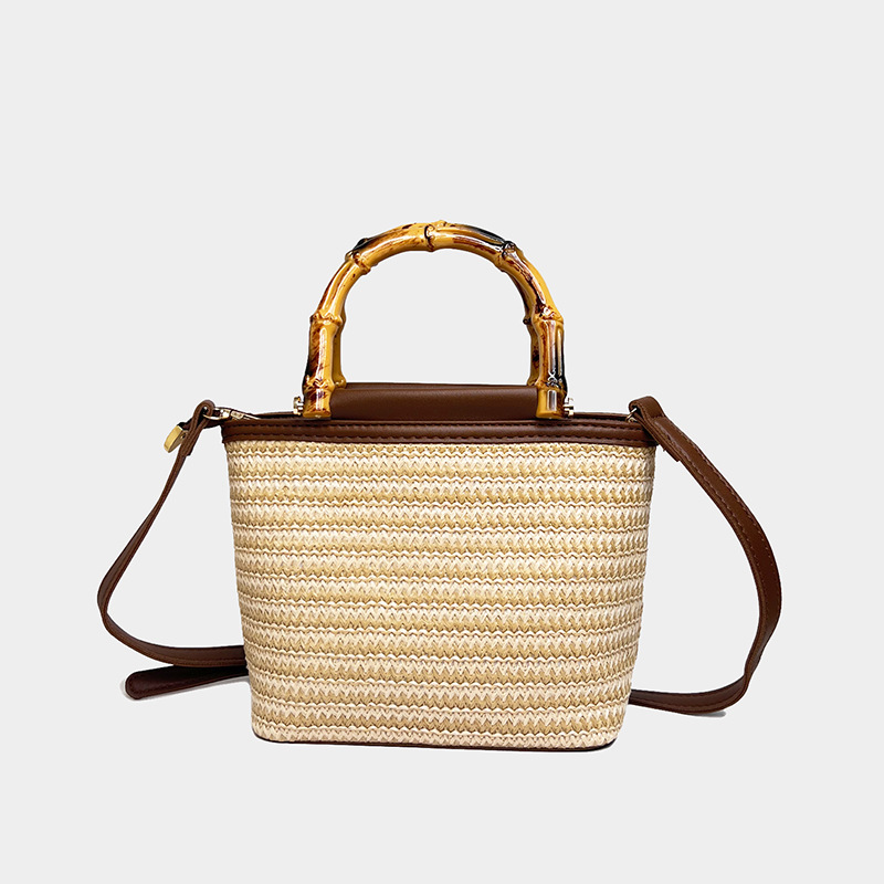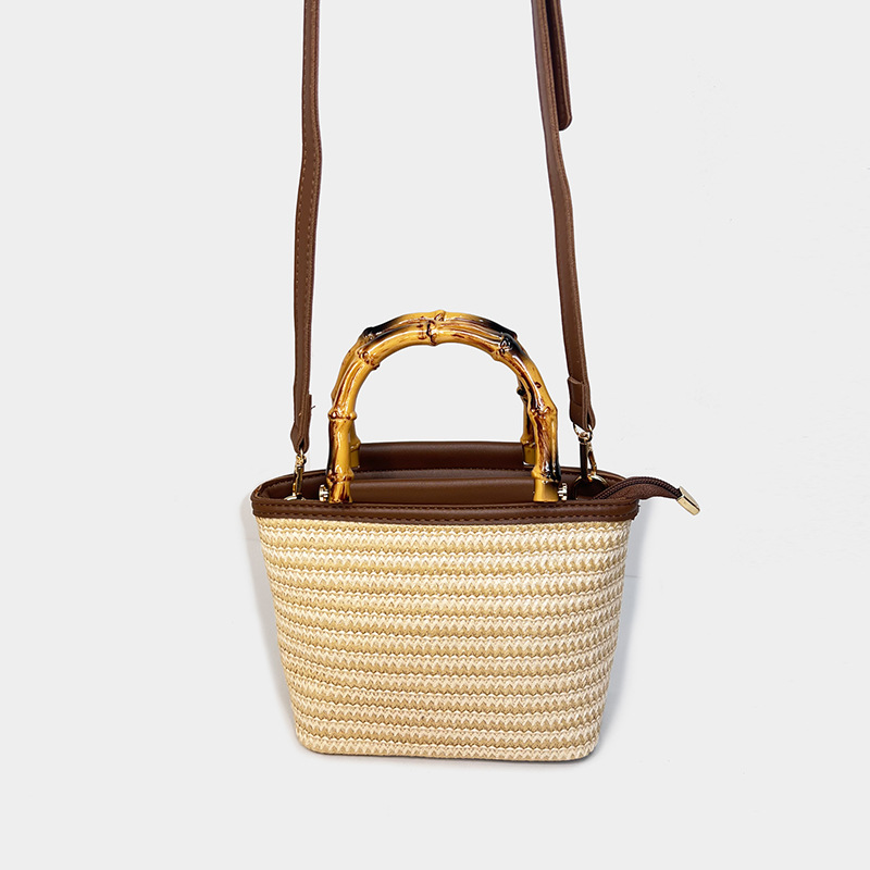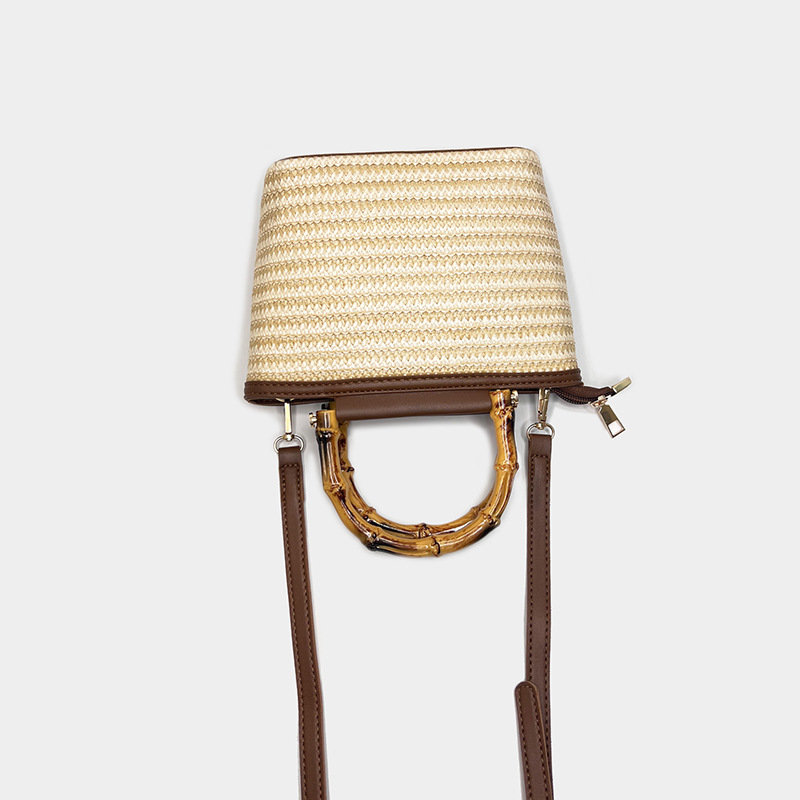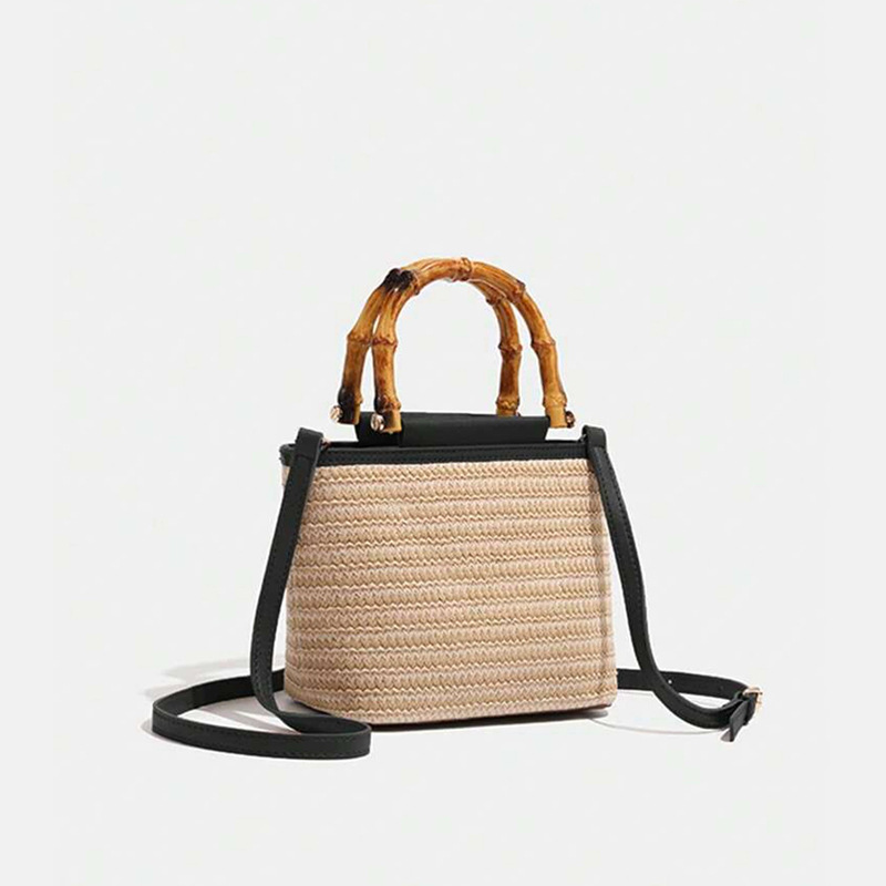 여름 새로운 크로스 바디 가방 짠 작은 가방 여성용 휴대용 밀짚 버킷 가방 여성용 유행 대나무 핸드백 여성용 트렌디스토어 가기