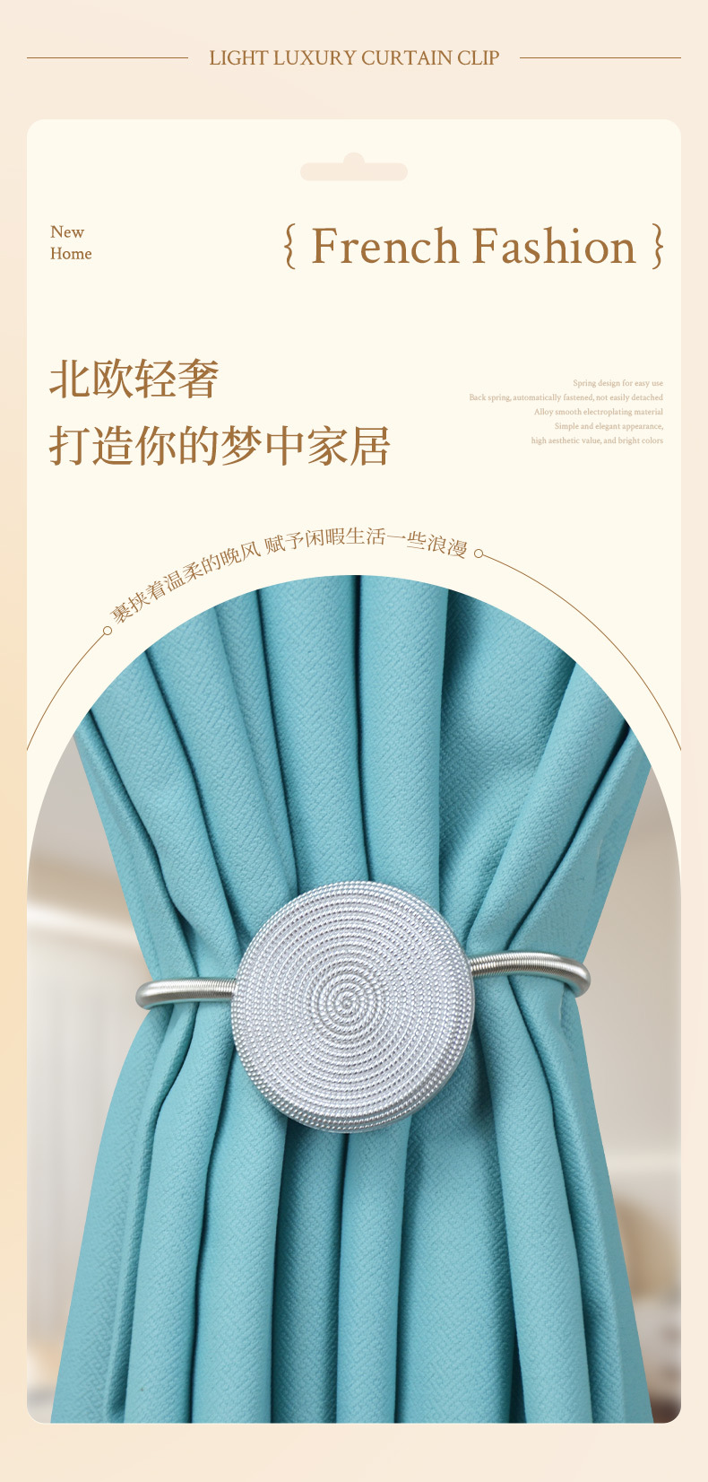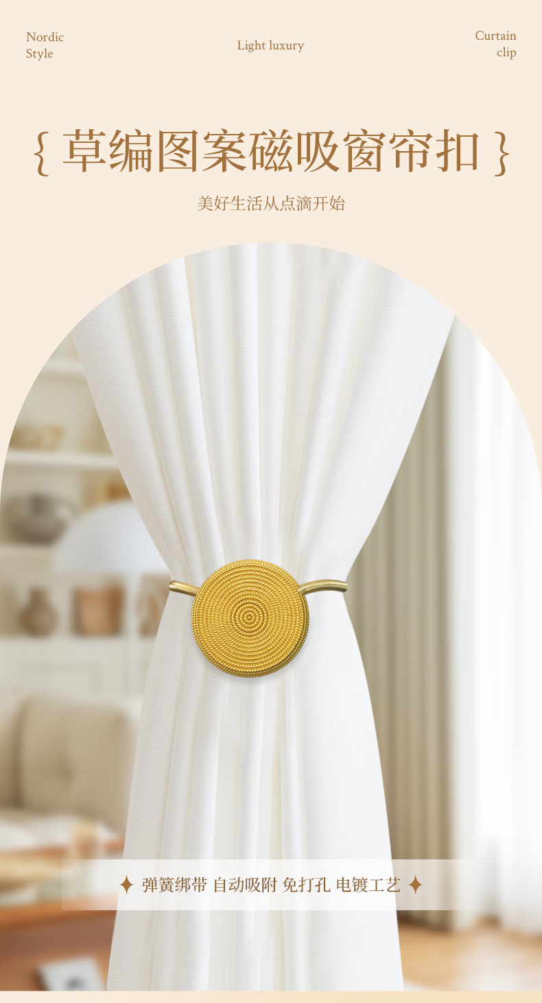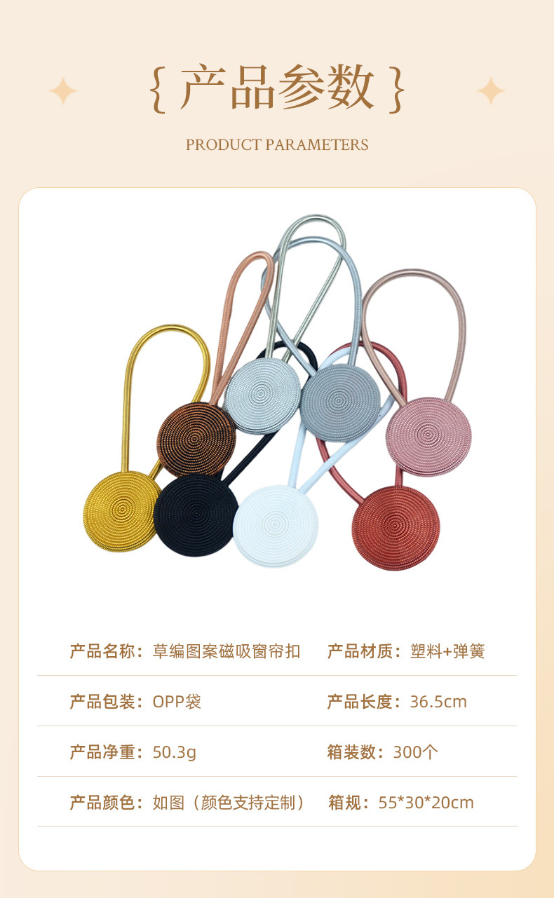 밀짚 패턴 마그네틱 커튼 버클 전기 도금 플라스틱 스프링 커튼 스트랩 비 천공 커튼 장식 국경 도매스토어 가기