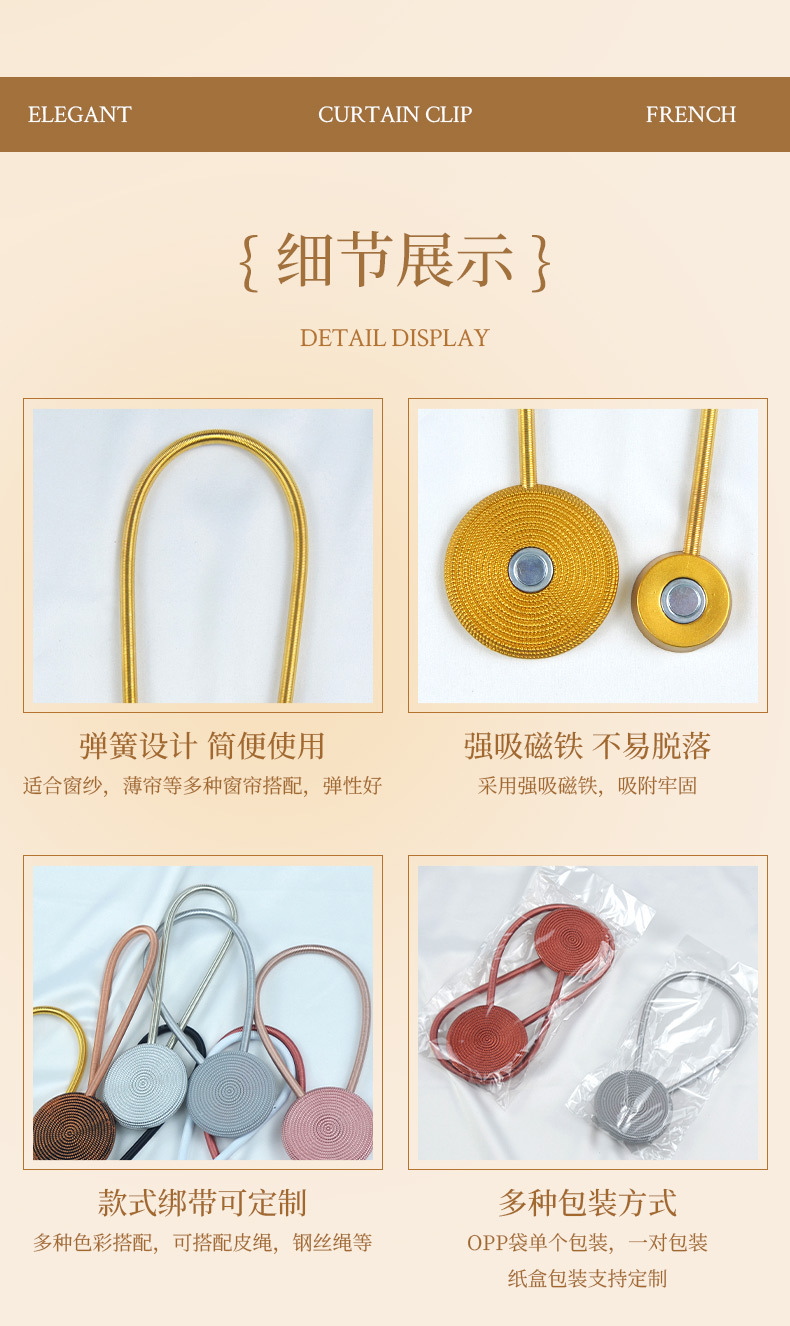 밀짚 패턴 마그네틱 커튼 버클 전기 도금 플라스틱 스프링 커튼 스트랩 비 천공 커튼 장식 국경 도매