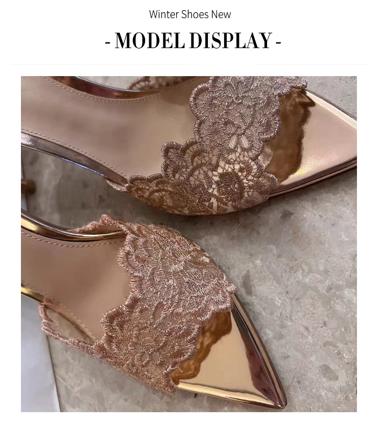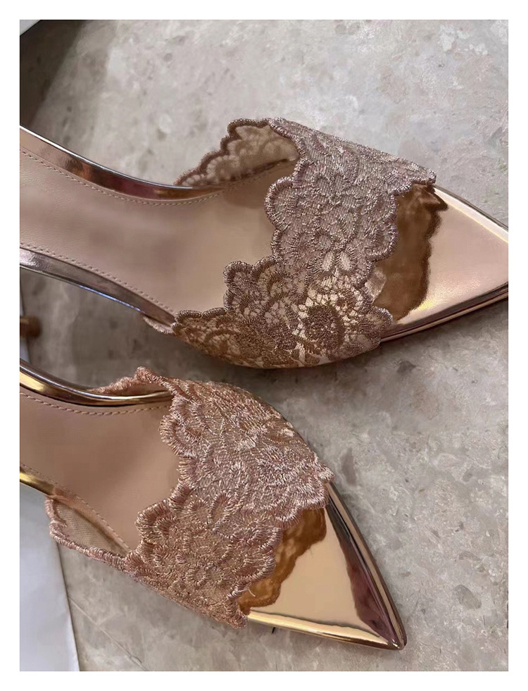 프랑스 샴페인 컬러 레이스 하이힐 2024 새로운 포인팅-발가락 슬라이드 여름 사교계 우아한 착용 하이힐 샌들스토어 가기